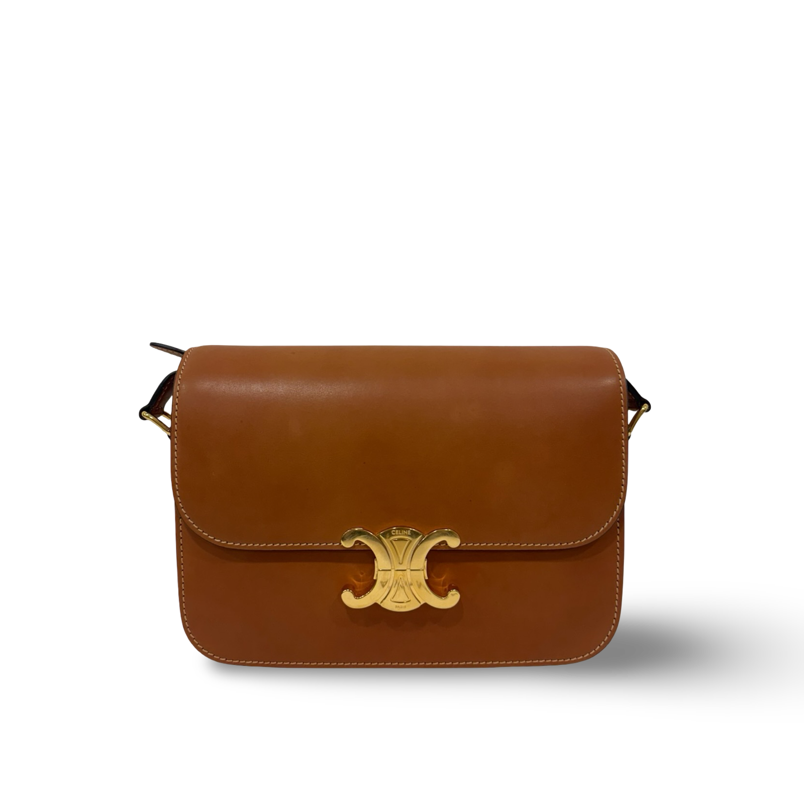 Celine Calfskin Classique Teen Triomphe Bag - GHW / Brown