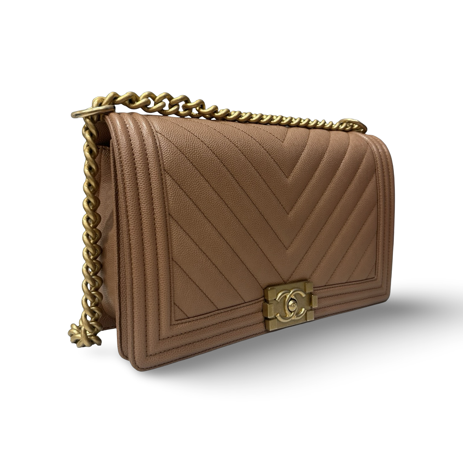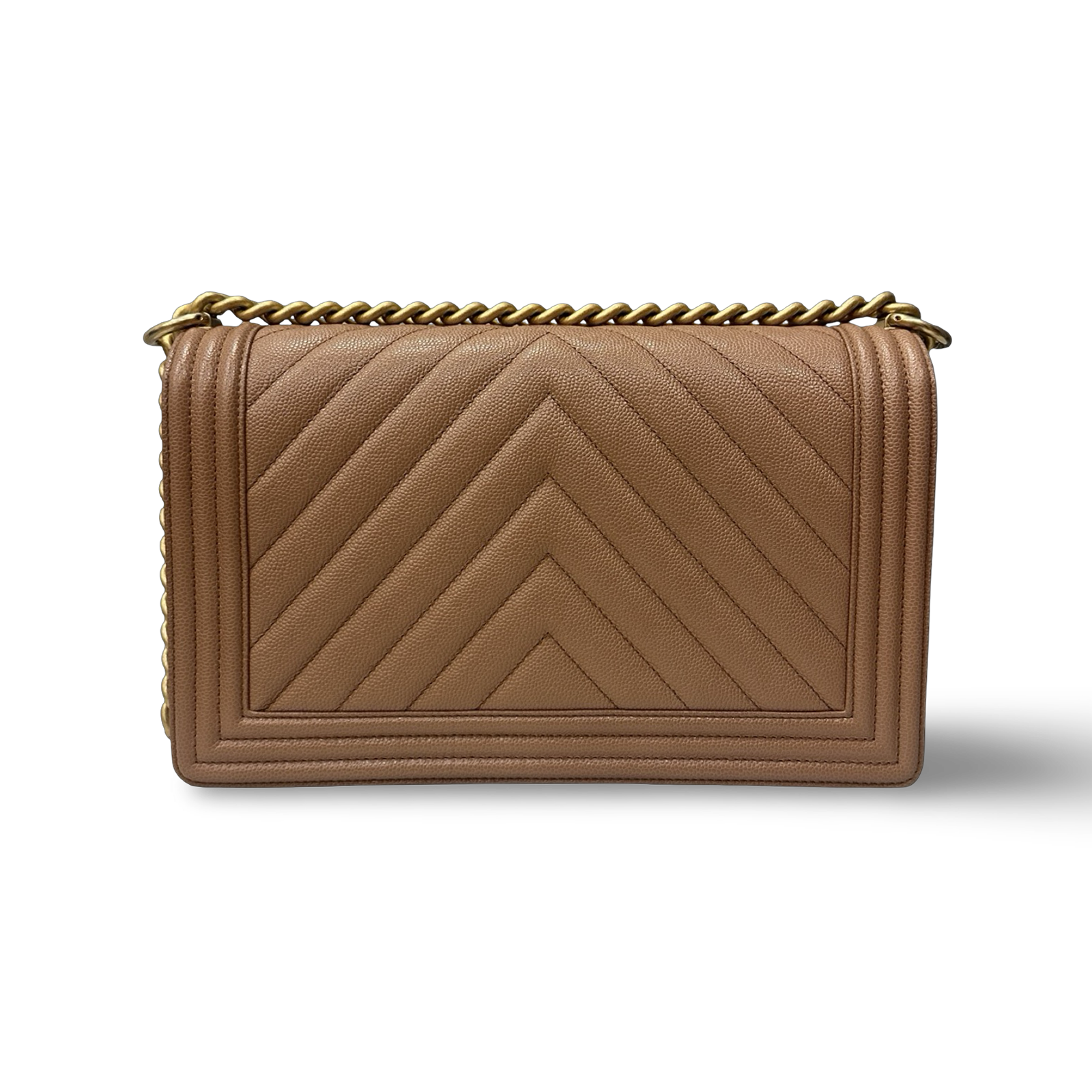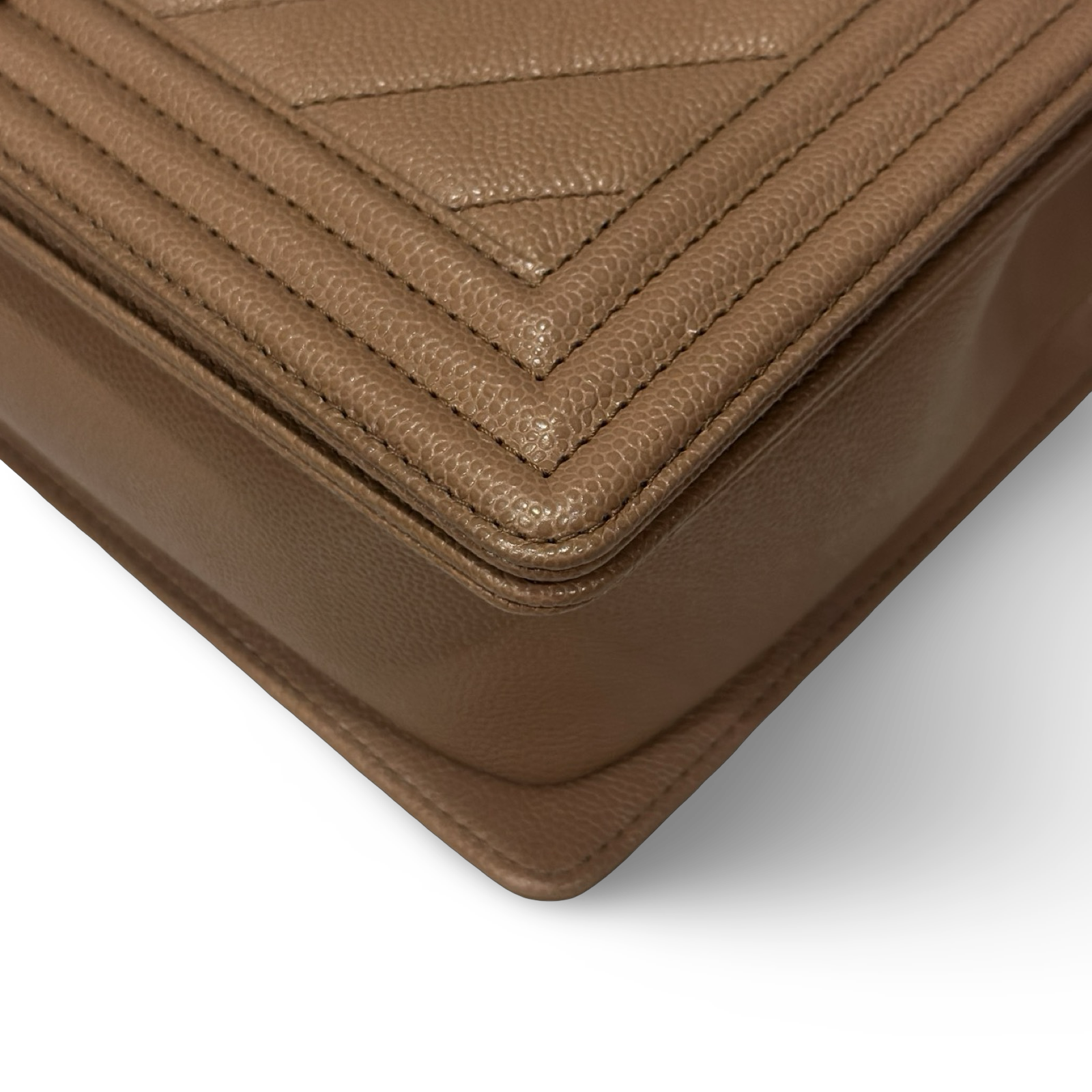 Chanel Caviar New Medium Chevron Le Boy Bag - GHW / Beige