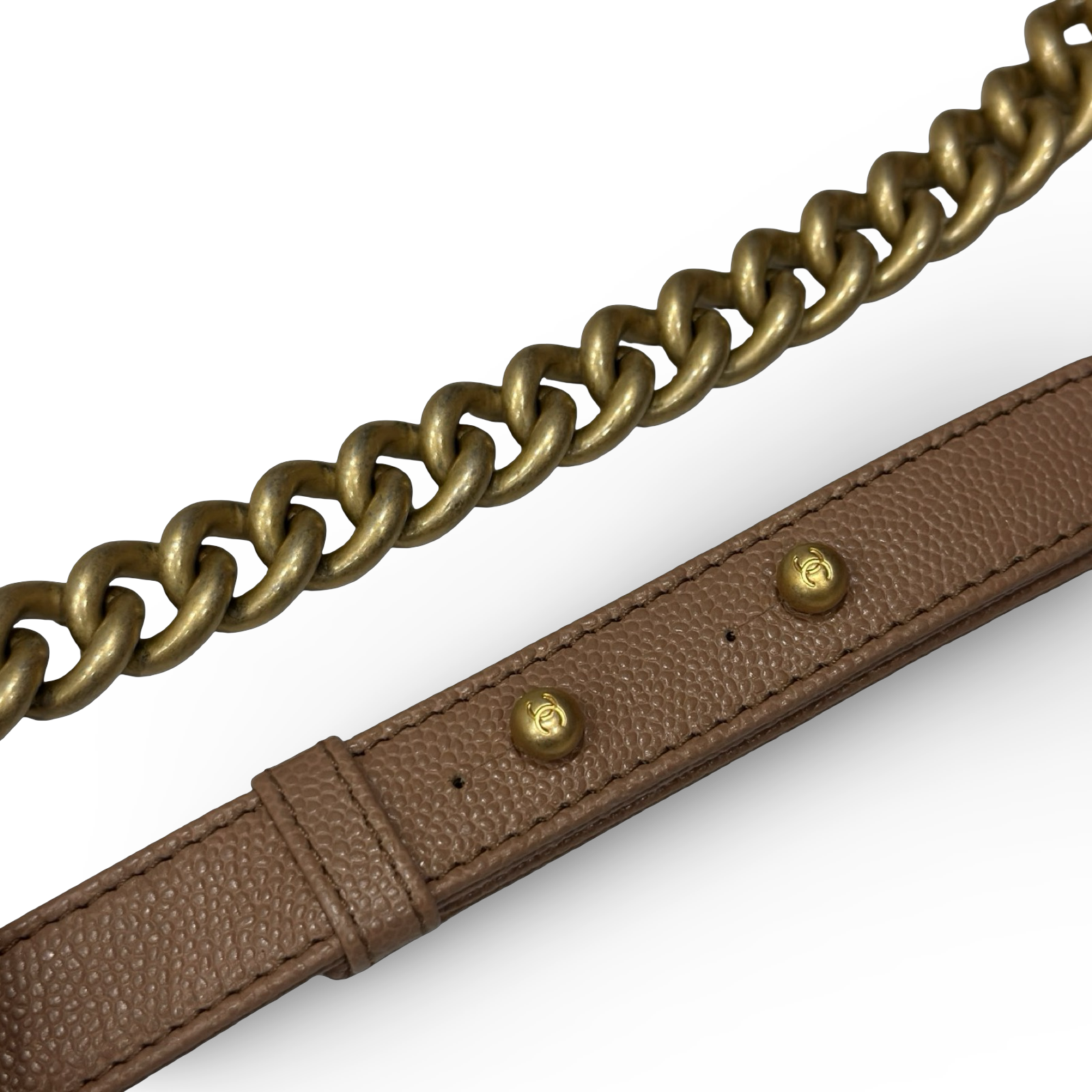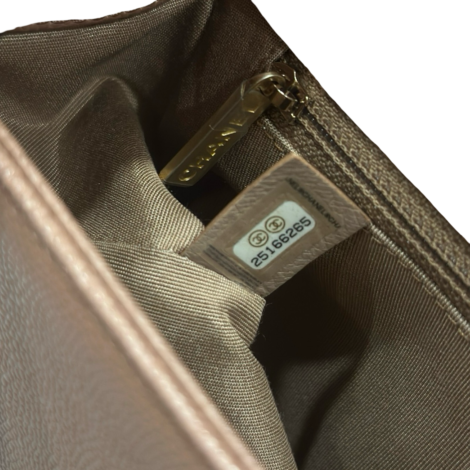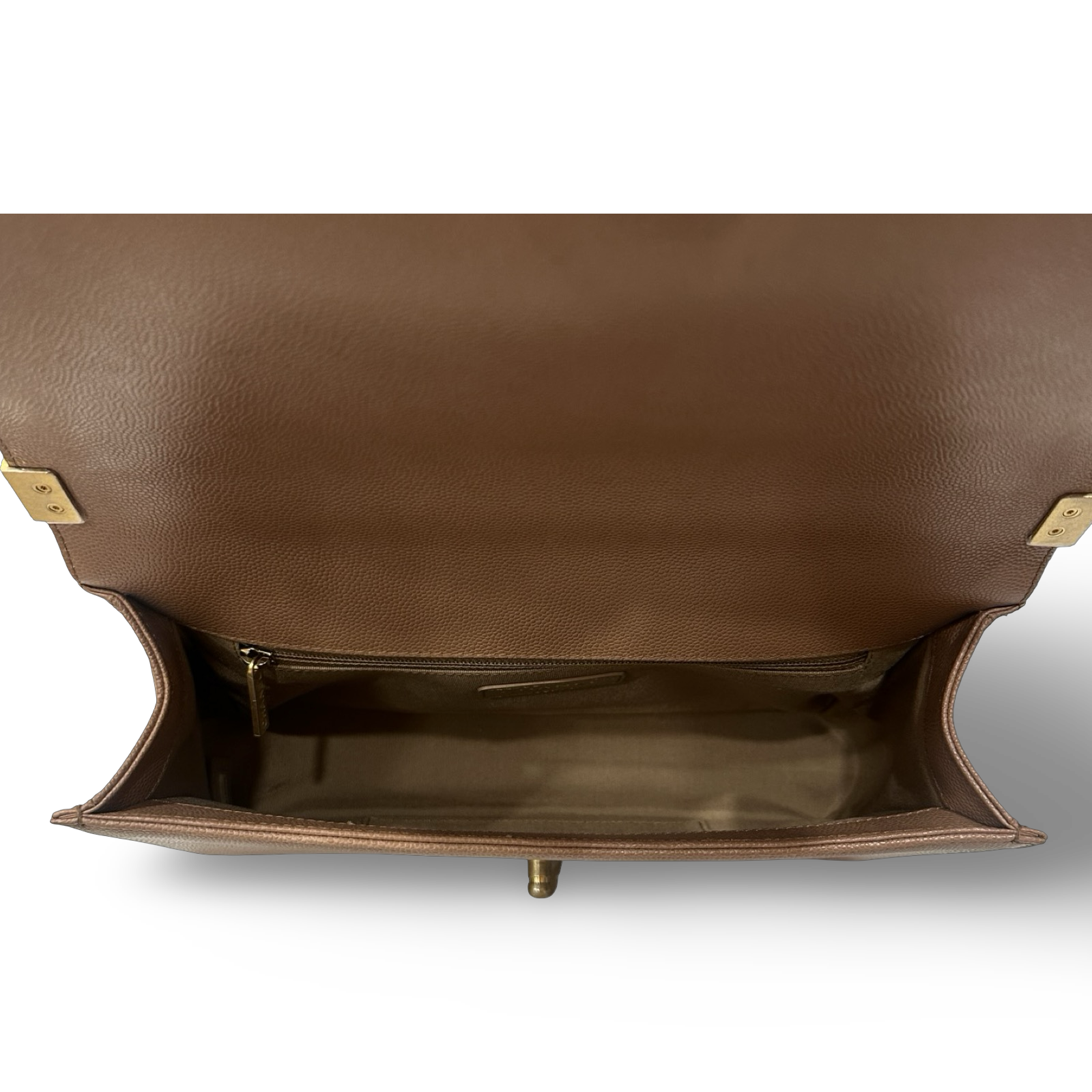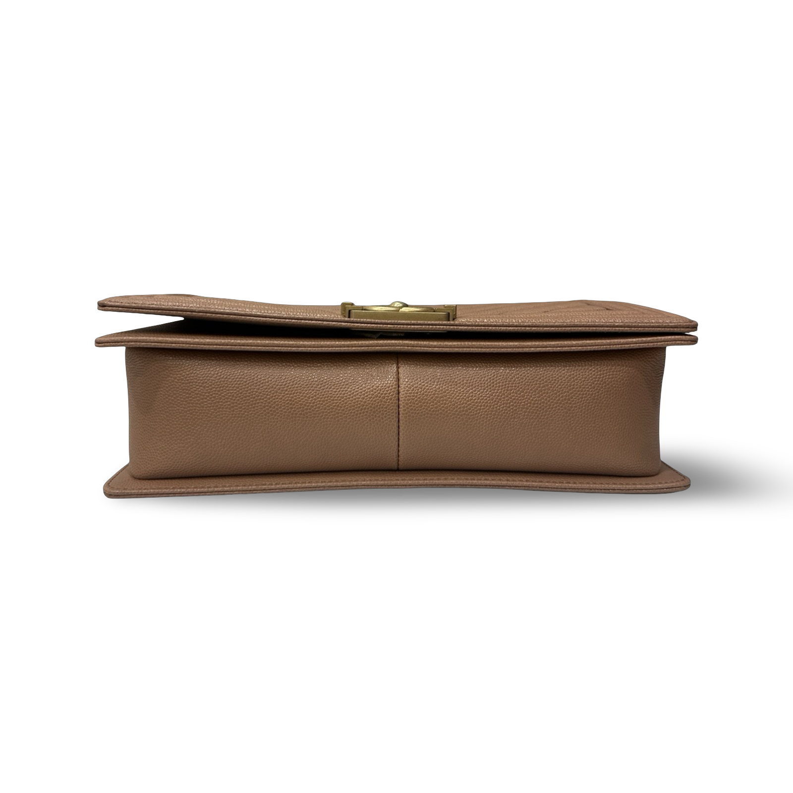 Chanel Caviar New Medium Chevron Le Boy Bag - GHW / Beige