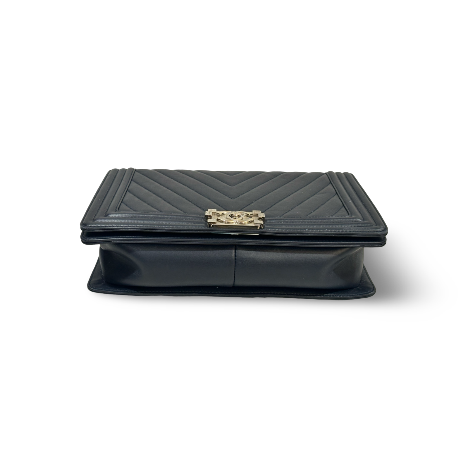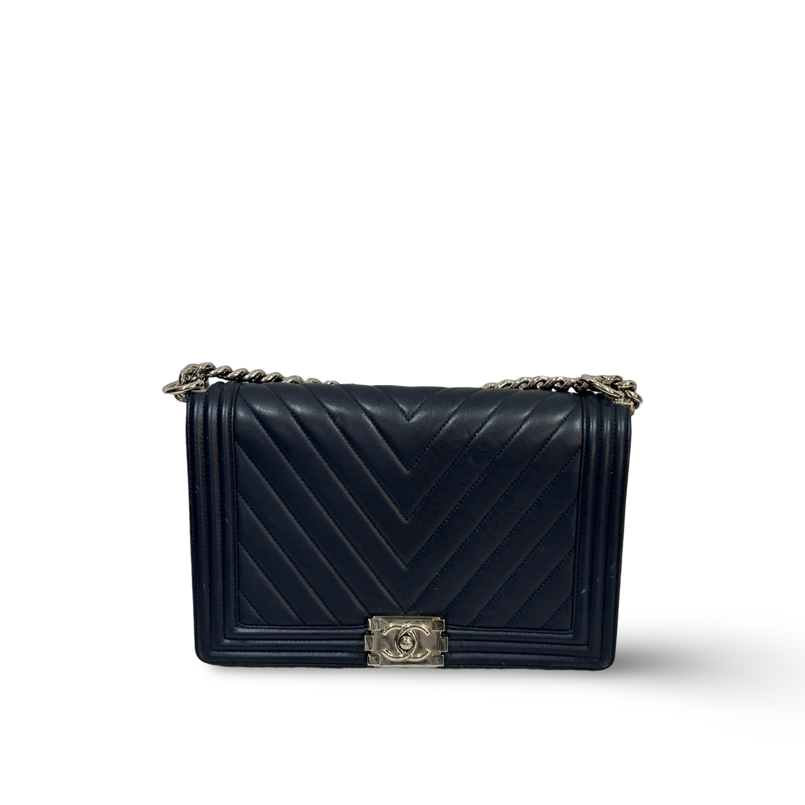 Chanel Chevron New Medium boy Bag - Sliver Navy