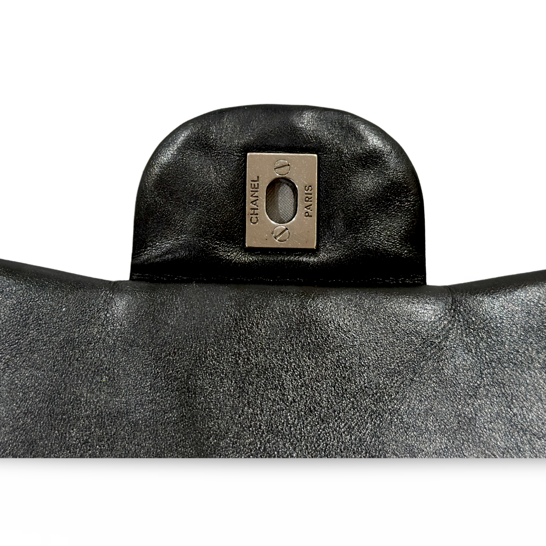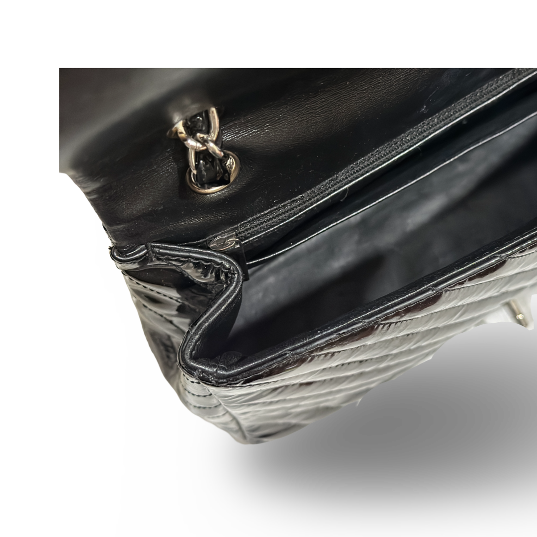 Chanel Chevron Patent Quilted Jumbo Single Flap Black