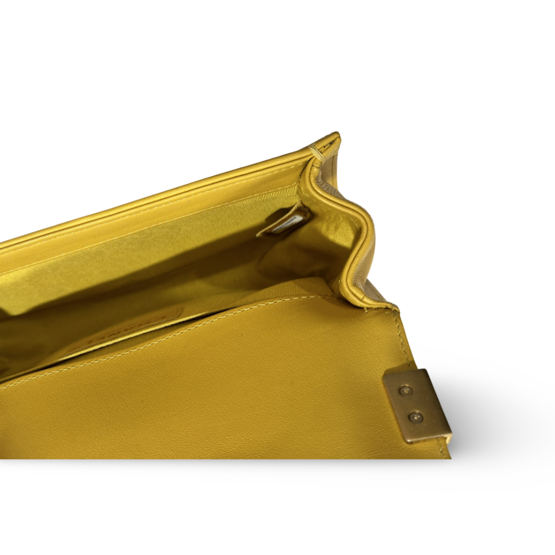 Chanel Classic Calfskin Quilted Small Boy Flap Yellow
