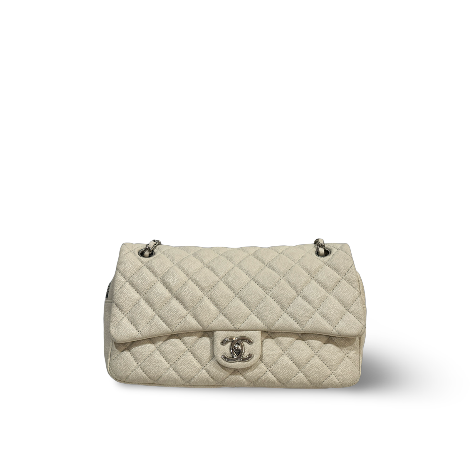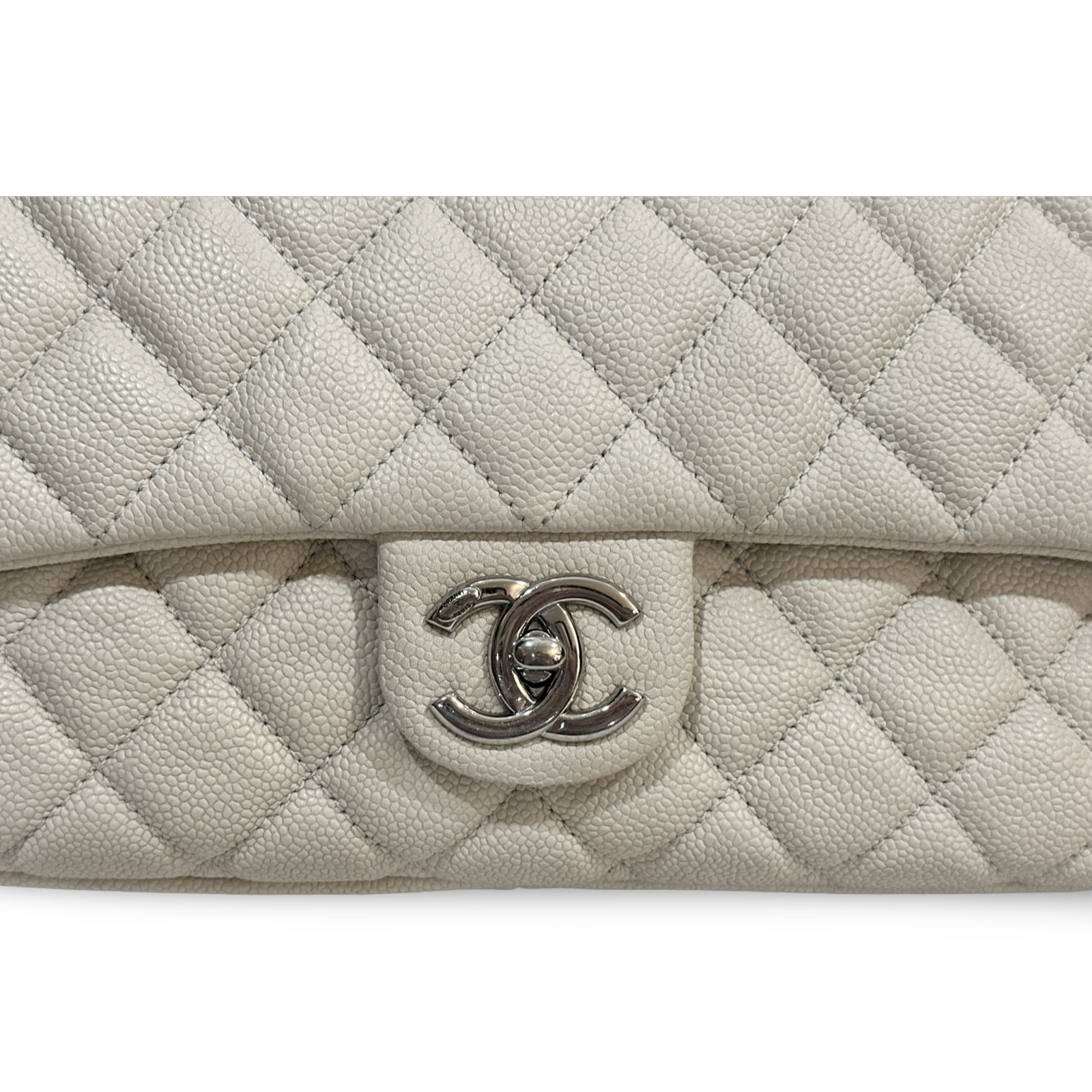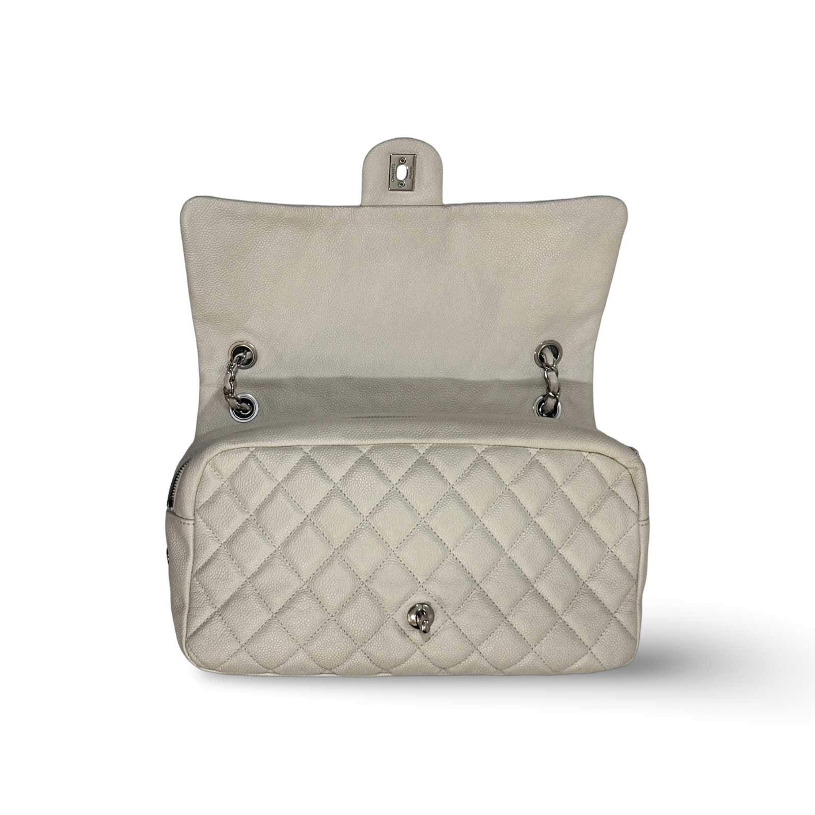 Chanel Classic Caviar Easy-Go Jumbo Zip Flap - SHW / White