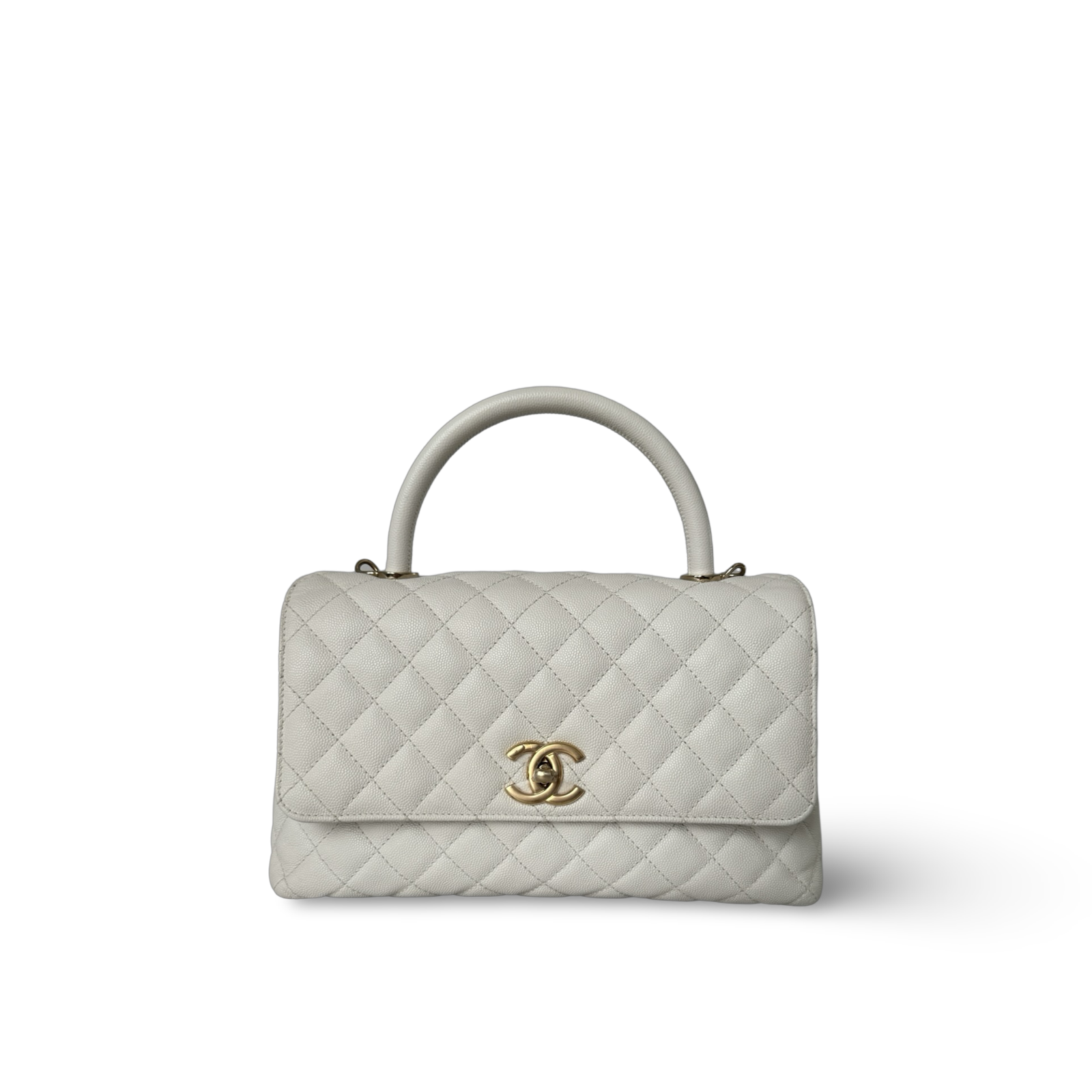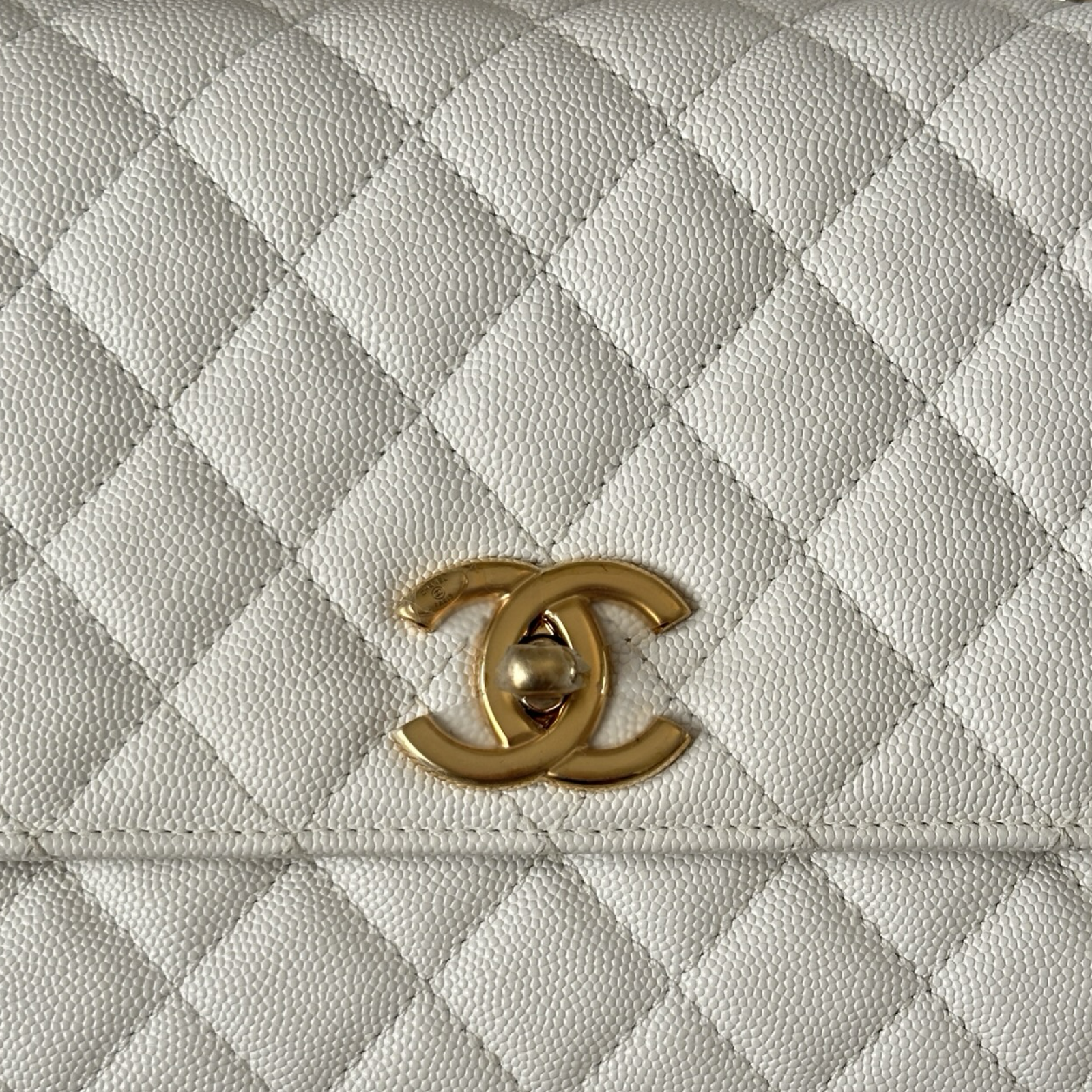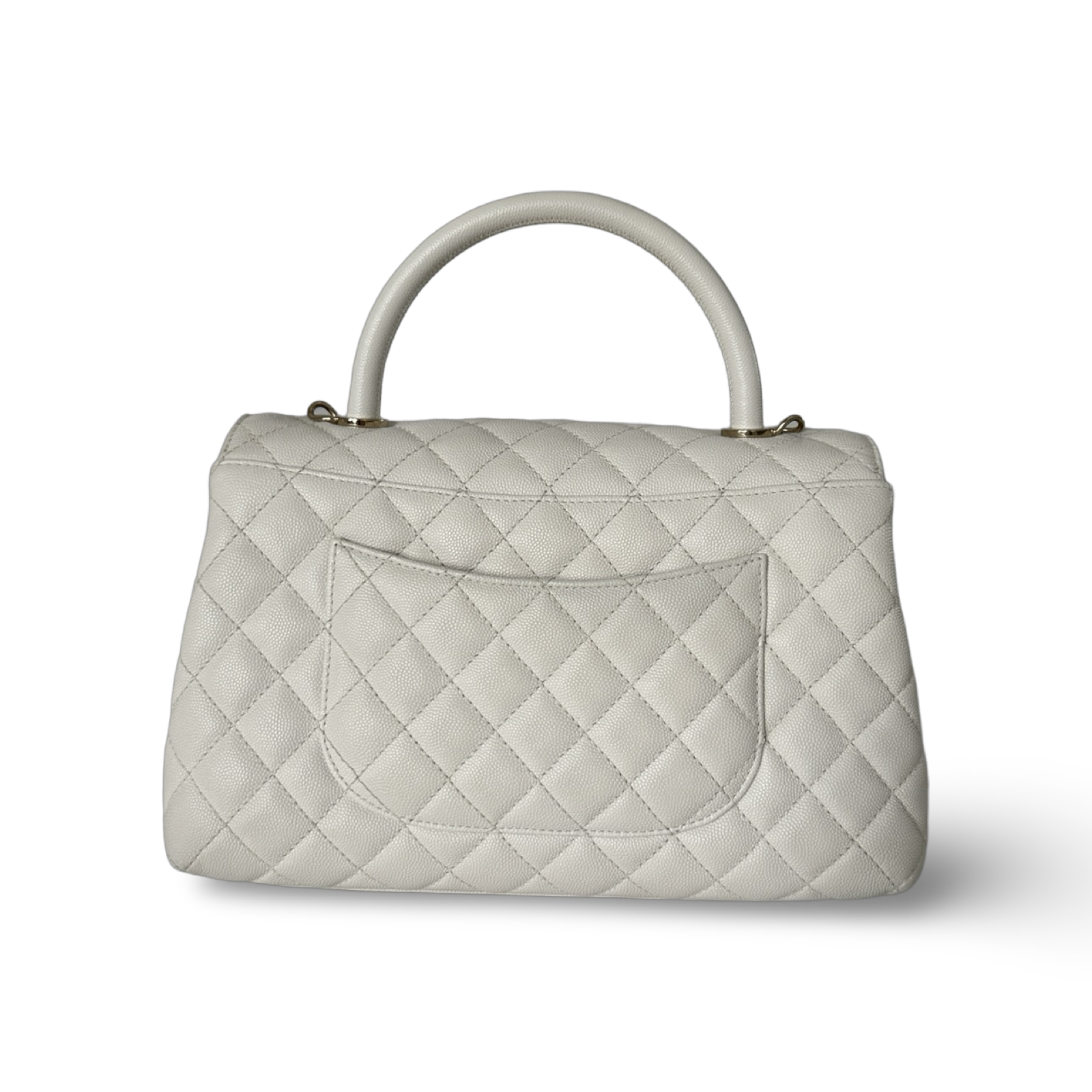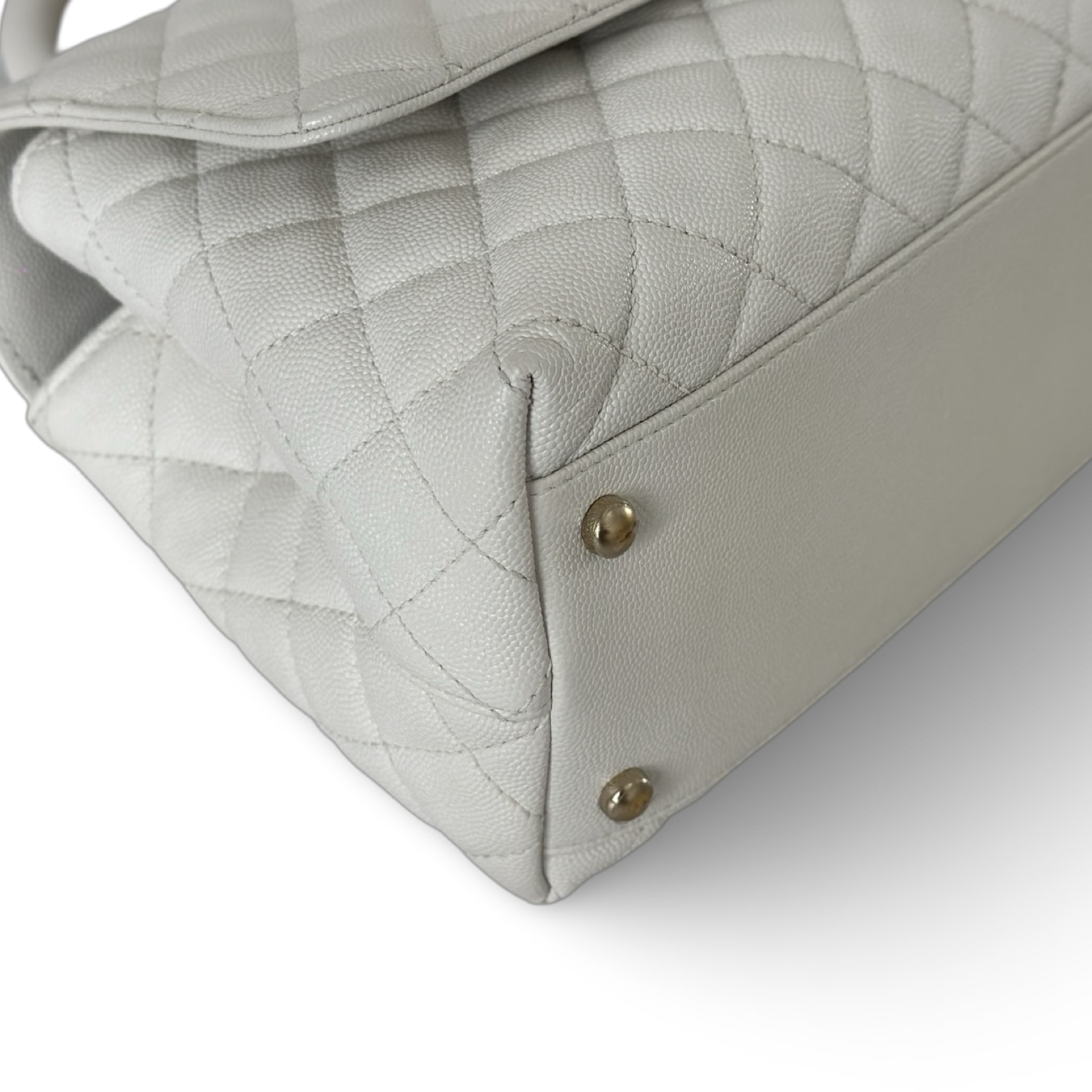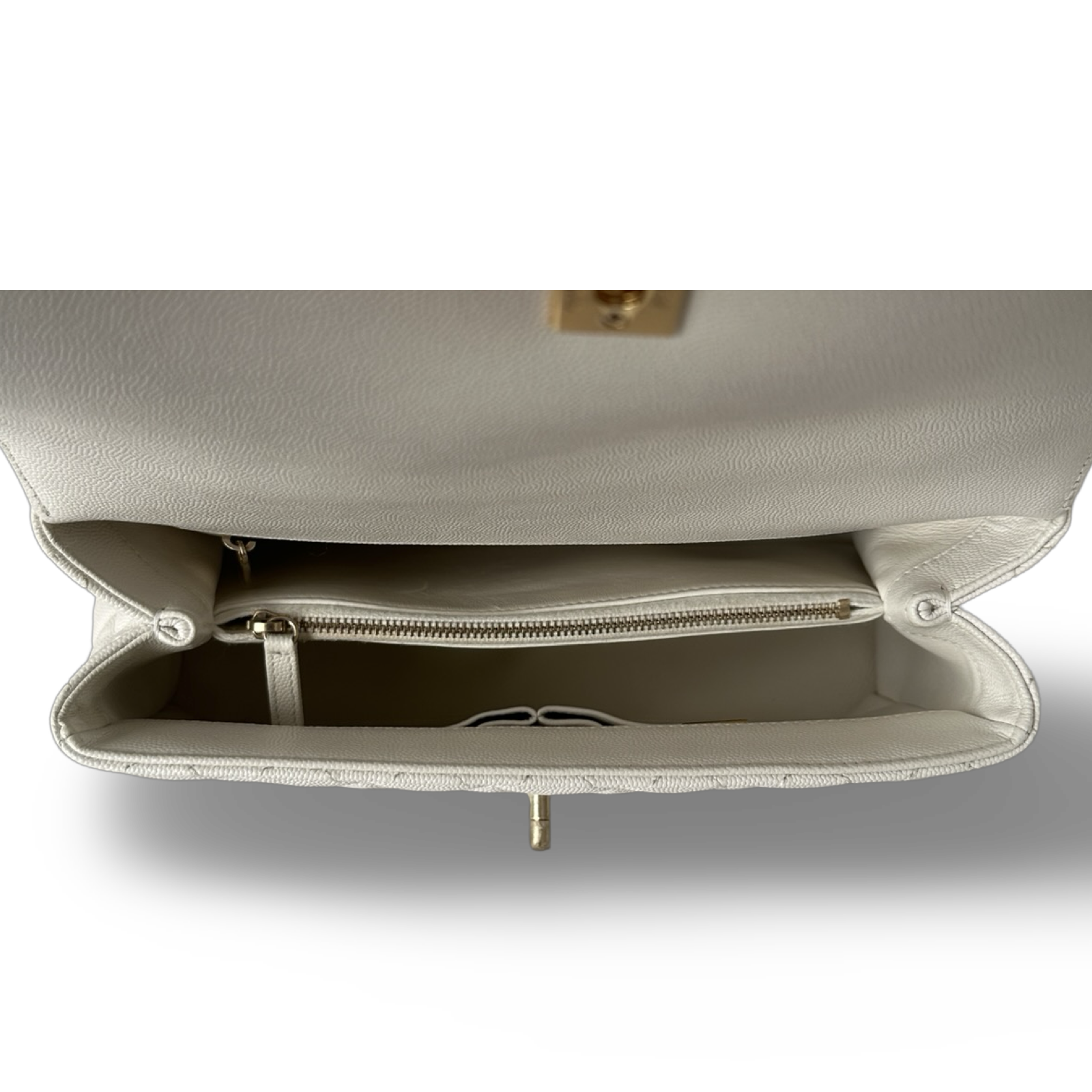 Chanel Classic Caviar Medium Coco Handle Bag - GHW / White