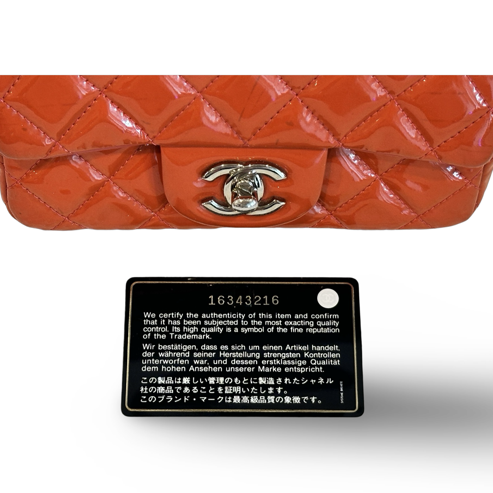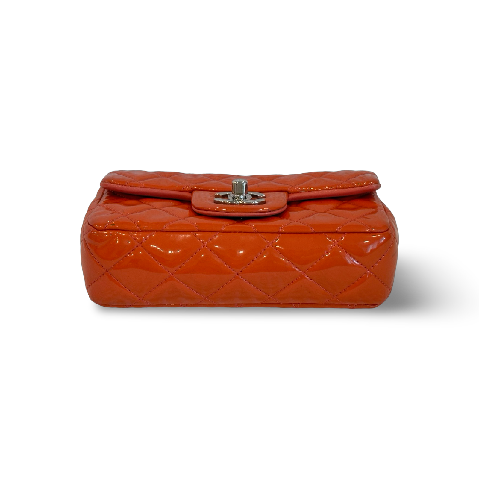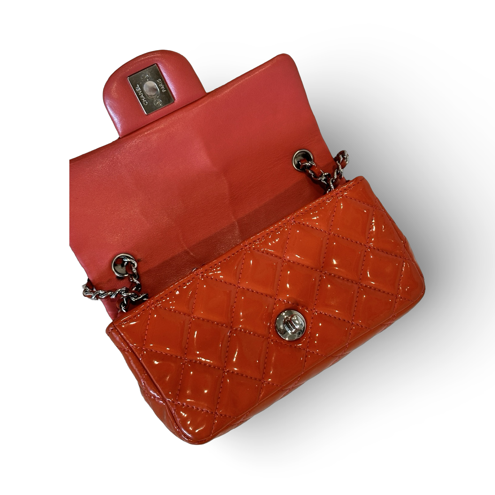 Chanel Classic Mini Rectangle Patent Single Flap Orange Pink