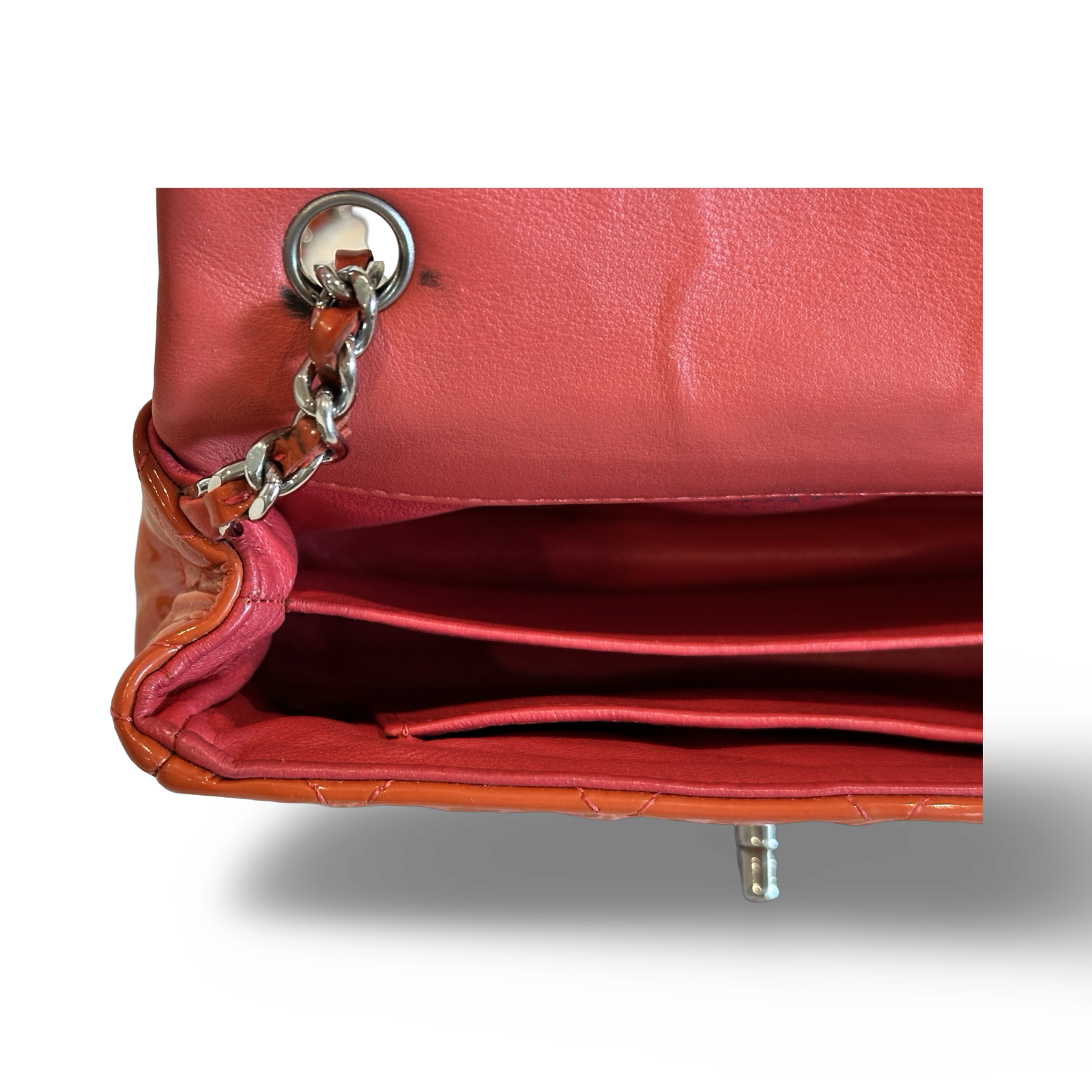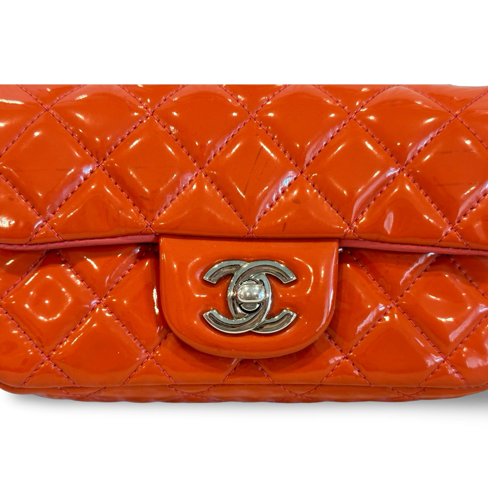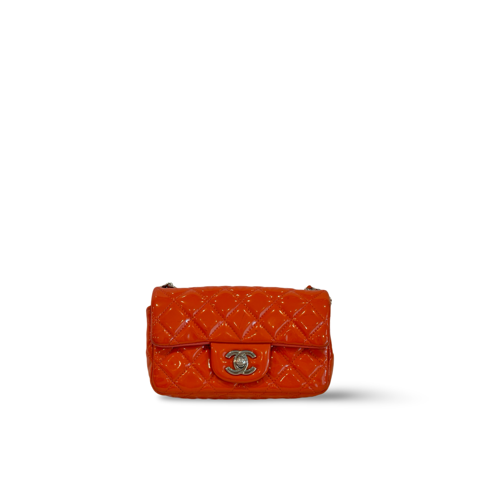 Chanel Classic Mini Rectangle Patent Single Flap Orange Pink