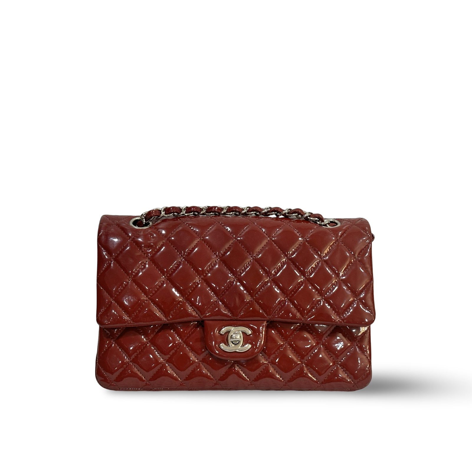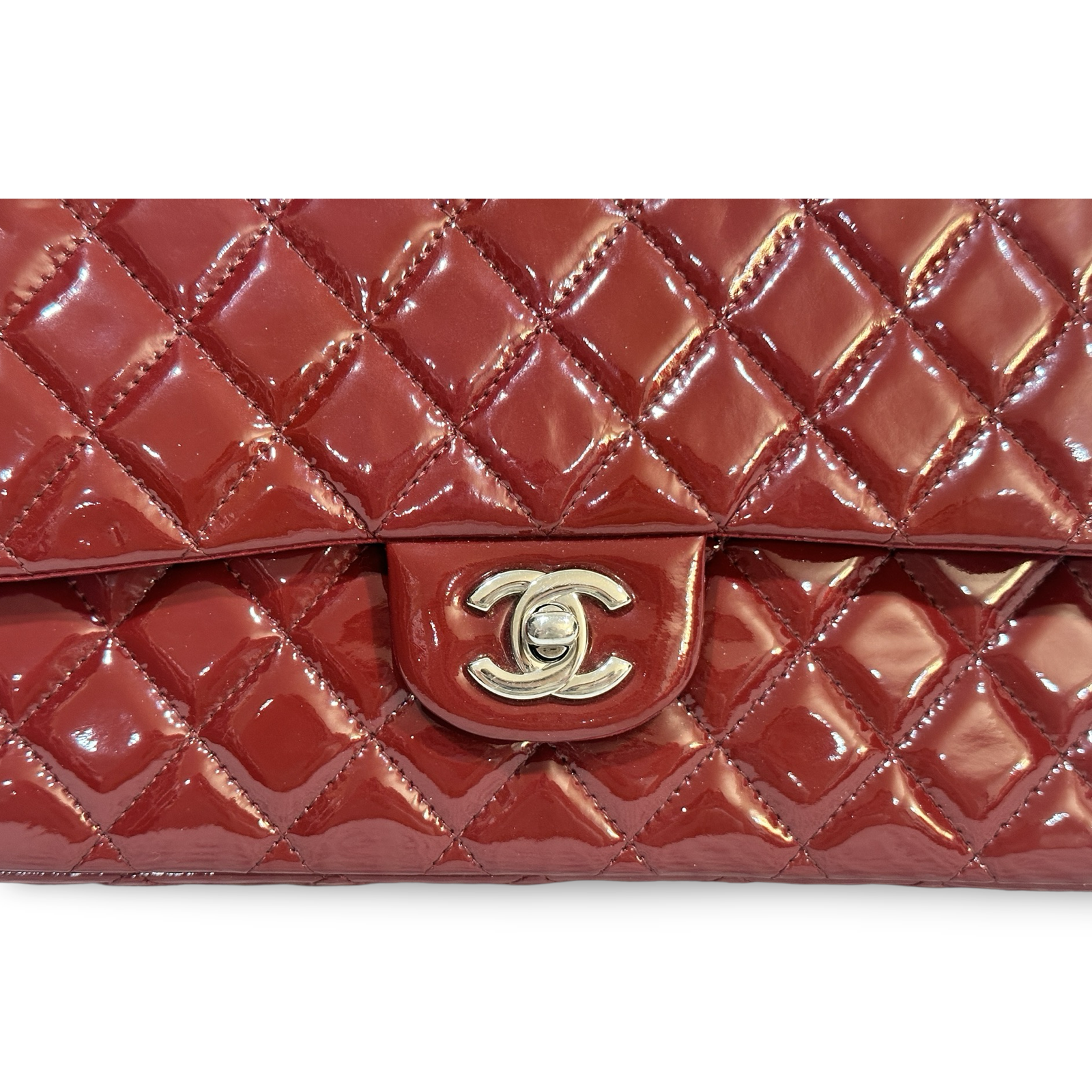 Chanel Classic Patent Medium Double Flap - SHW / Red