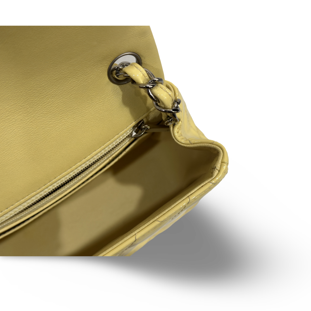 Chanel Classic Patent Quilted Mini Square Single Flap Light Yellow