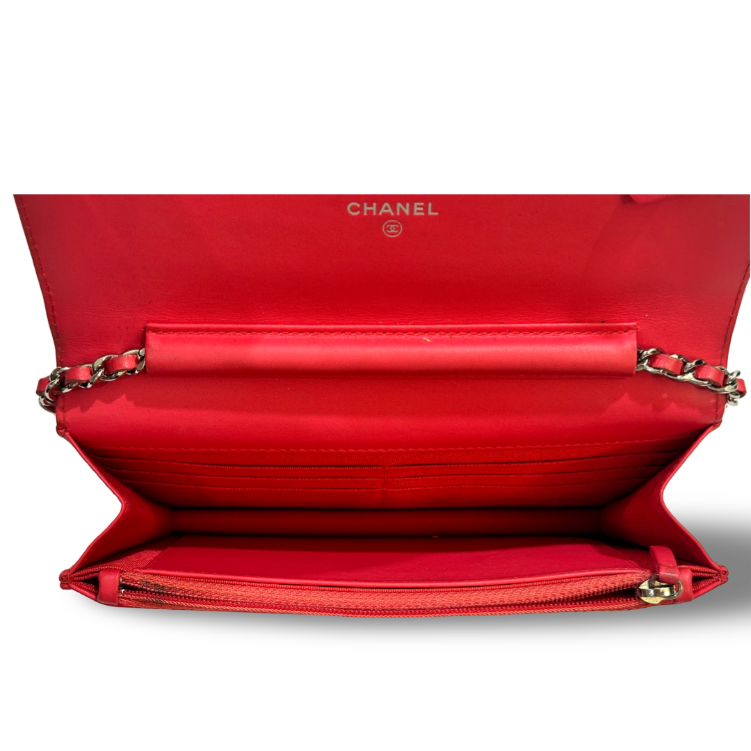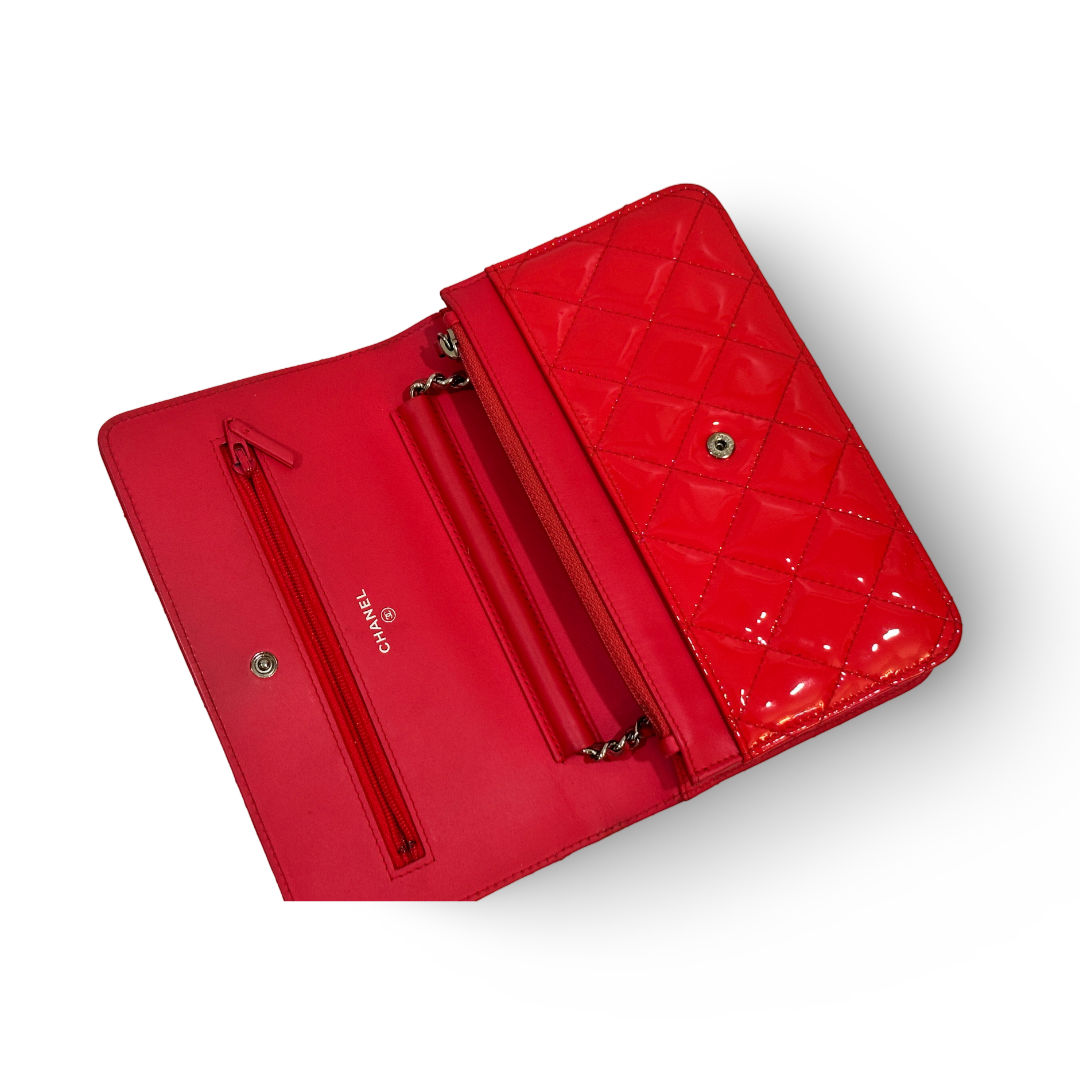 Chanel Classic Patent Quilted Wallet On Chain WOC Peach Pink