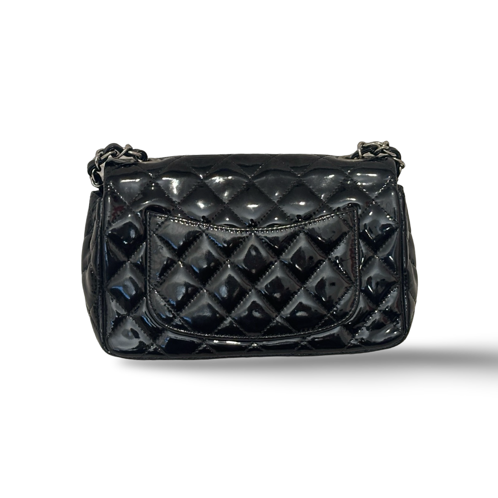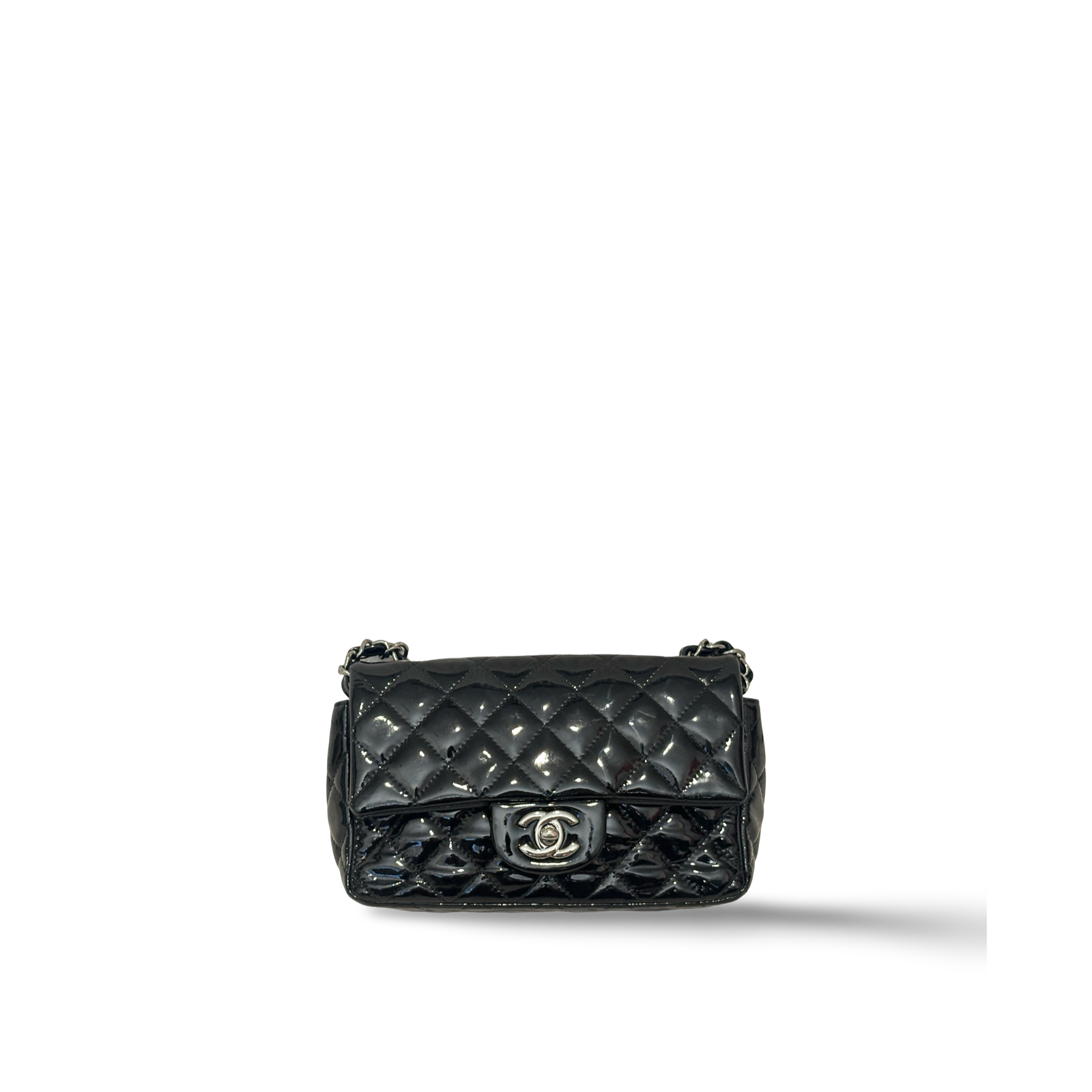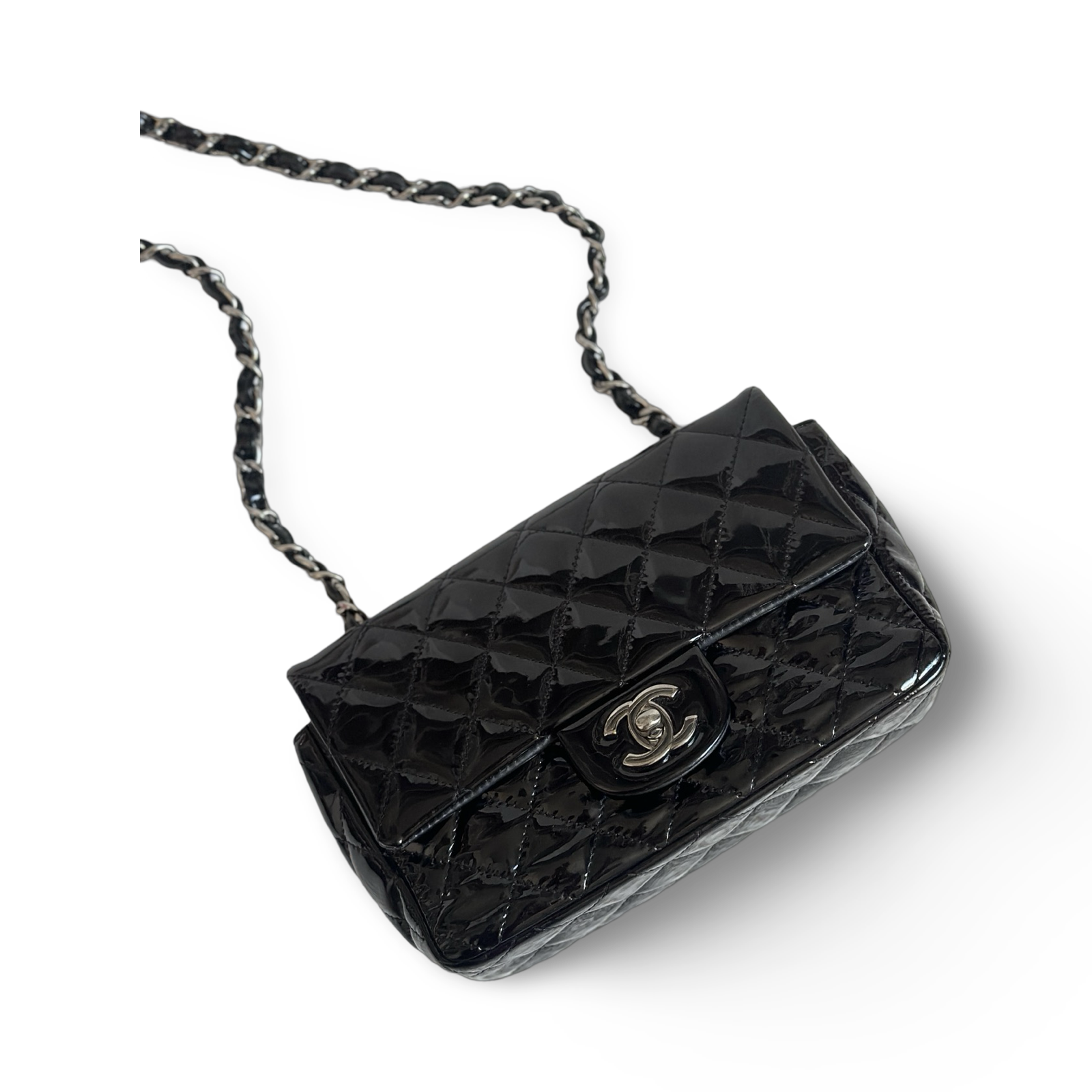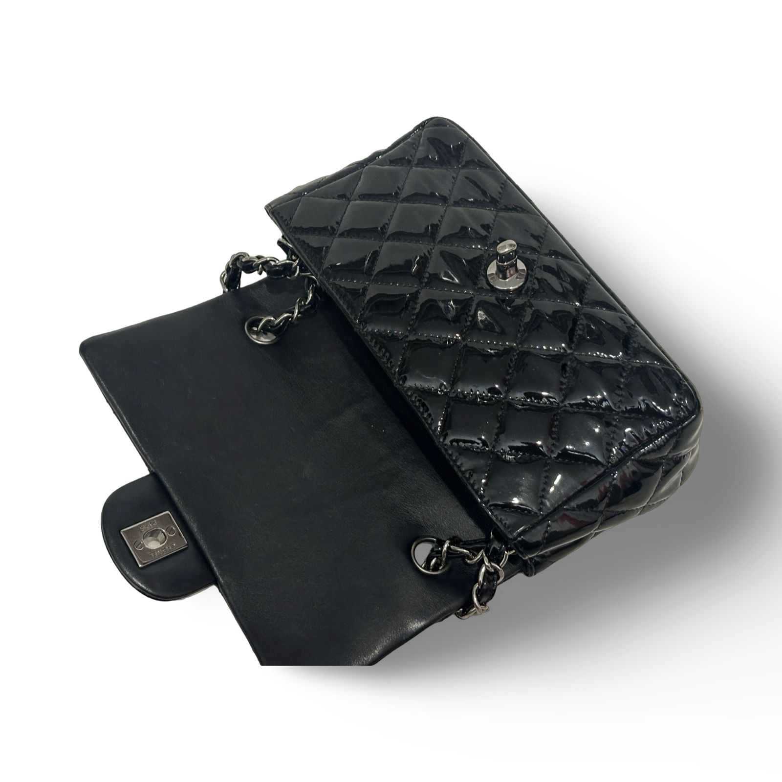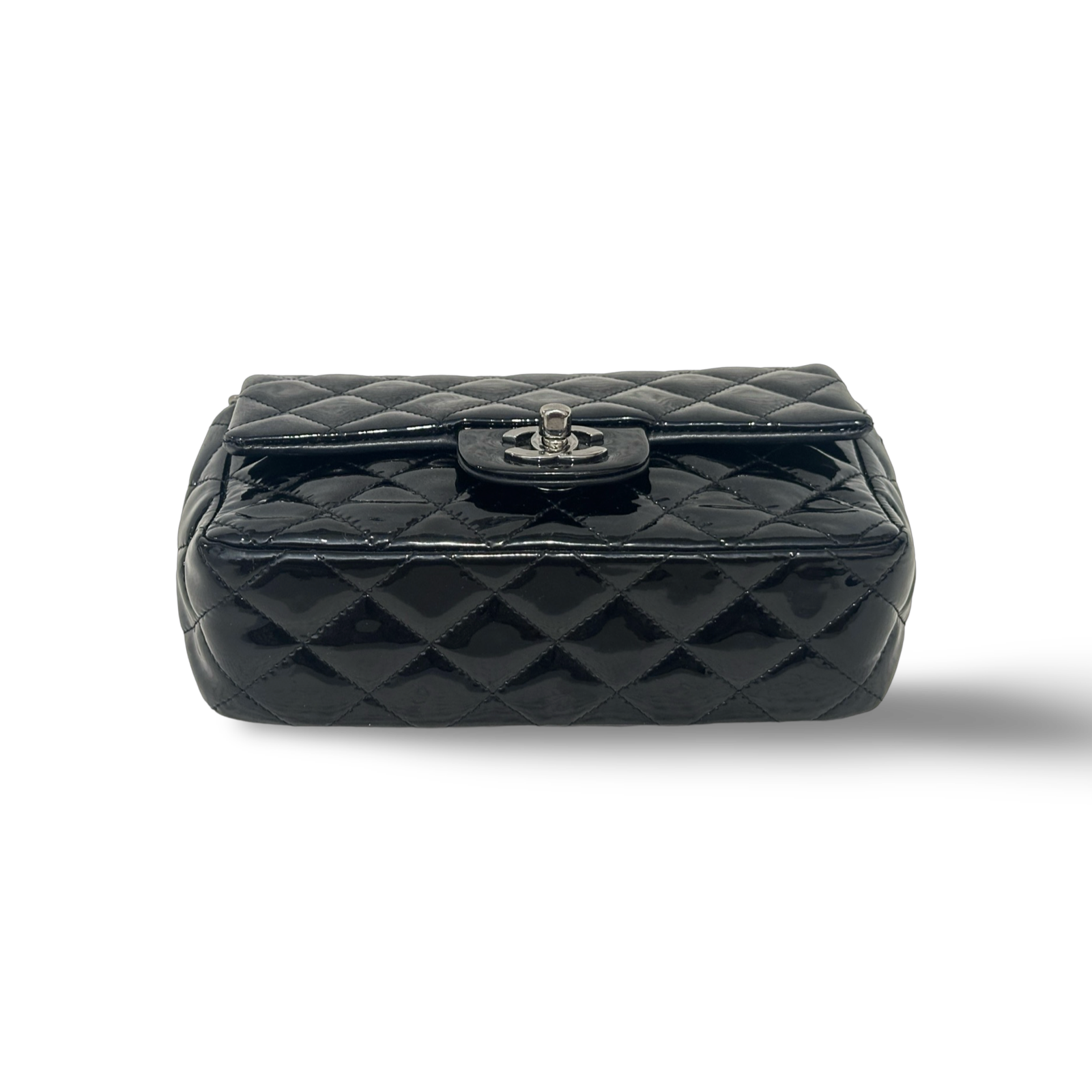 Chanel Classic Patent Rectangular Flap Silver (Black)