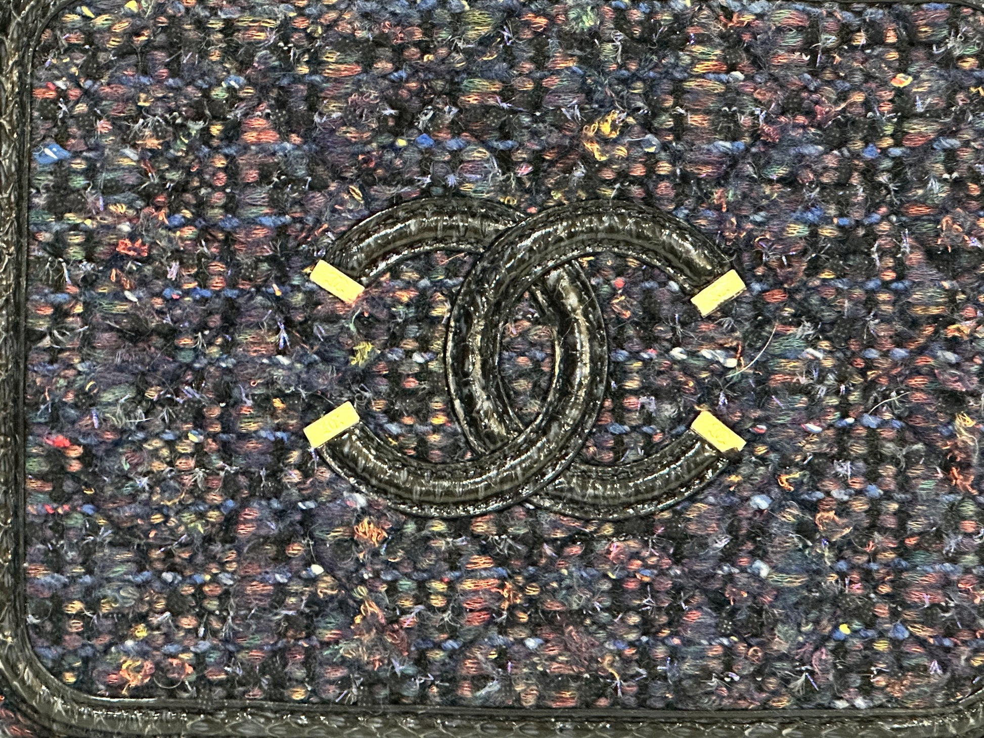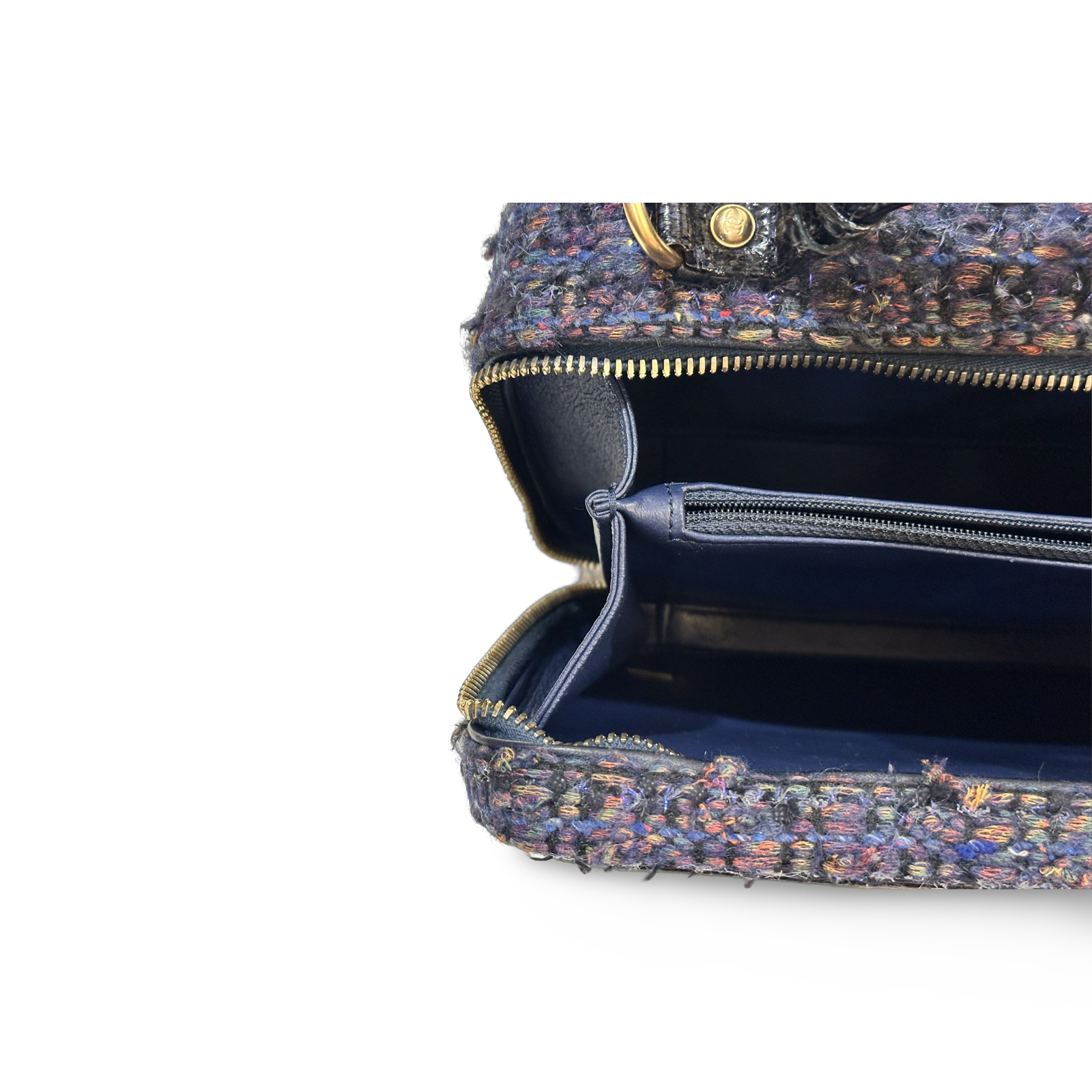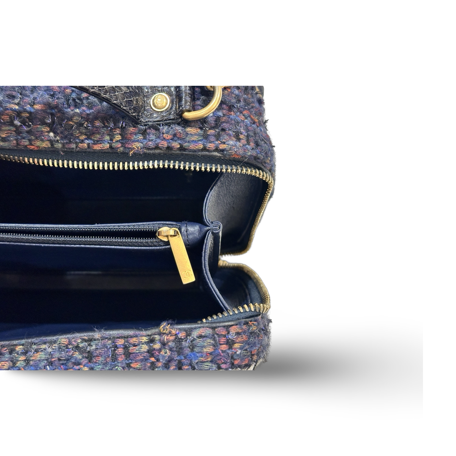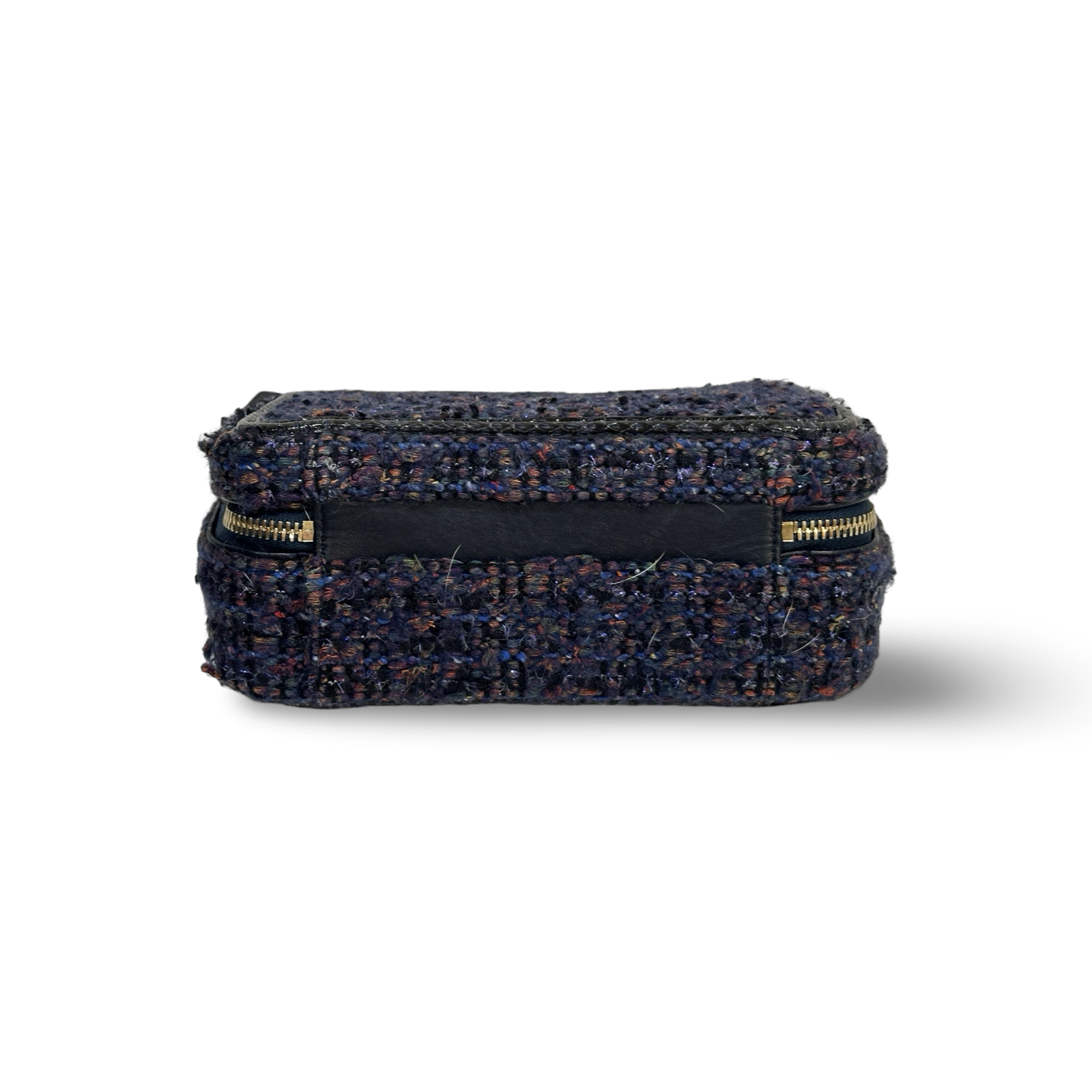 Chanel Classic Sneak Skin Tweed Medium Vanity Case Gold Navy