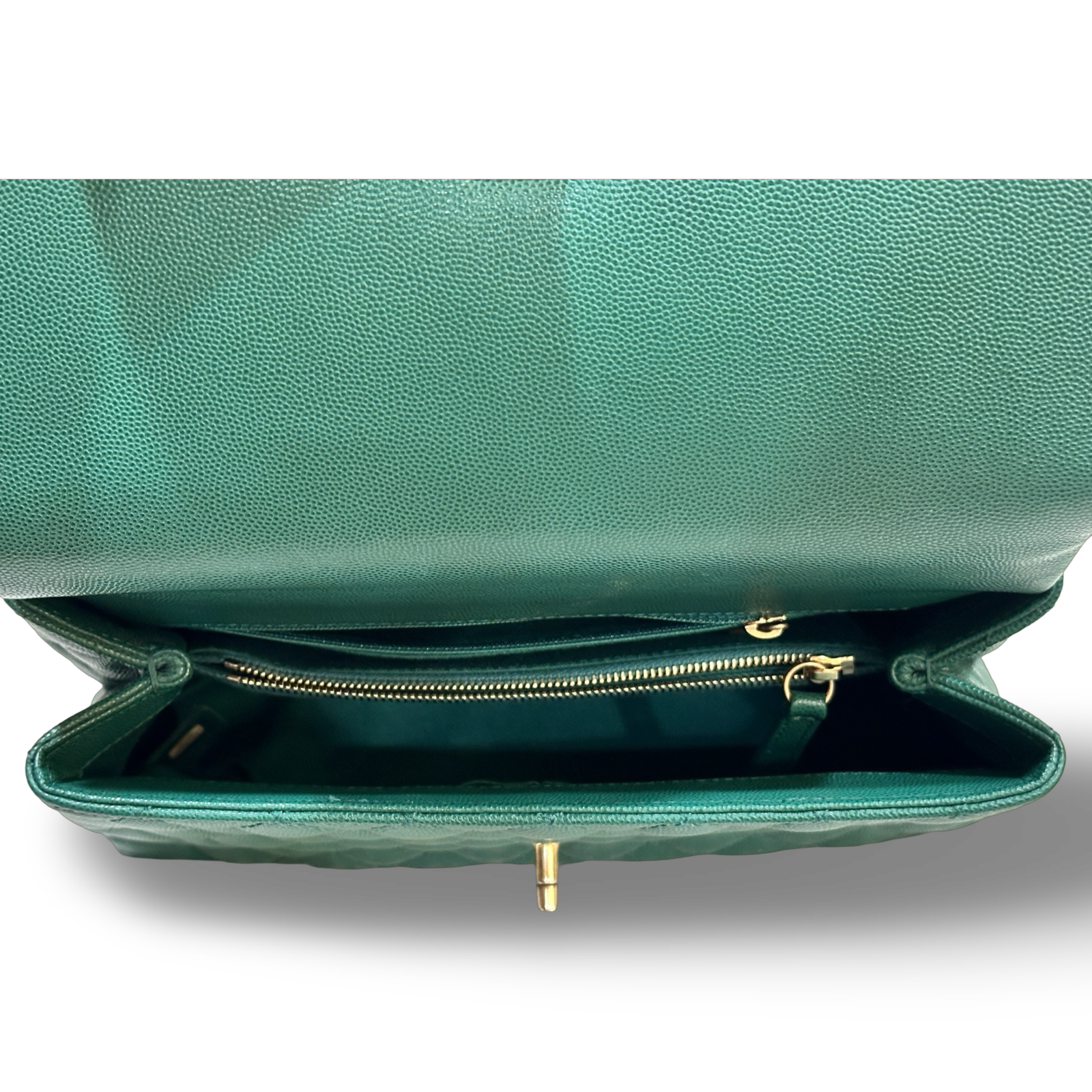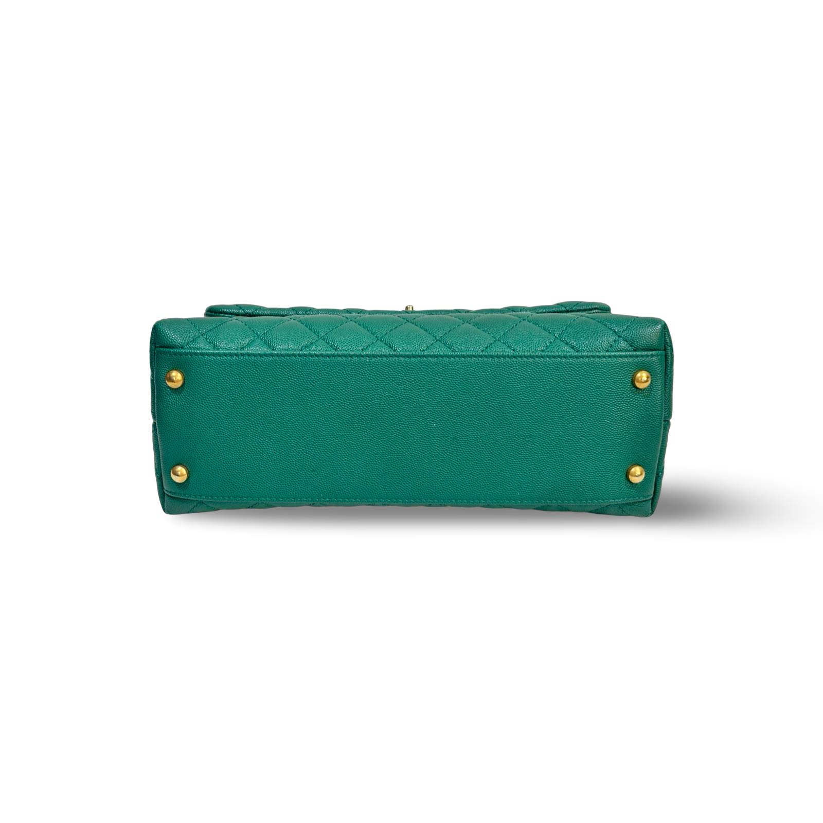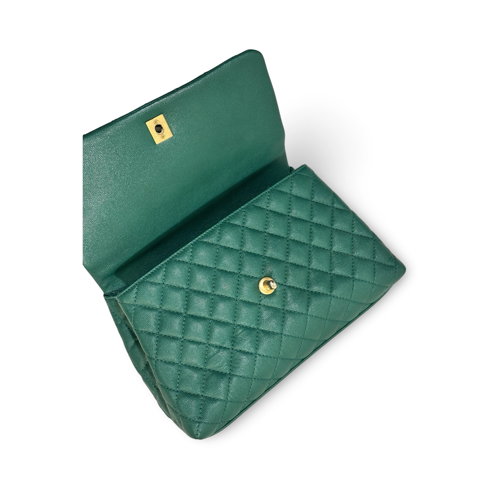Chanel Classic Caviar Medium Coco Handle Flap Gold Green