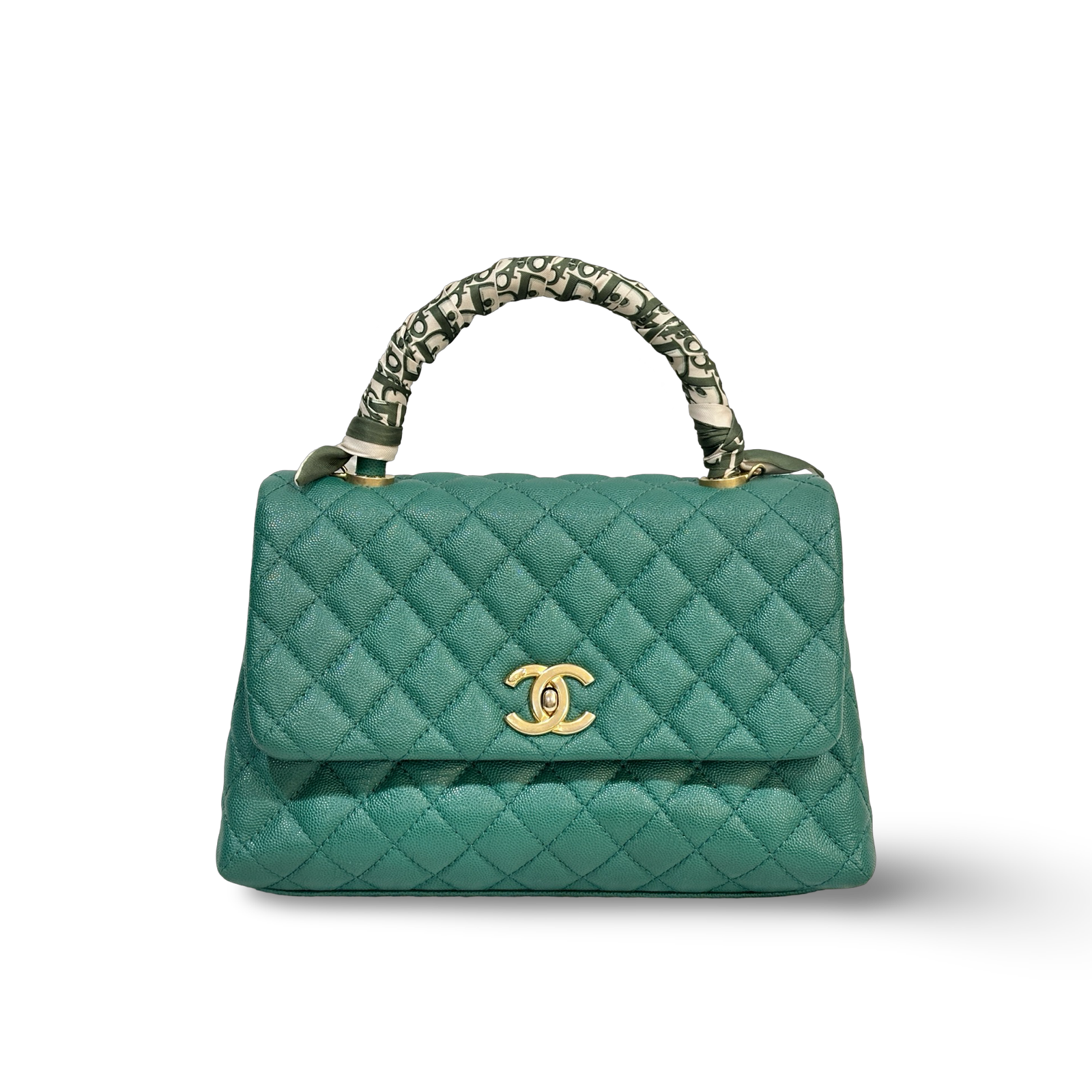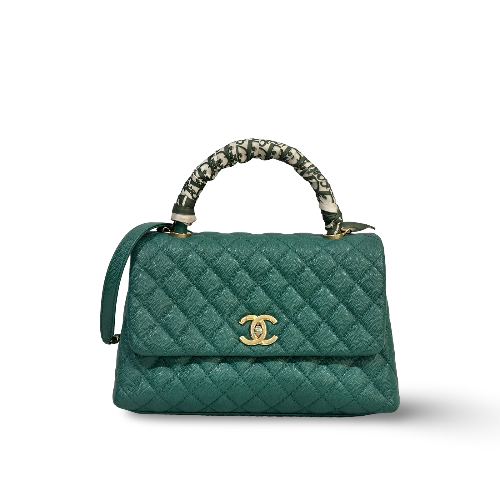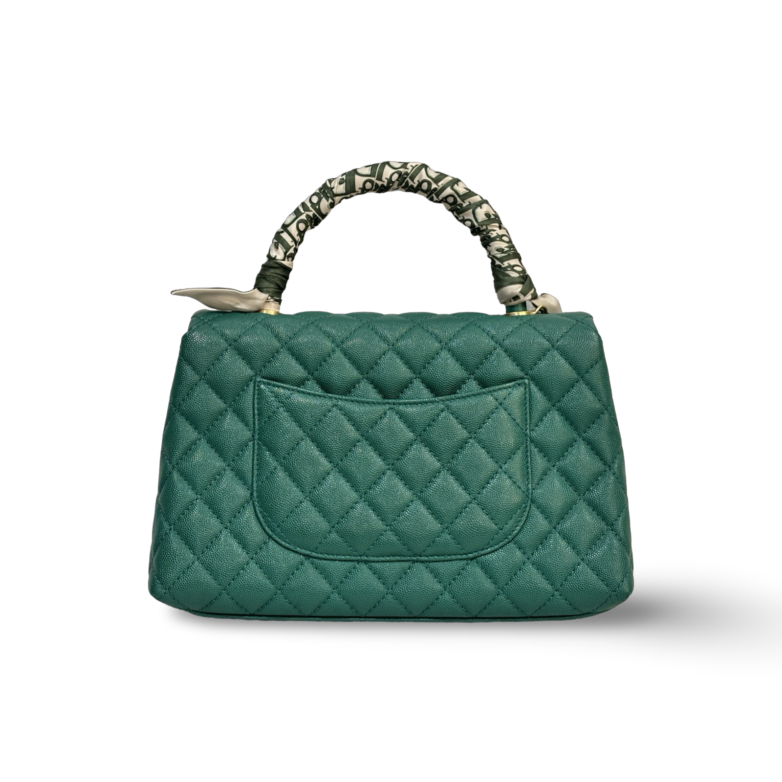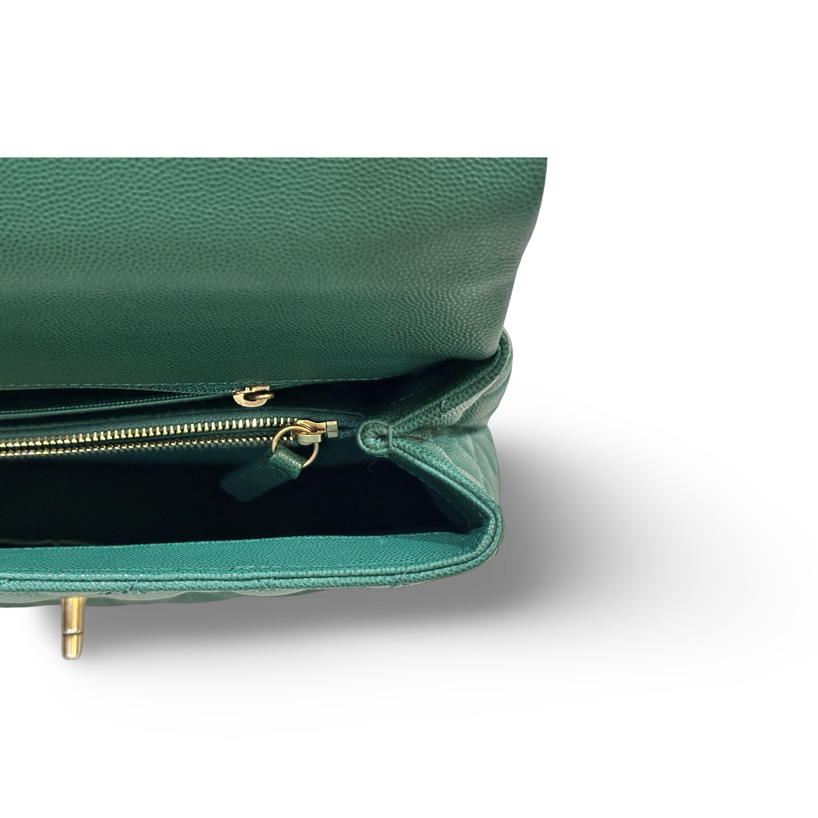 Chanel Classic Caviar Medium Coco Handle Flap Gold Green