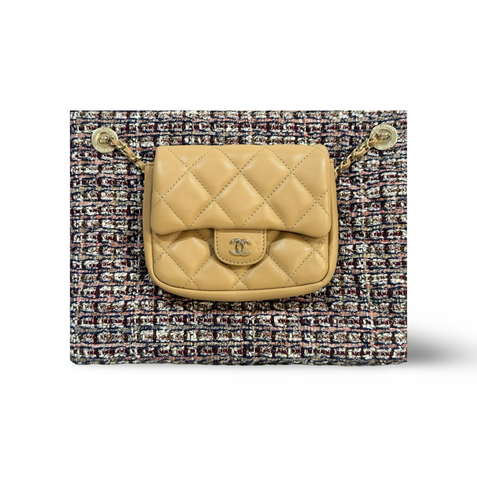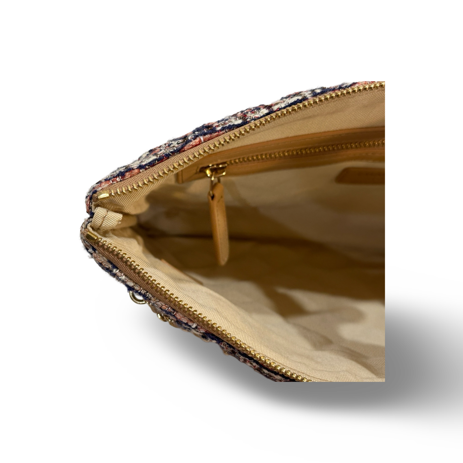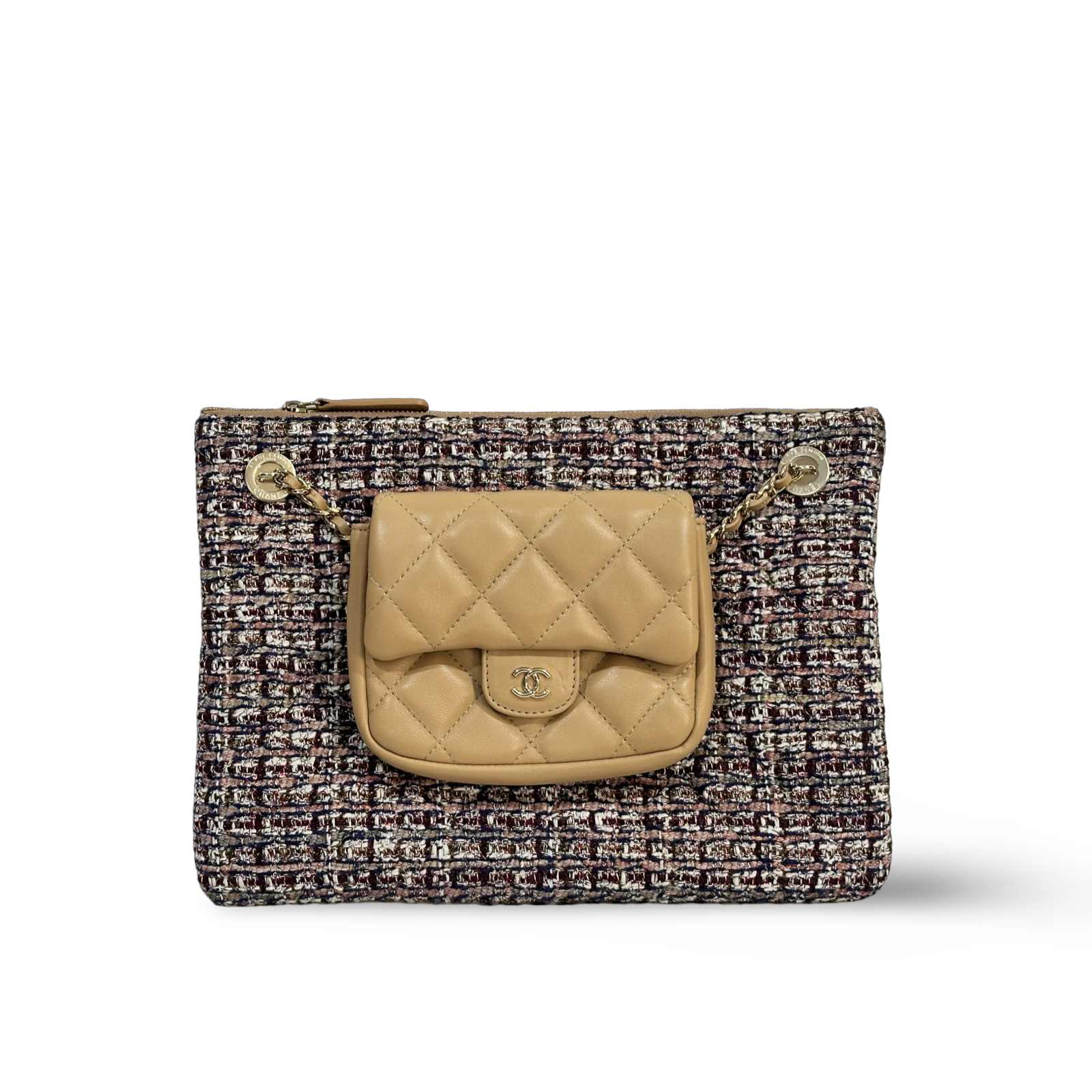Chanel Classic Lambskin Fabric Double Clutch Beige