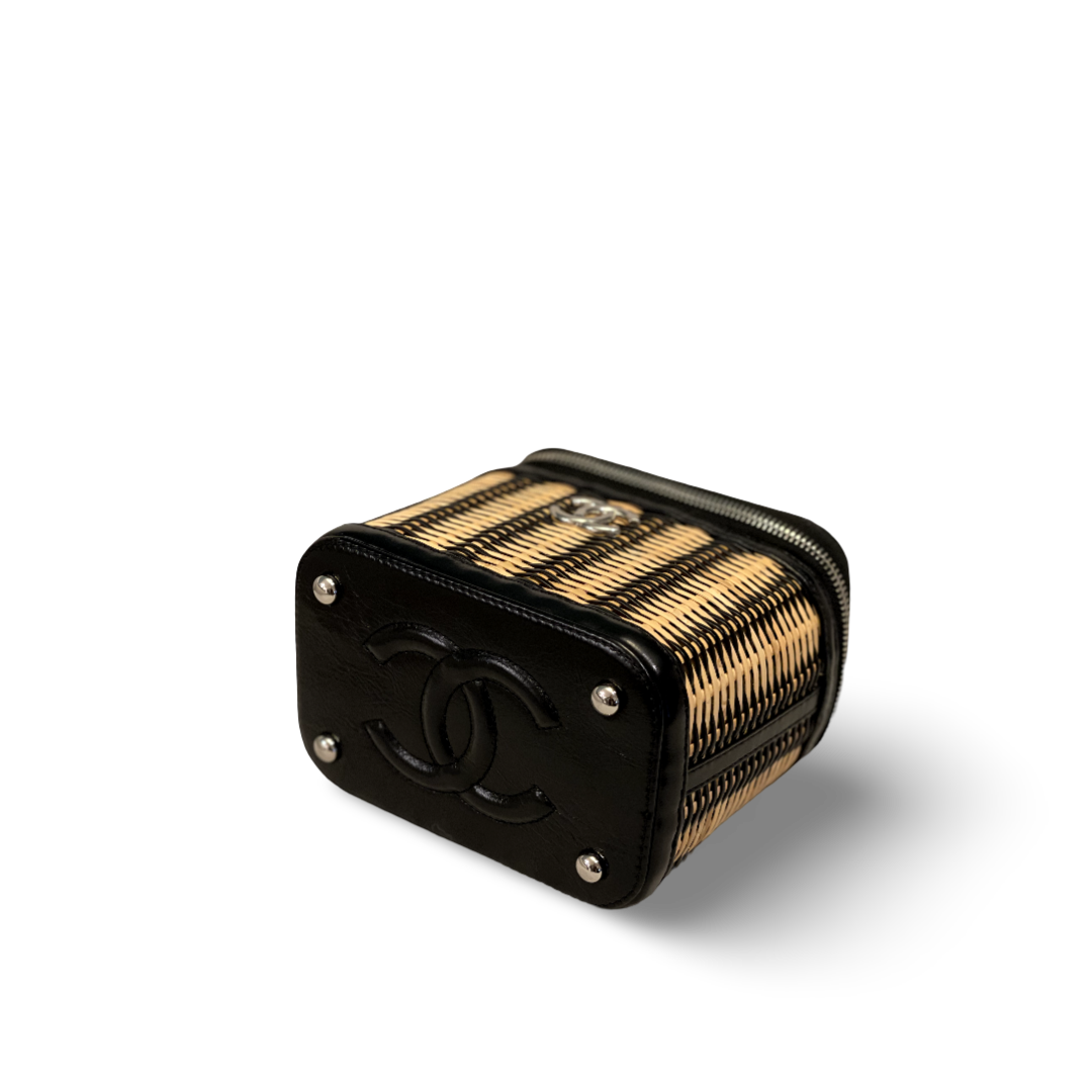 Chanel Glazed Calfskin Raffia Vanity Case Black Bag