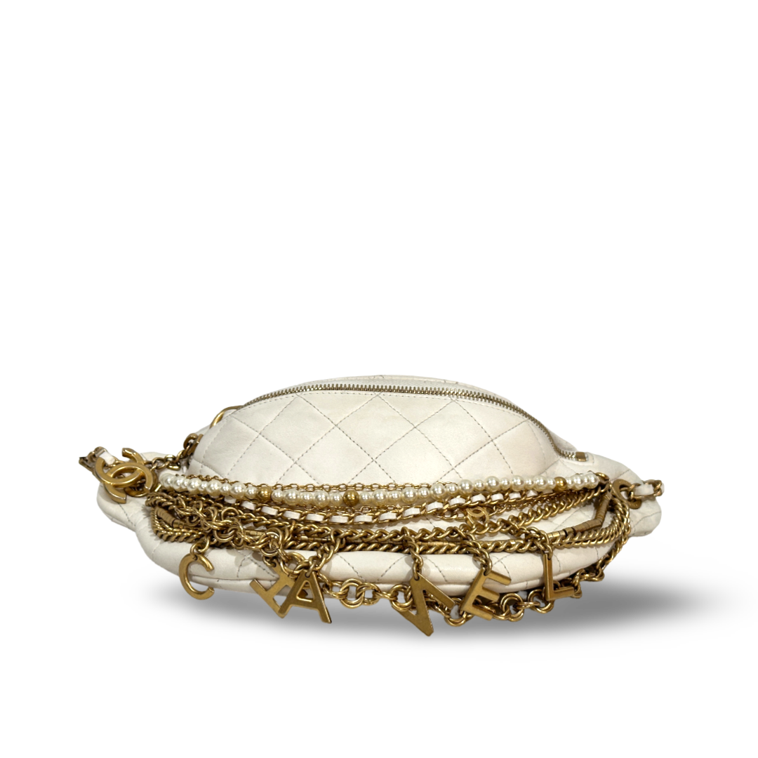 Chanel Lambskin Quilted All About Chains Waist Belt Bag White