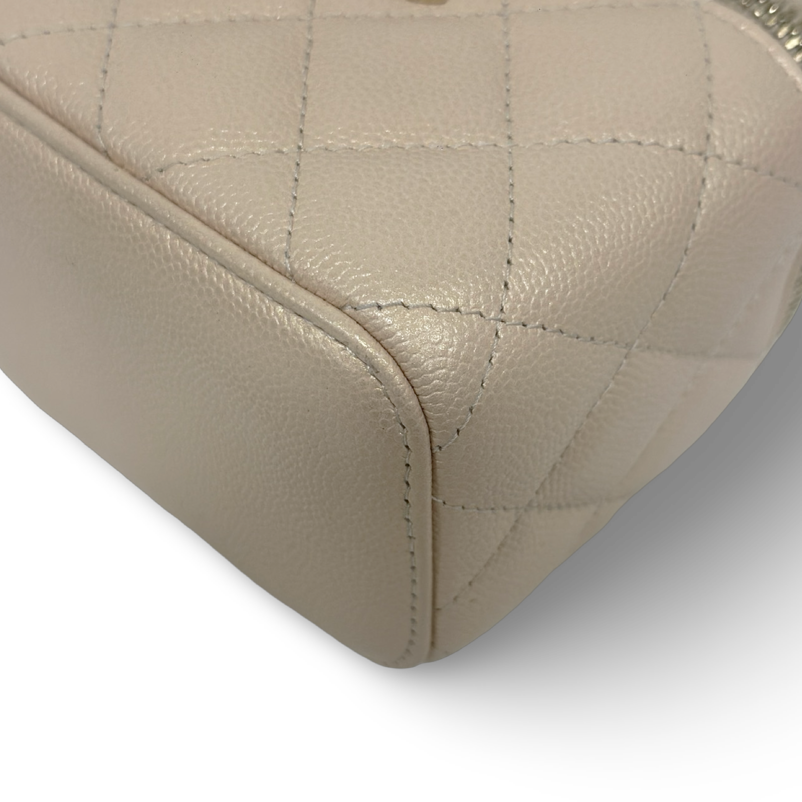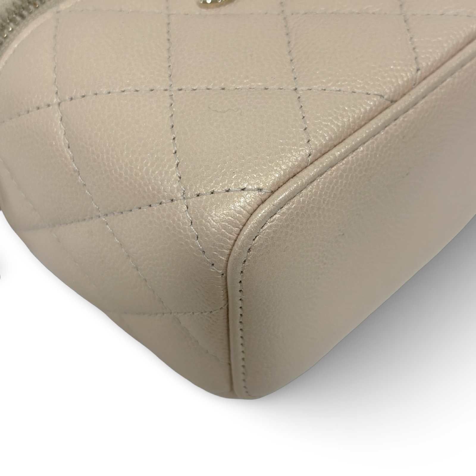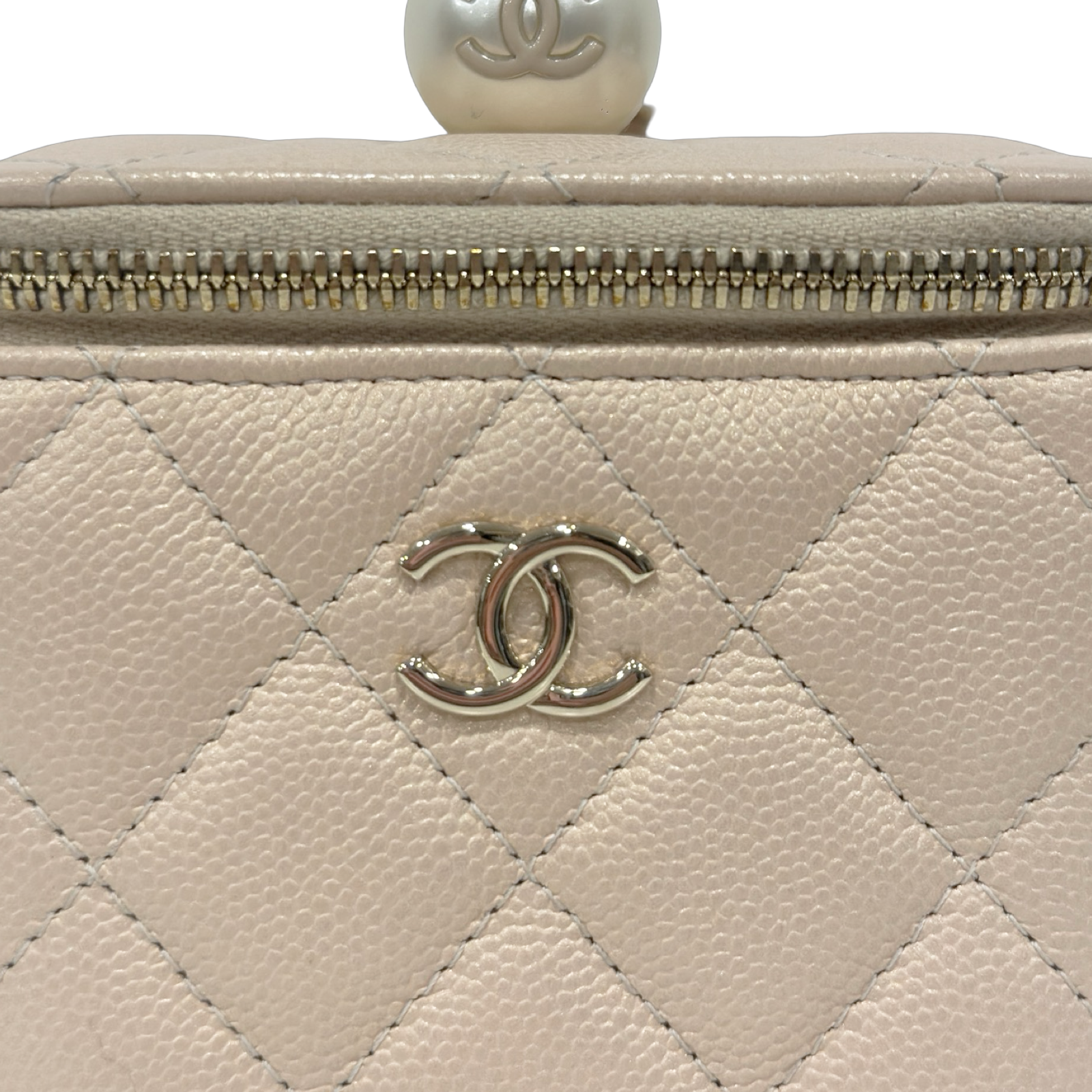 Chanel Quilted Caviar Pearl On Top Mini Vanity Case With Chain - GHW / Beige