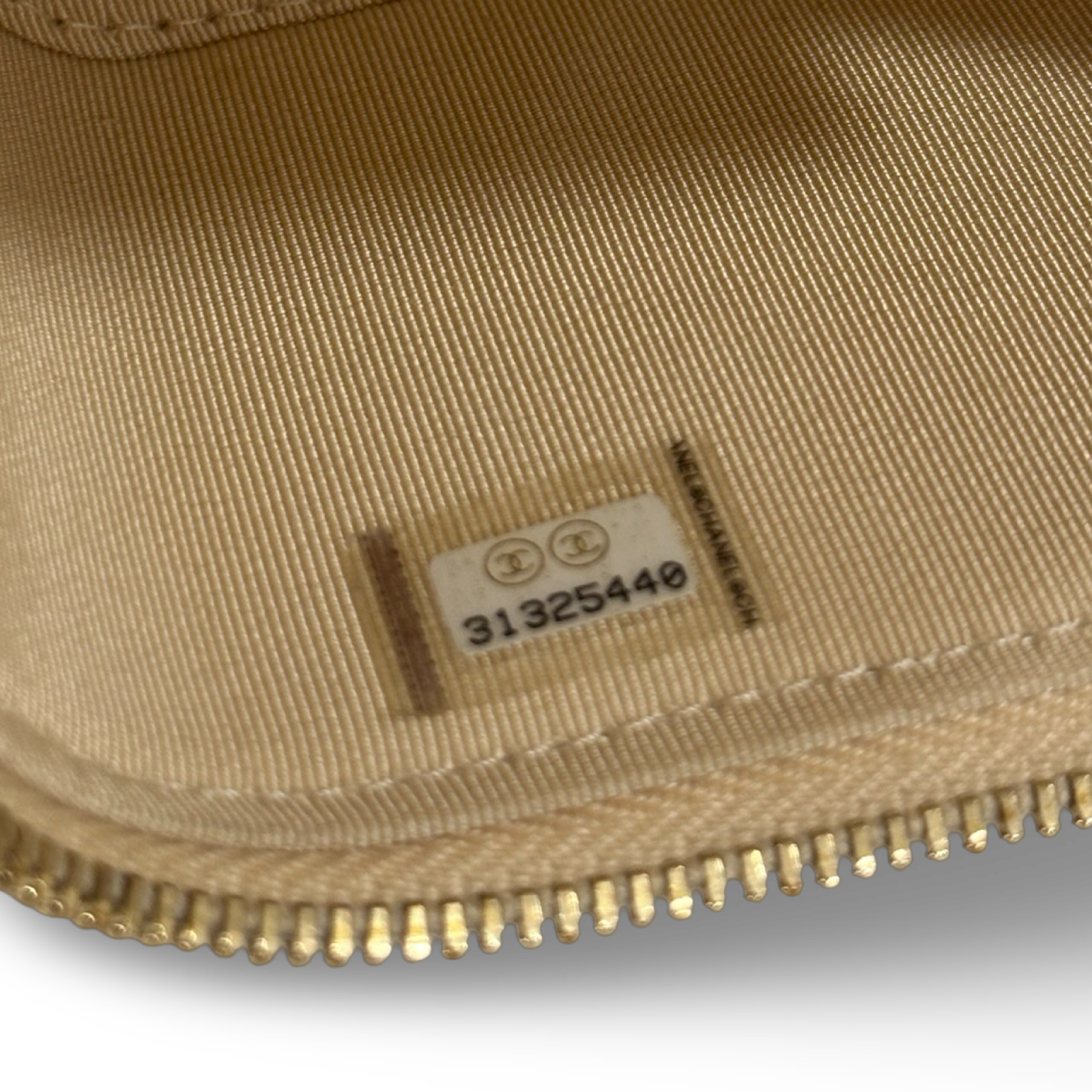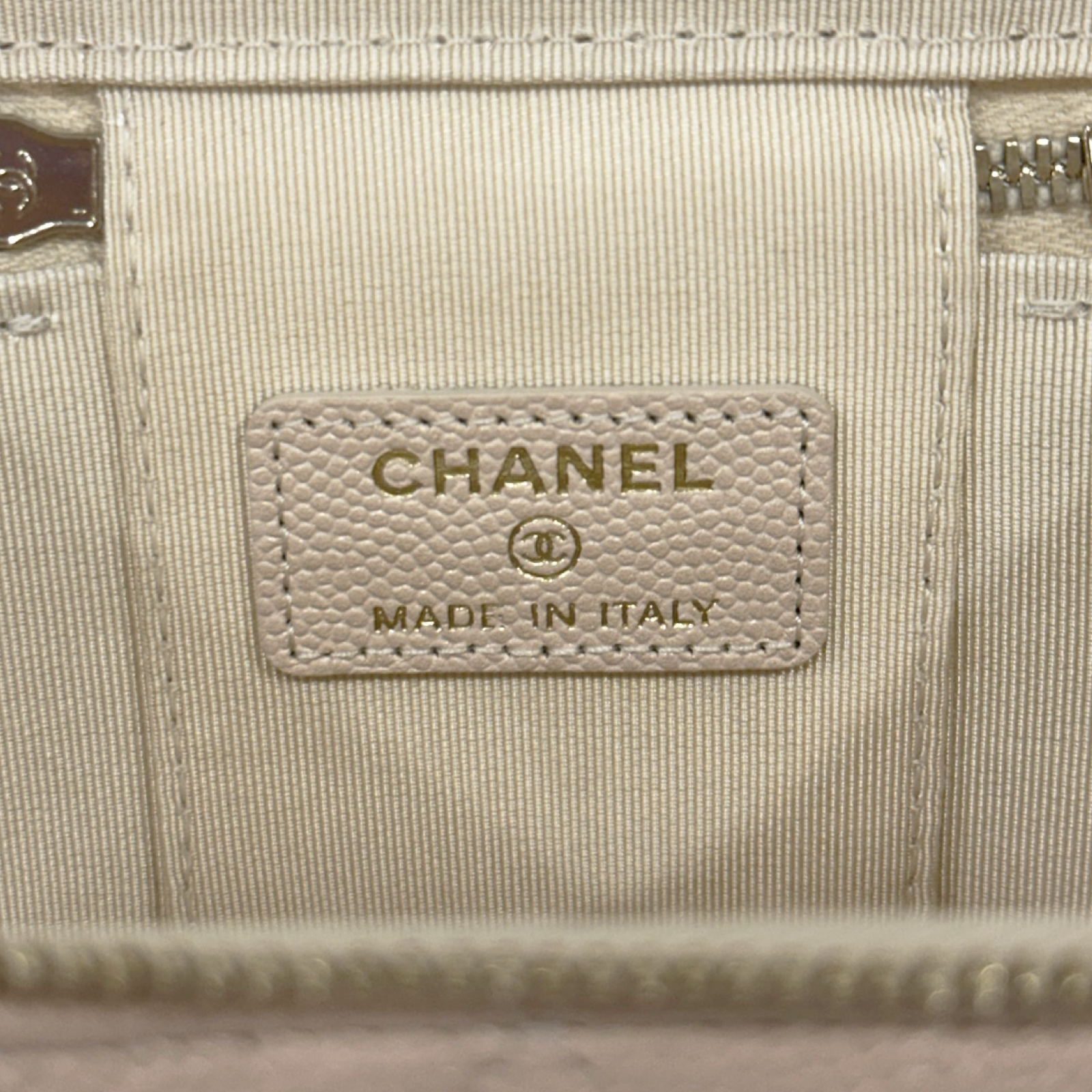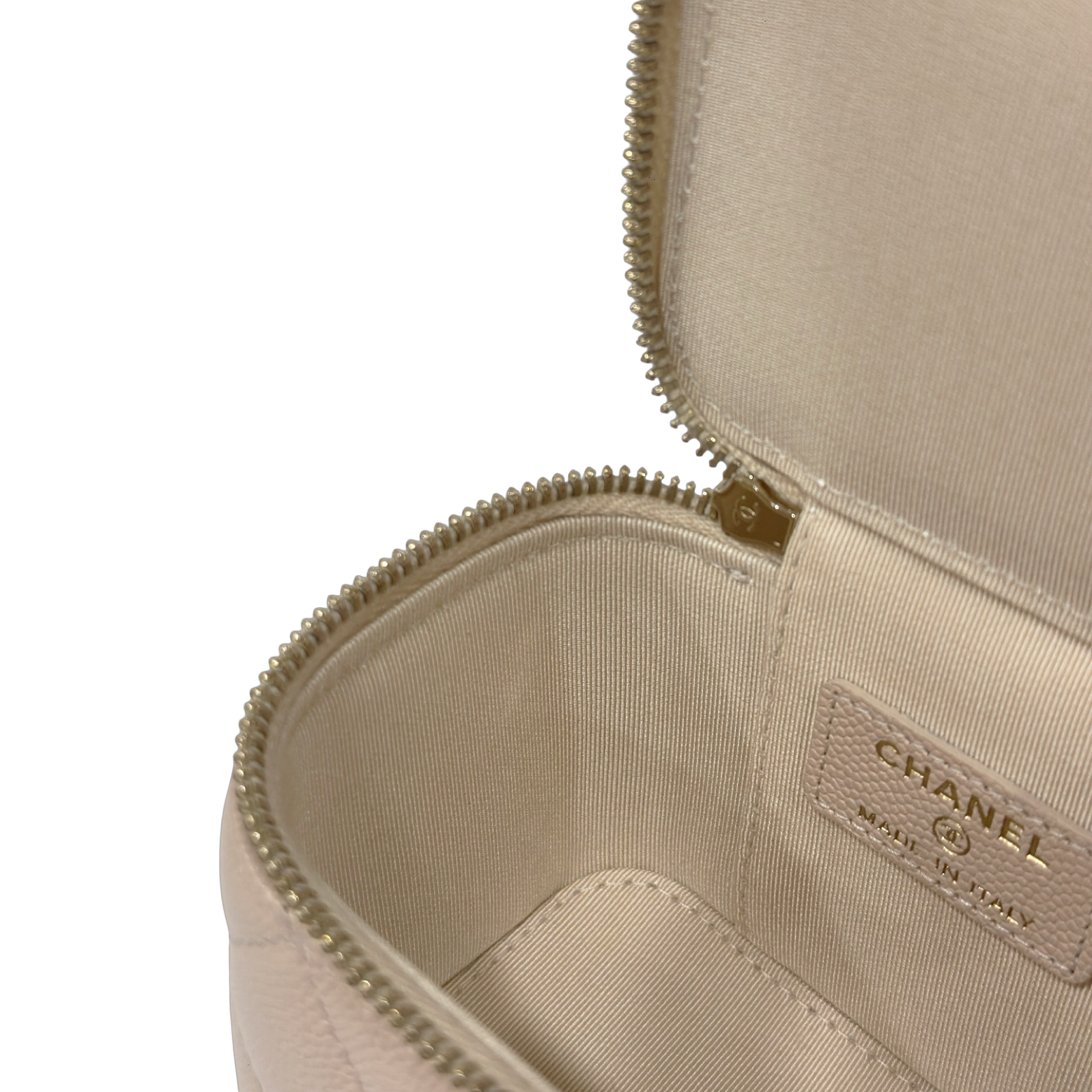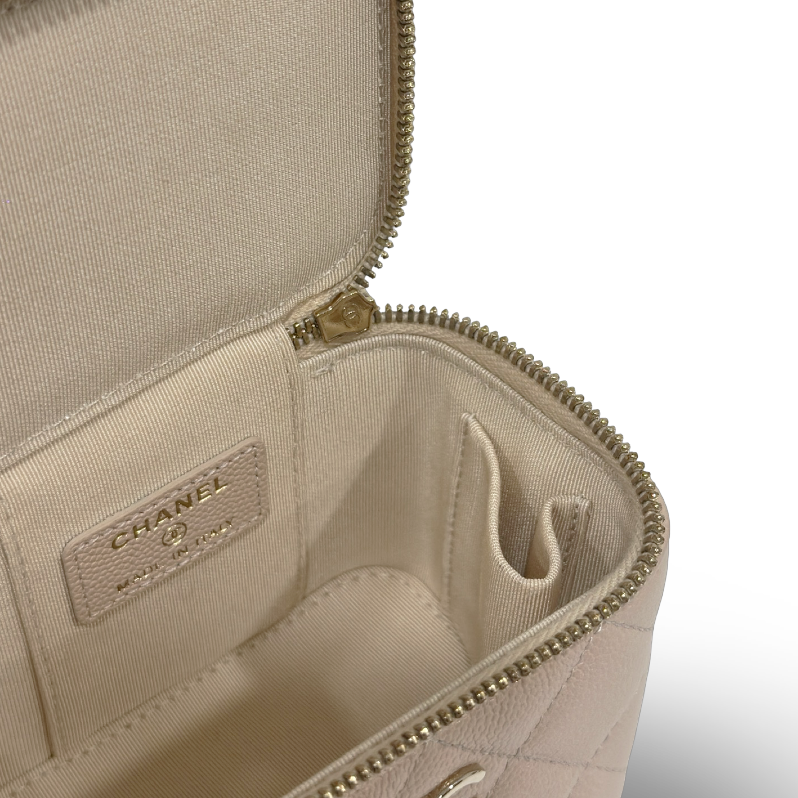 Chanel Quilted Caviar Pearl On Top Mini Vanity Case With Chain - GHW / Beige