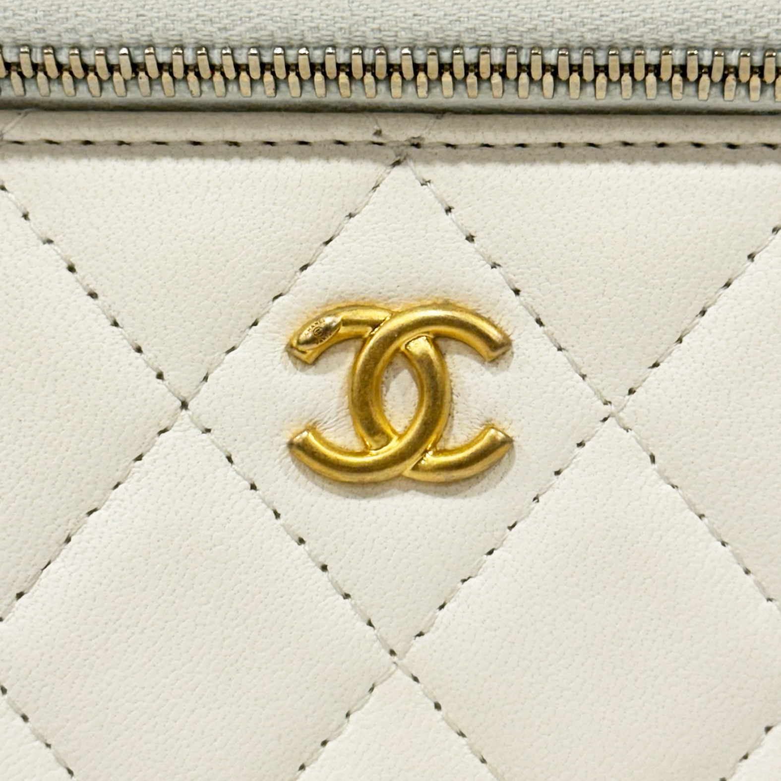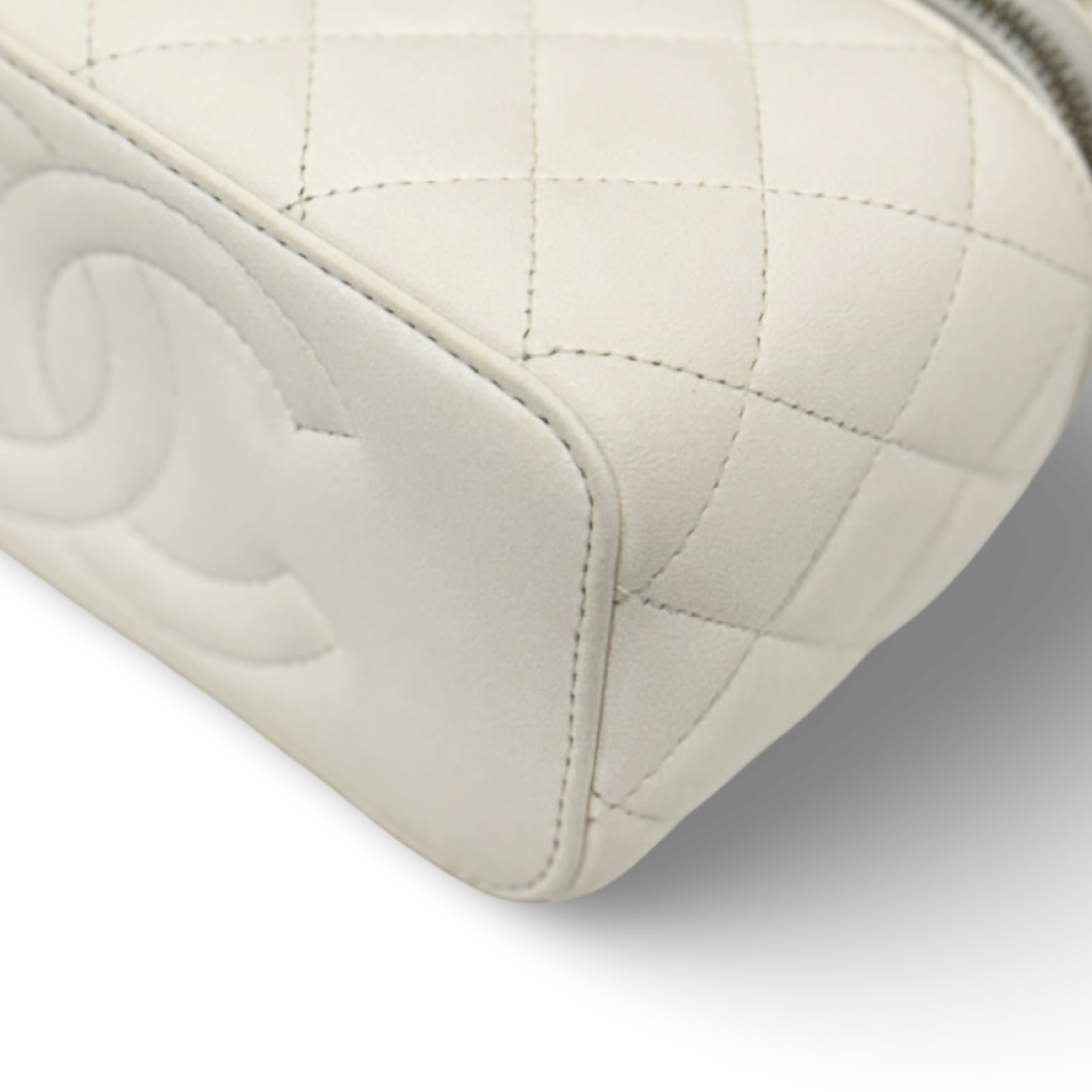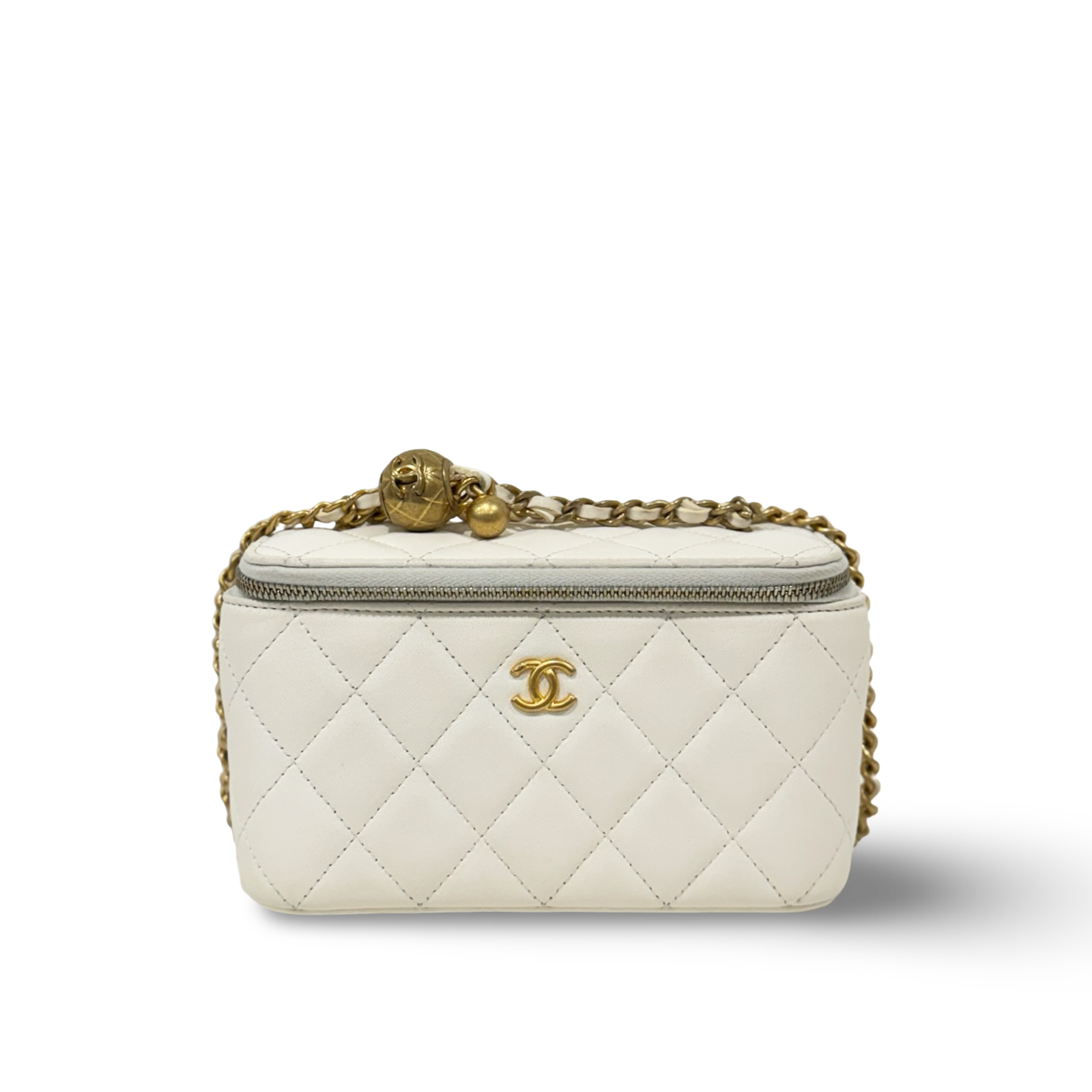 Chanel Quiled Lambskin Pearl Crush Vanity Case - GHW / White