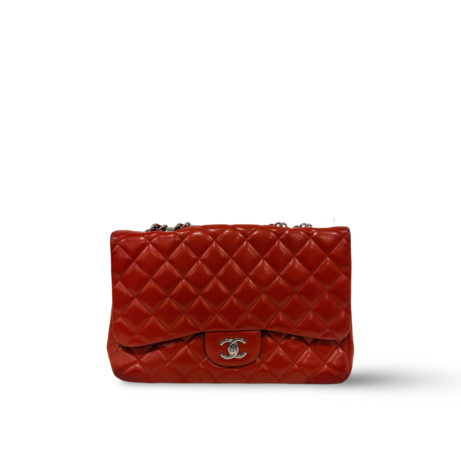 Chanel Quileted Lambskin Jumbo Single Flap - GHW / Red