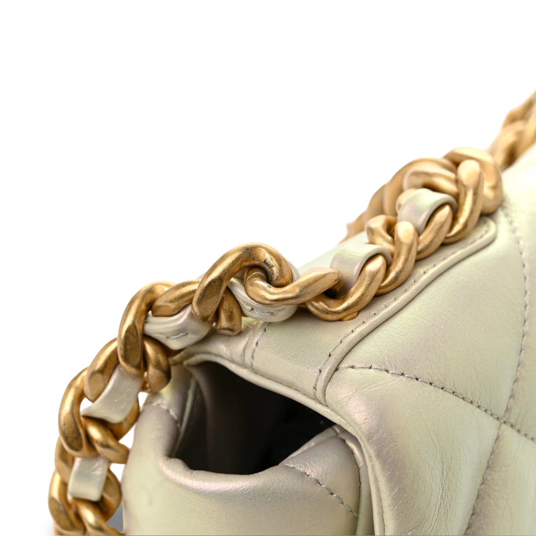 Chanel Quilted Calfskin Iridescent Medium 19Bag - GHW/White
