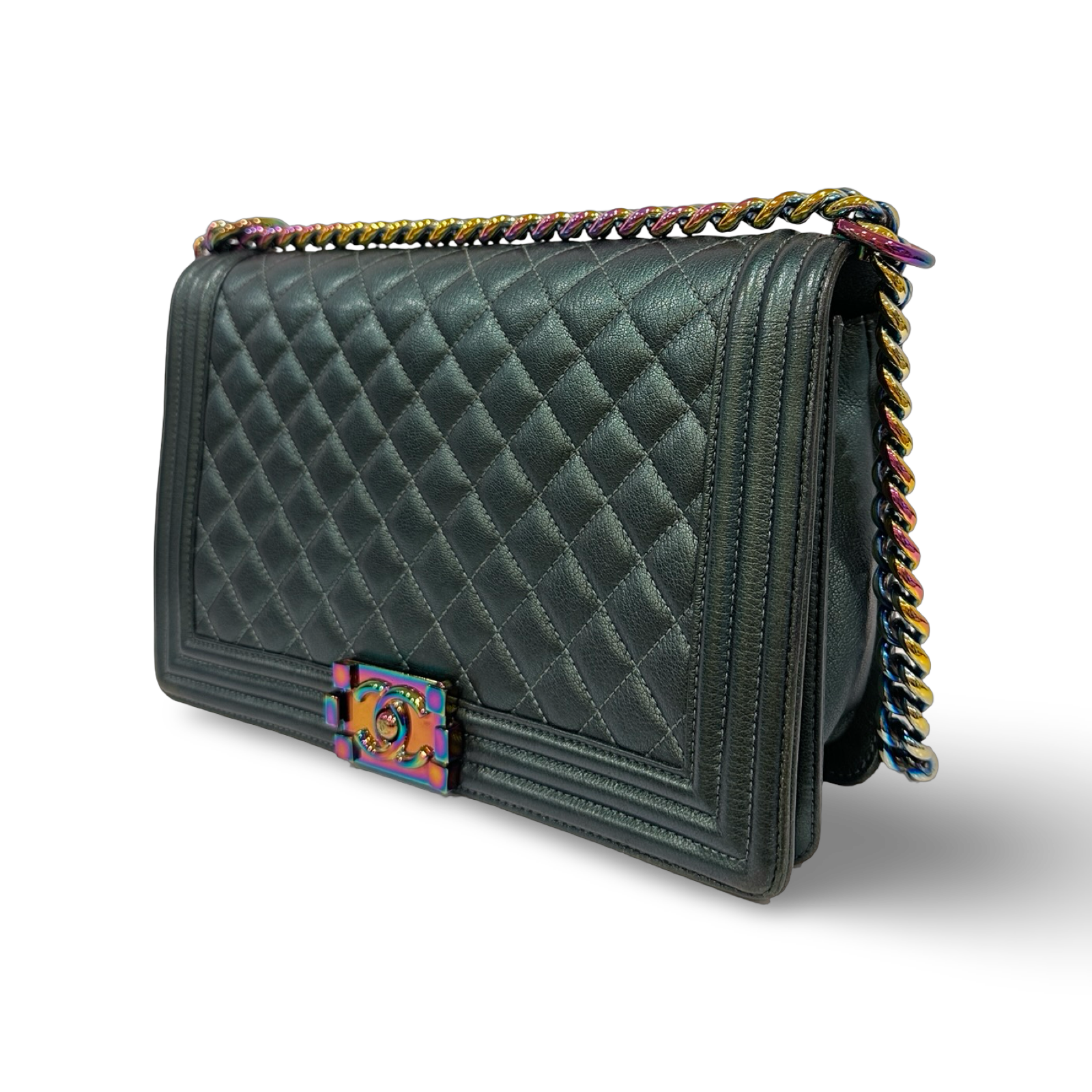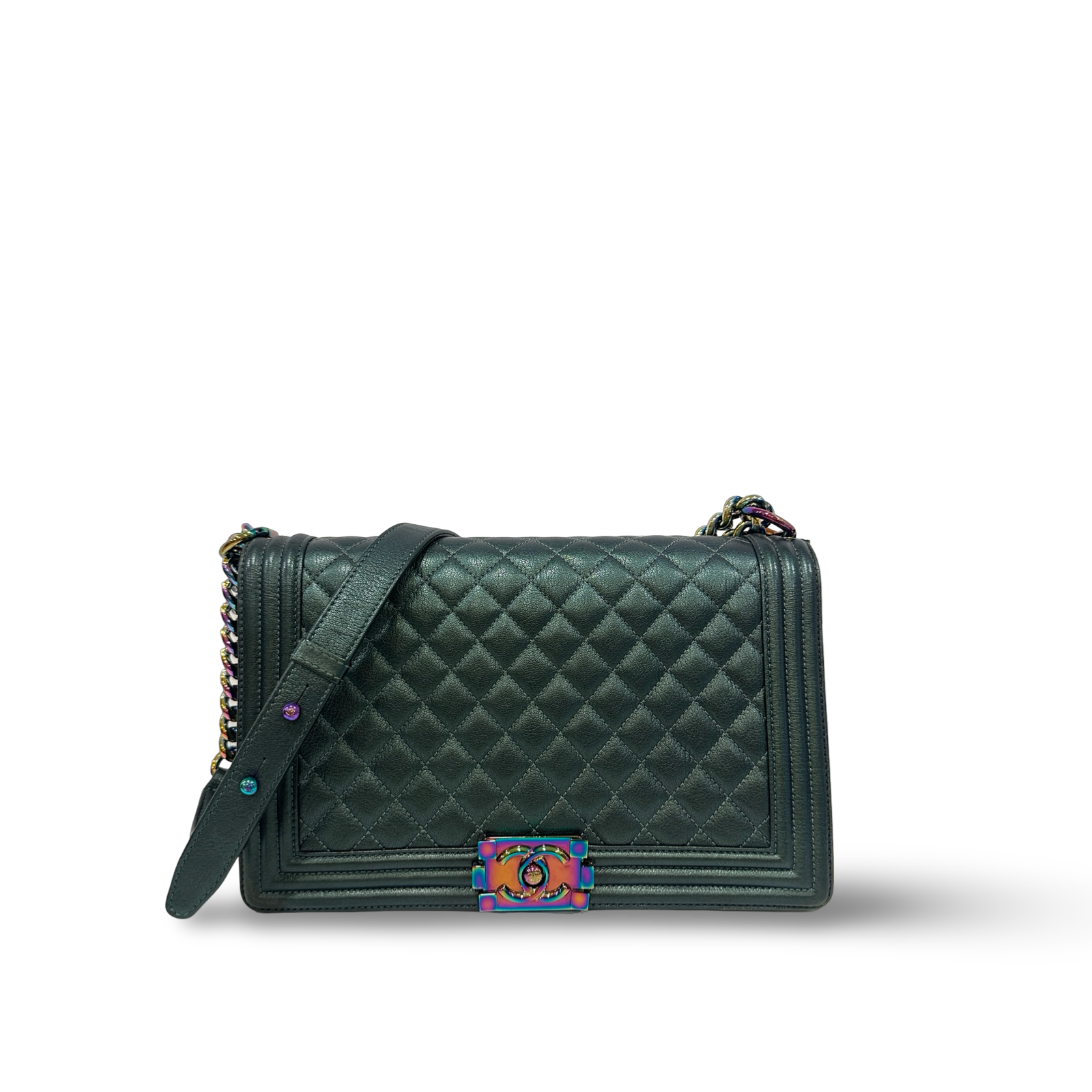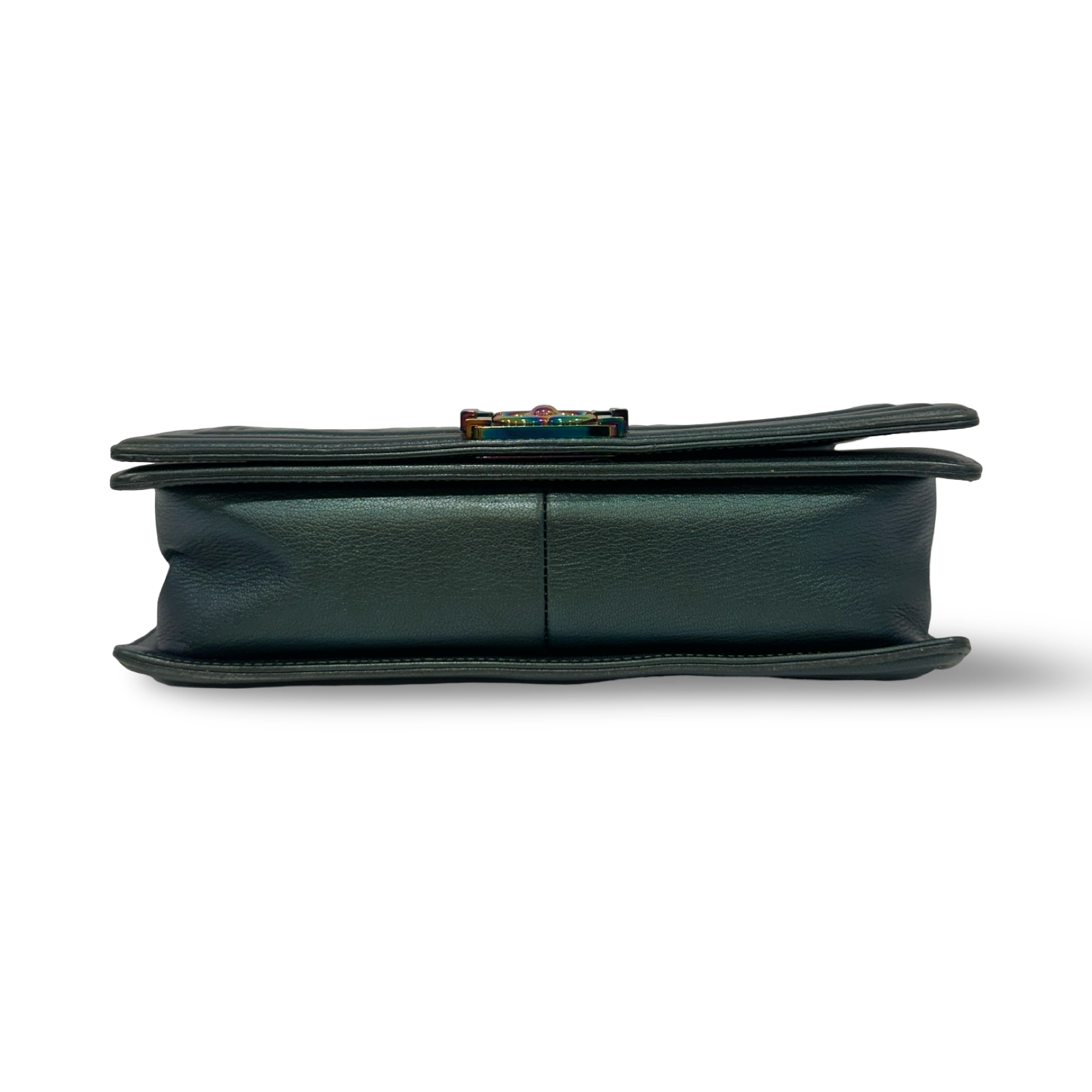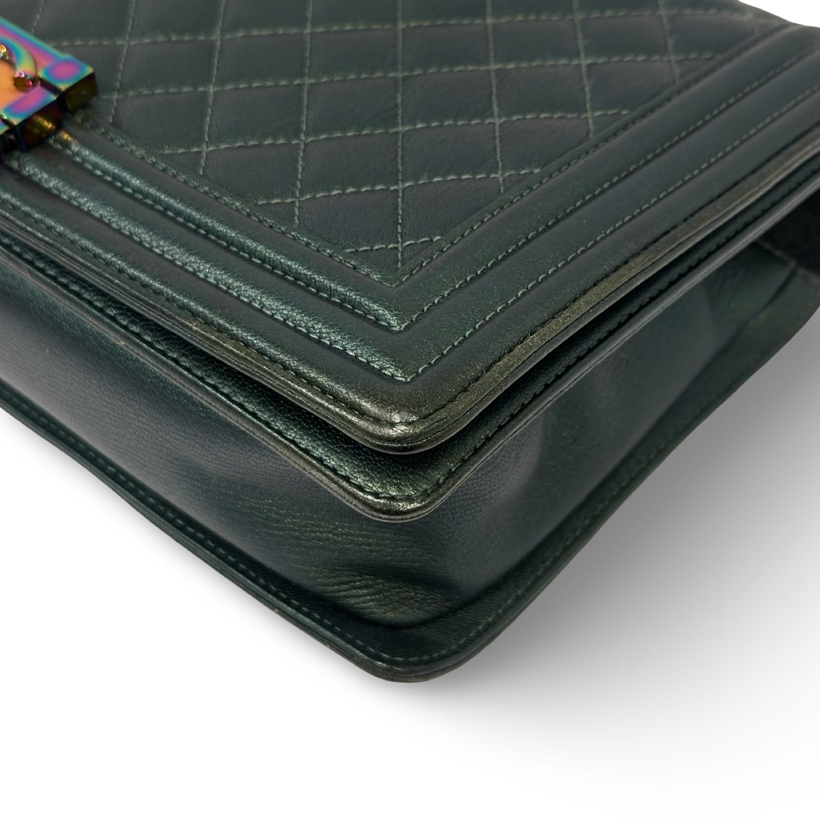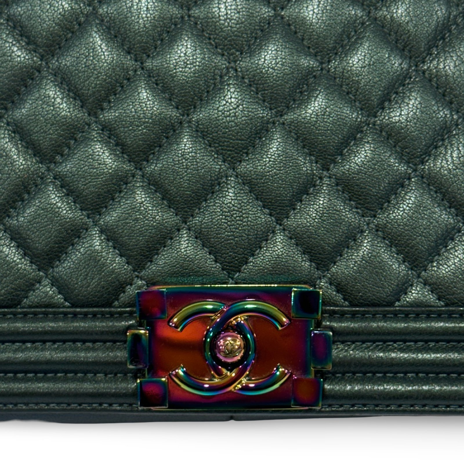 Chanel Quilted Calfskin New Medium Iredescent Boy Bag - GHW / Green