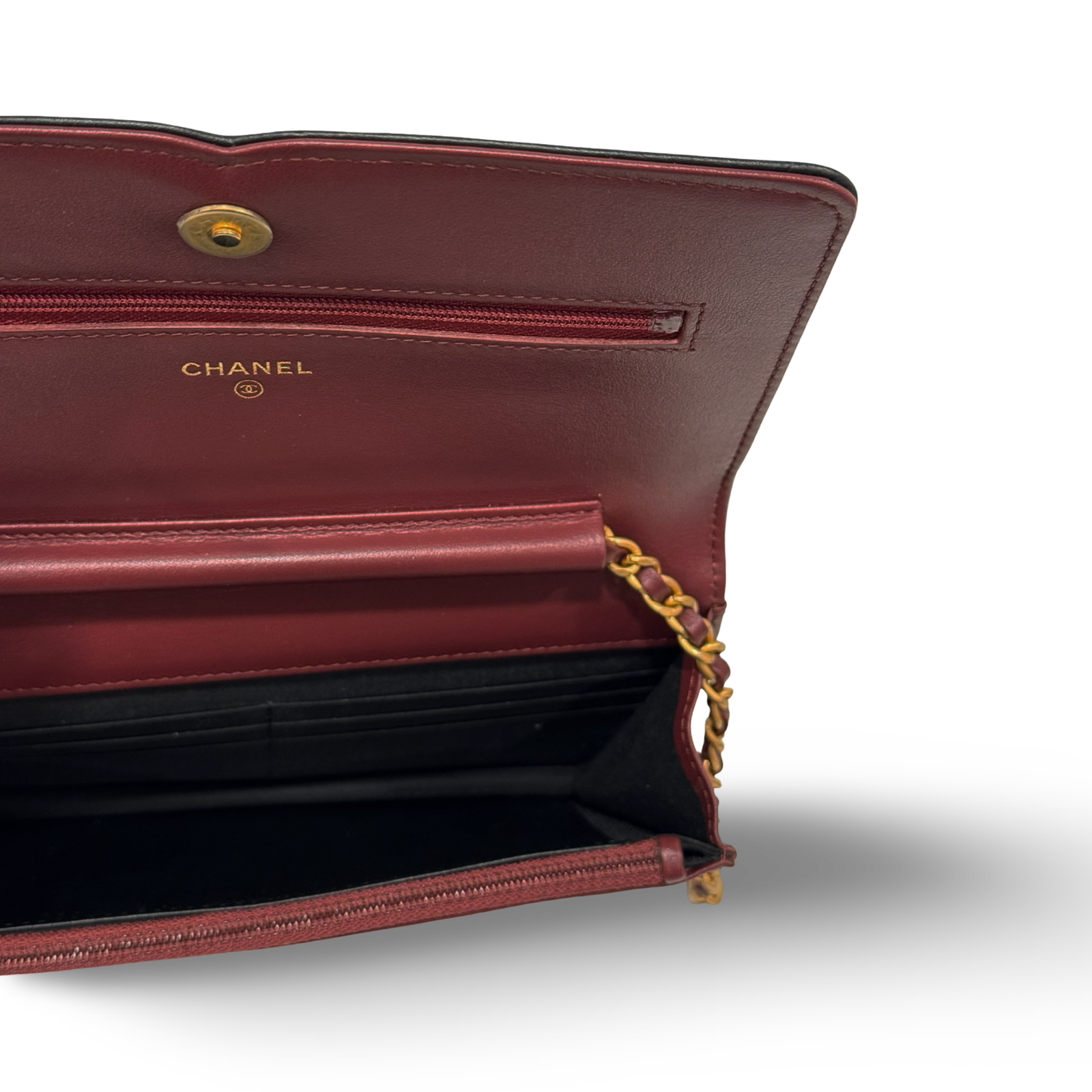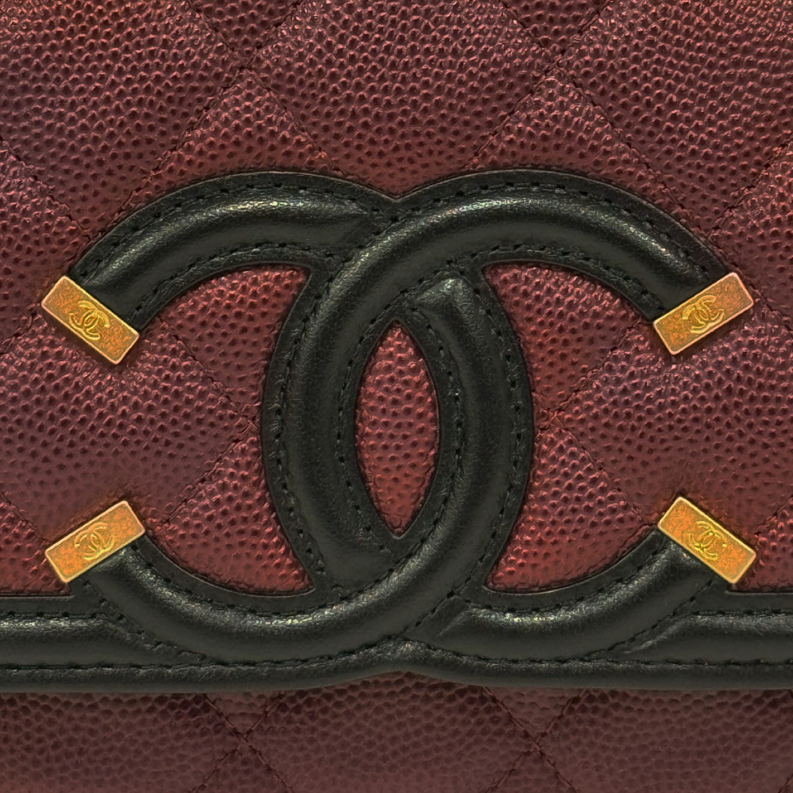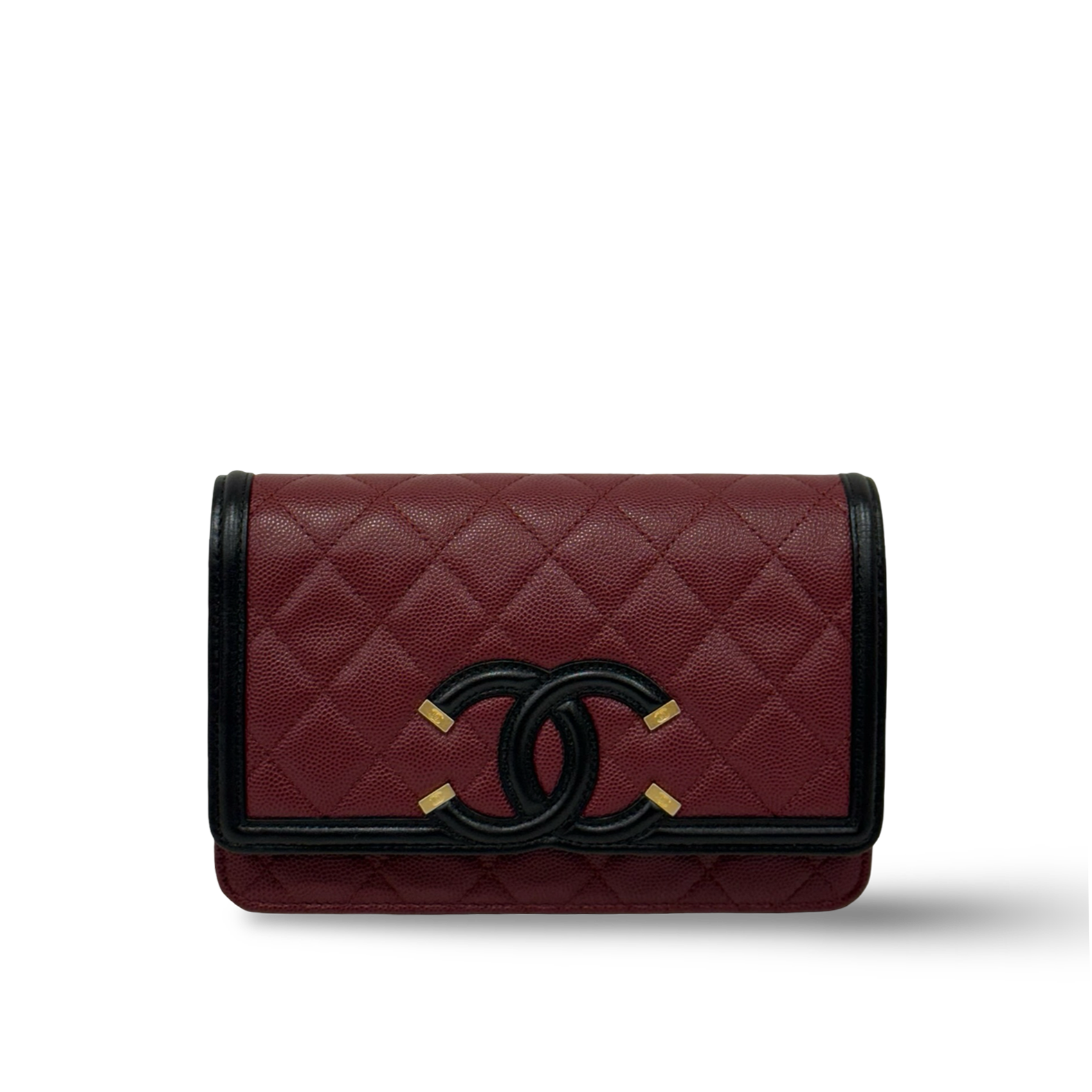 Chanel Quilted Caviar Small Filigree WOC Bag - GHW / Burgundy Black