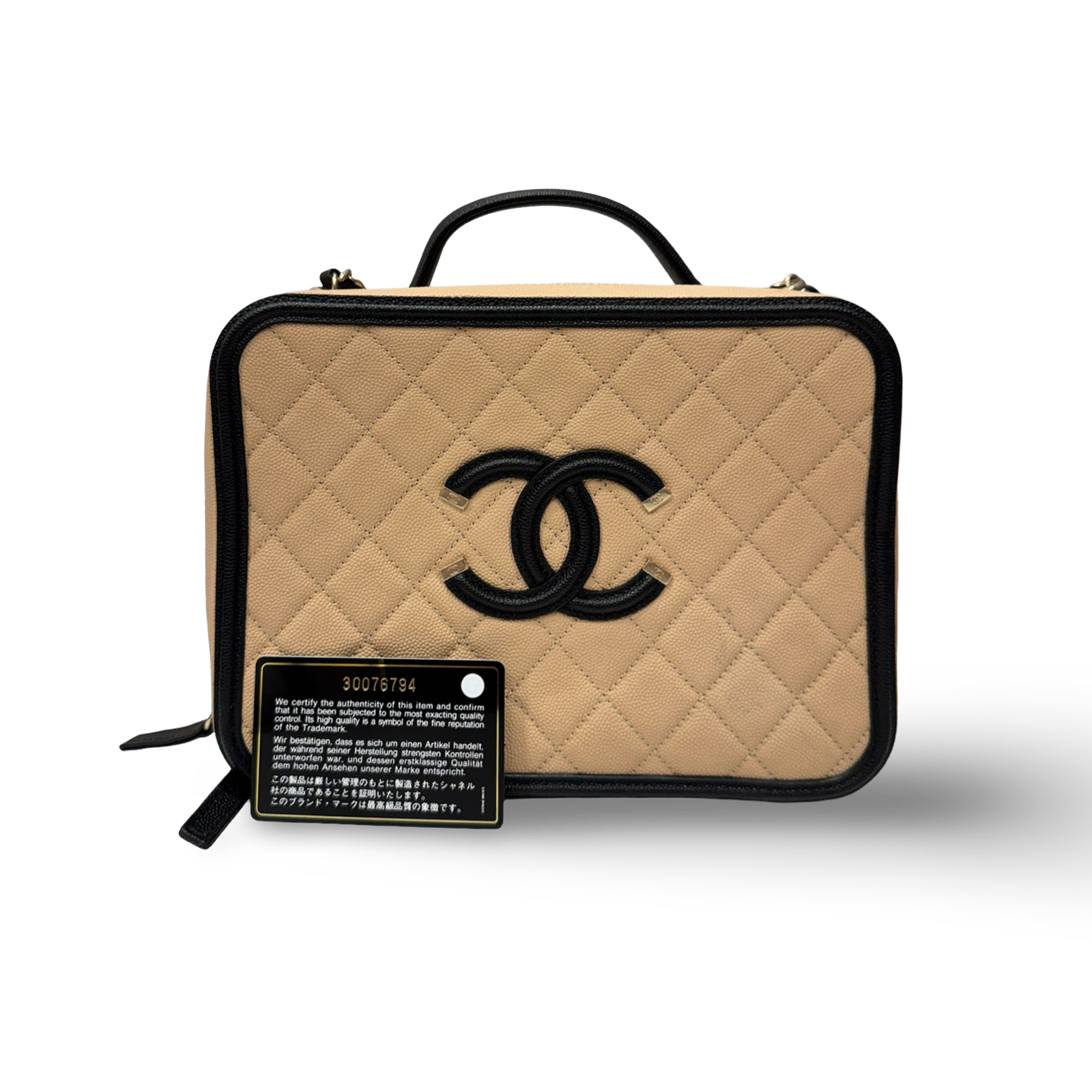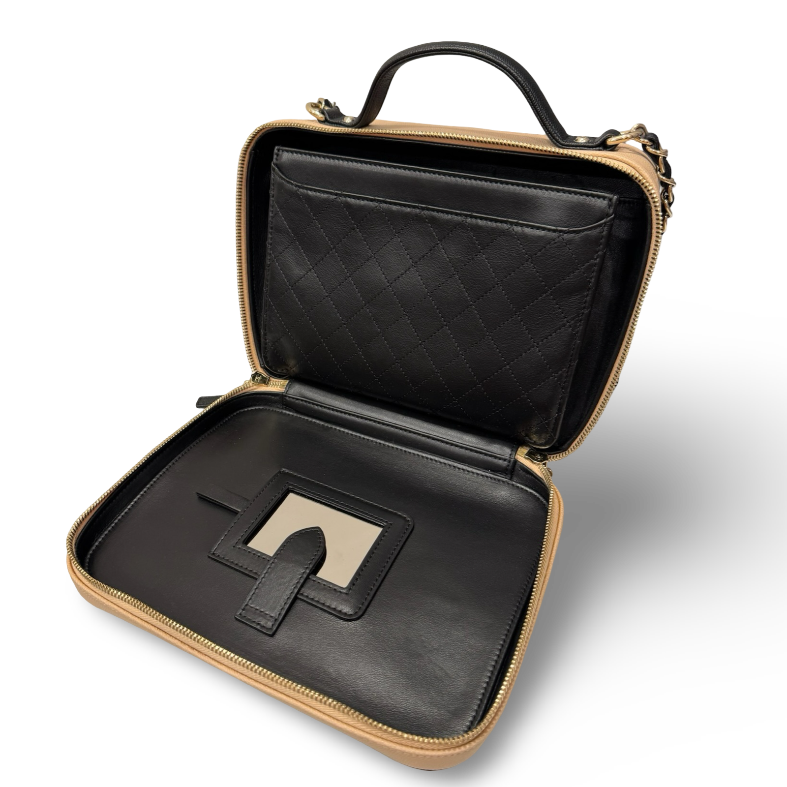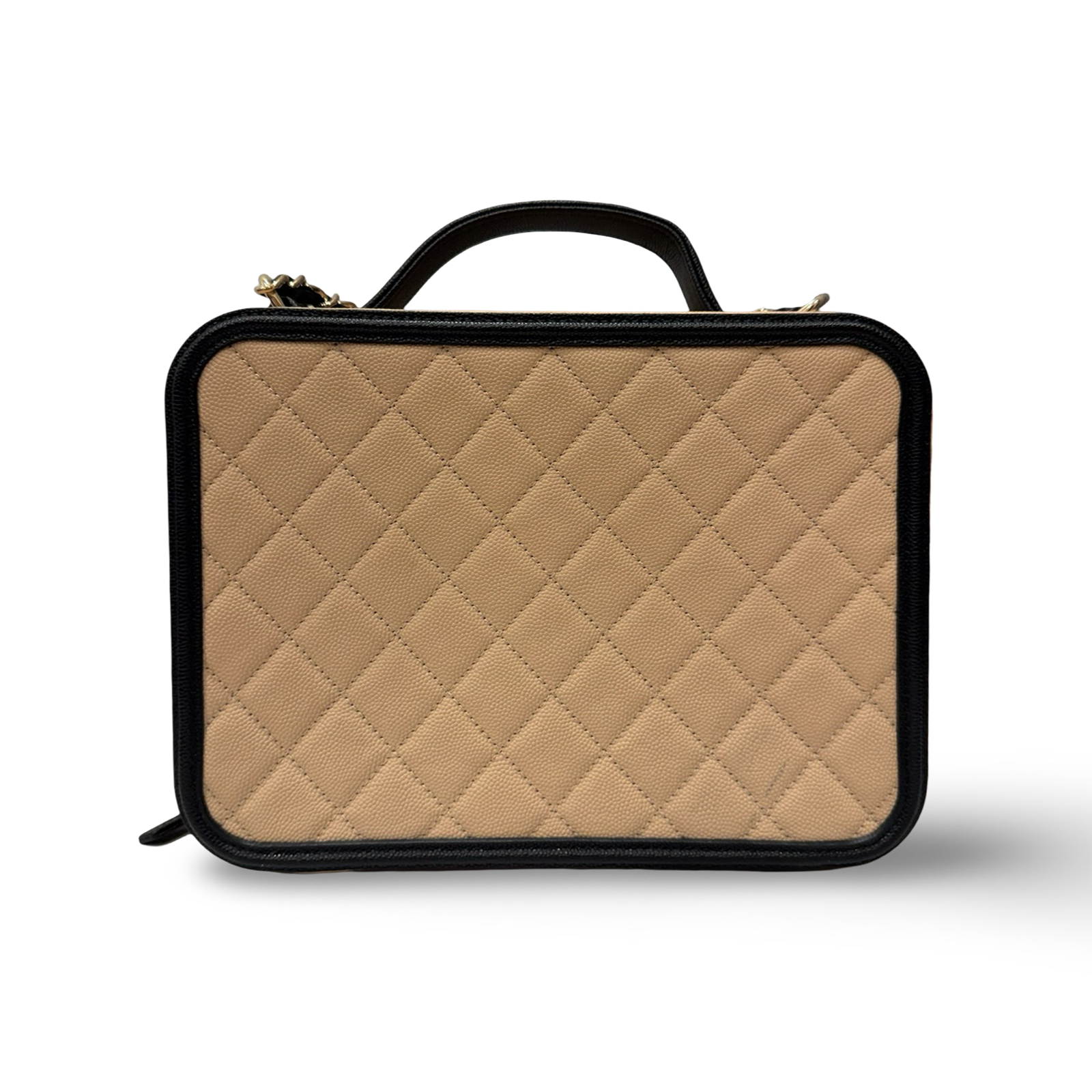 Chanel Quilted Caviar Large Top Handle Vanity Case / Beige Black