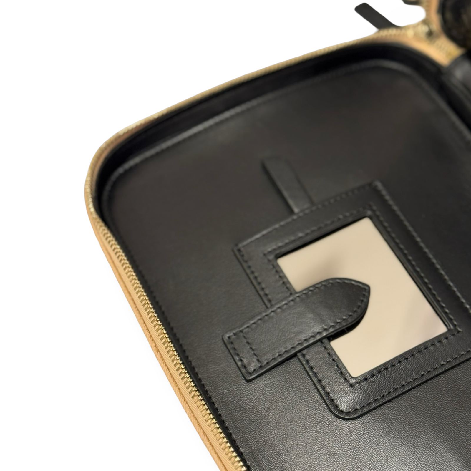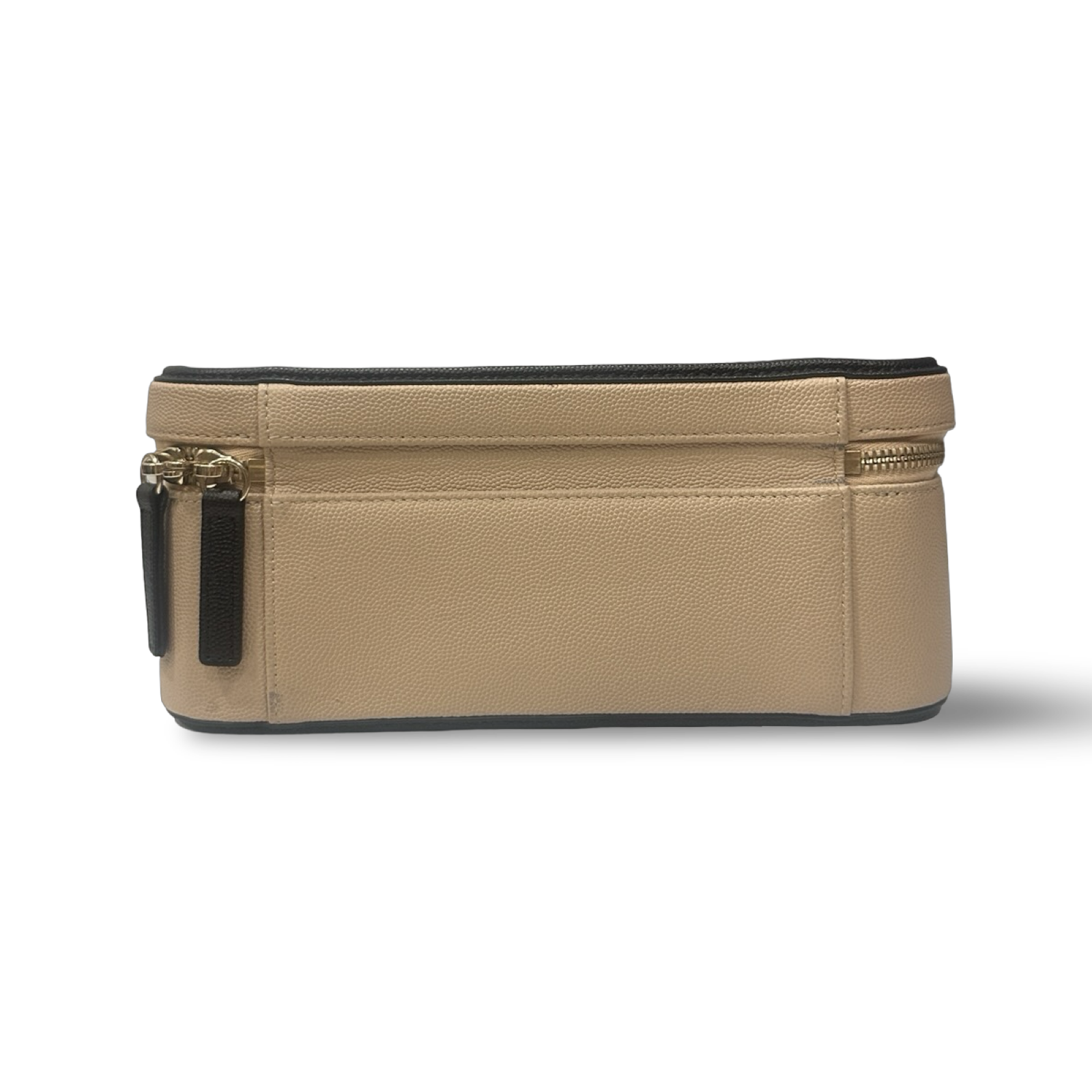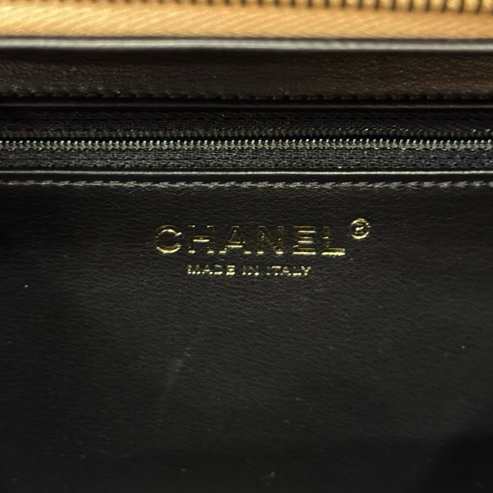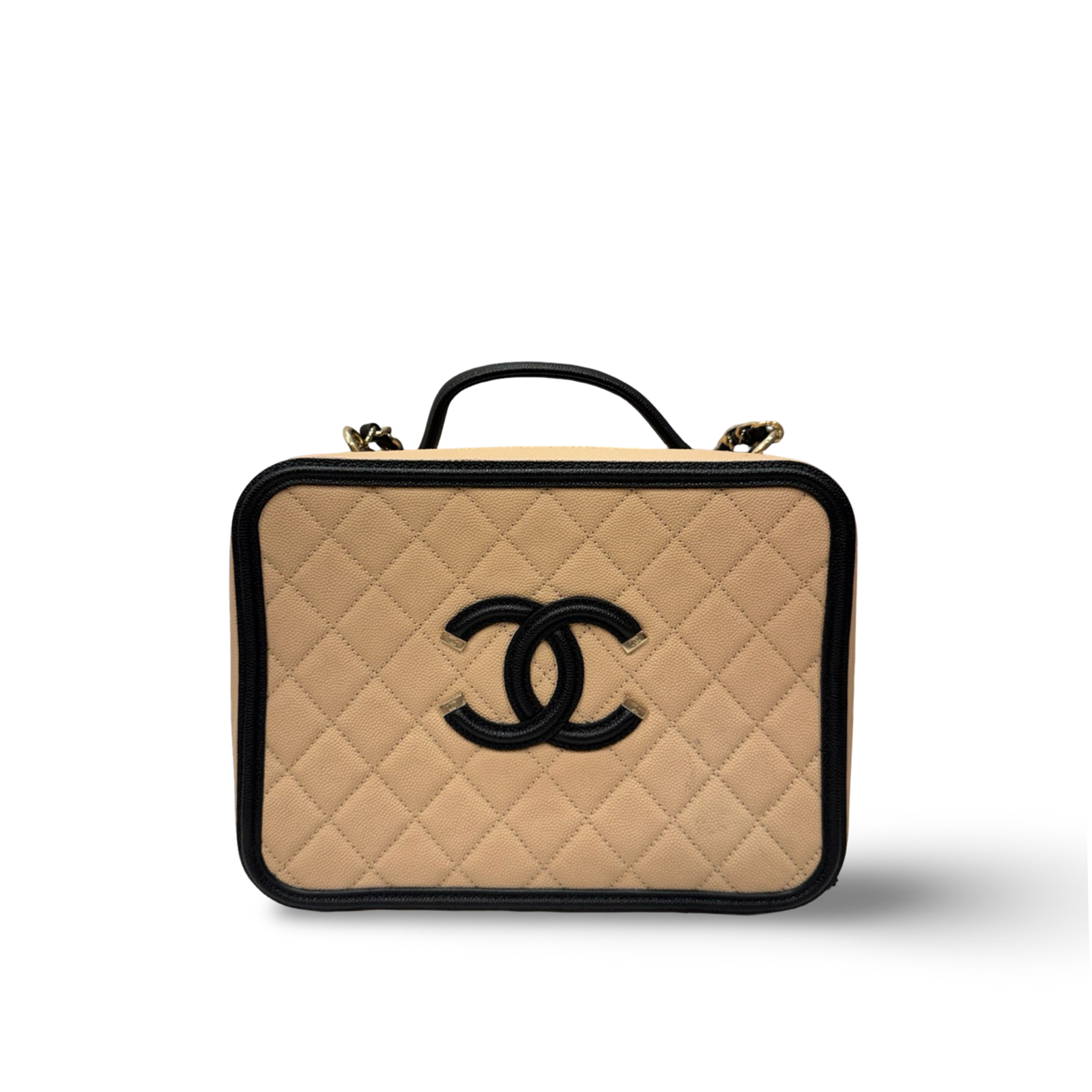 Chanel Quilted Caviar Large Top Handle Vanity Case / Beige Black