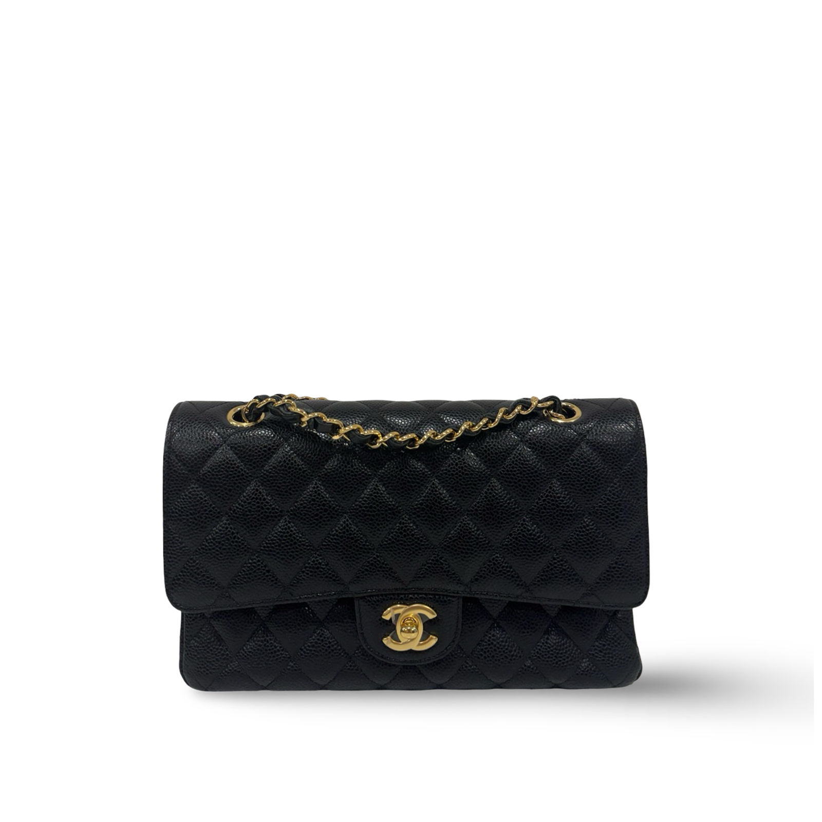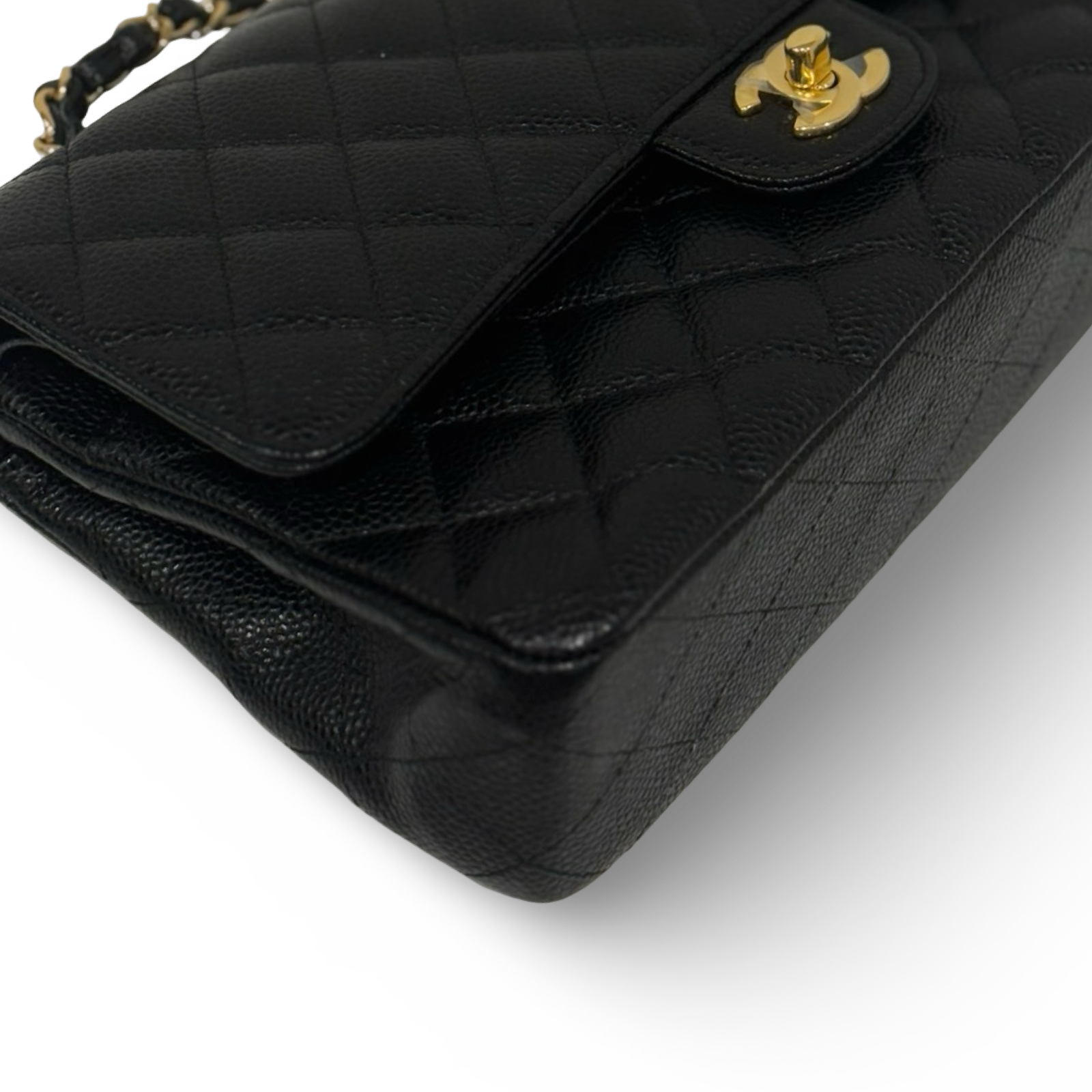 Chanel Quilted Caviar Medium Double Flap - GHW / Black