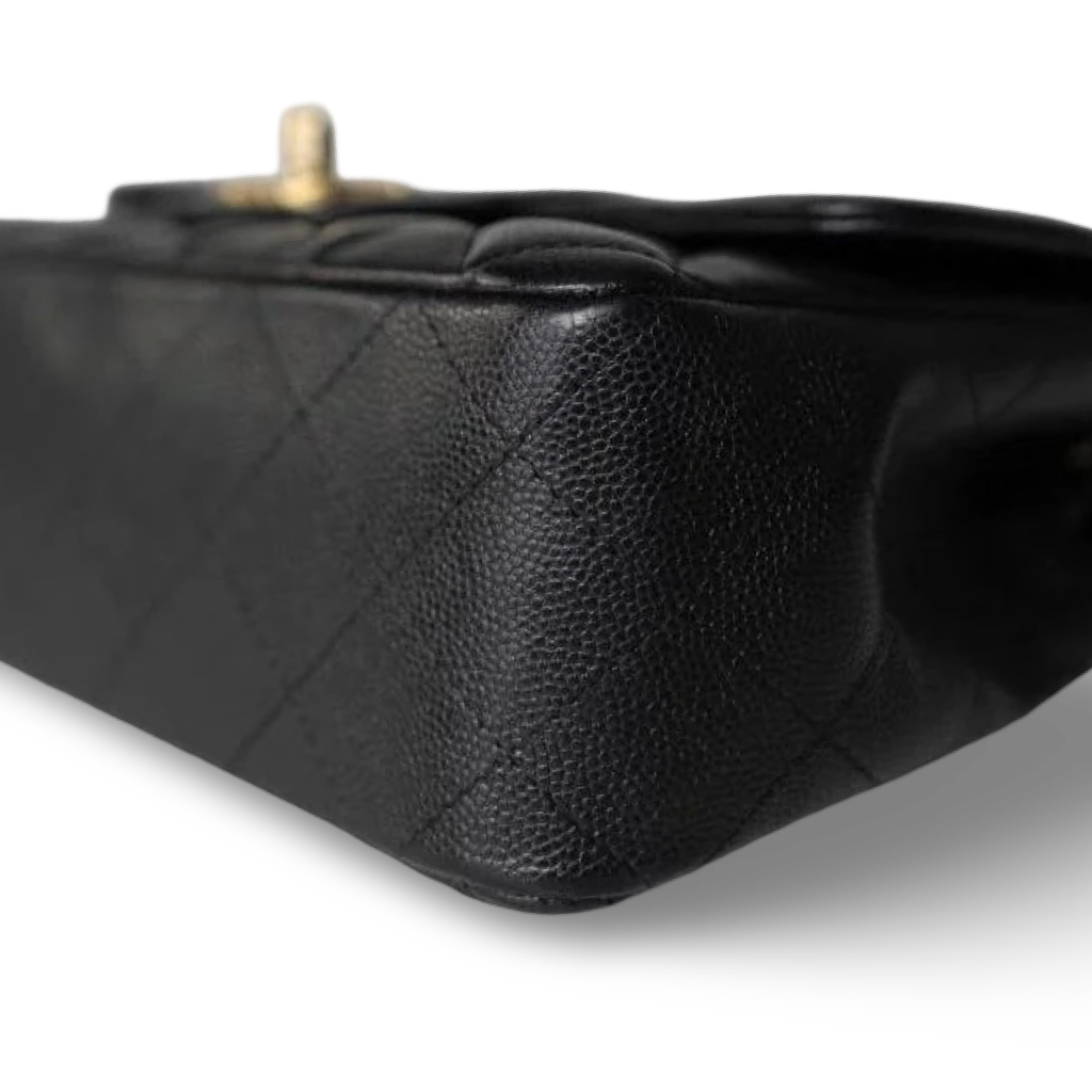 Chanel Quilted Caviar Mini Rectangular Single Flap Bag - GHW / Black