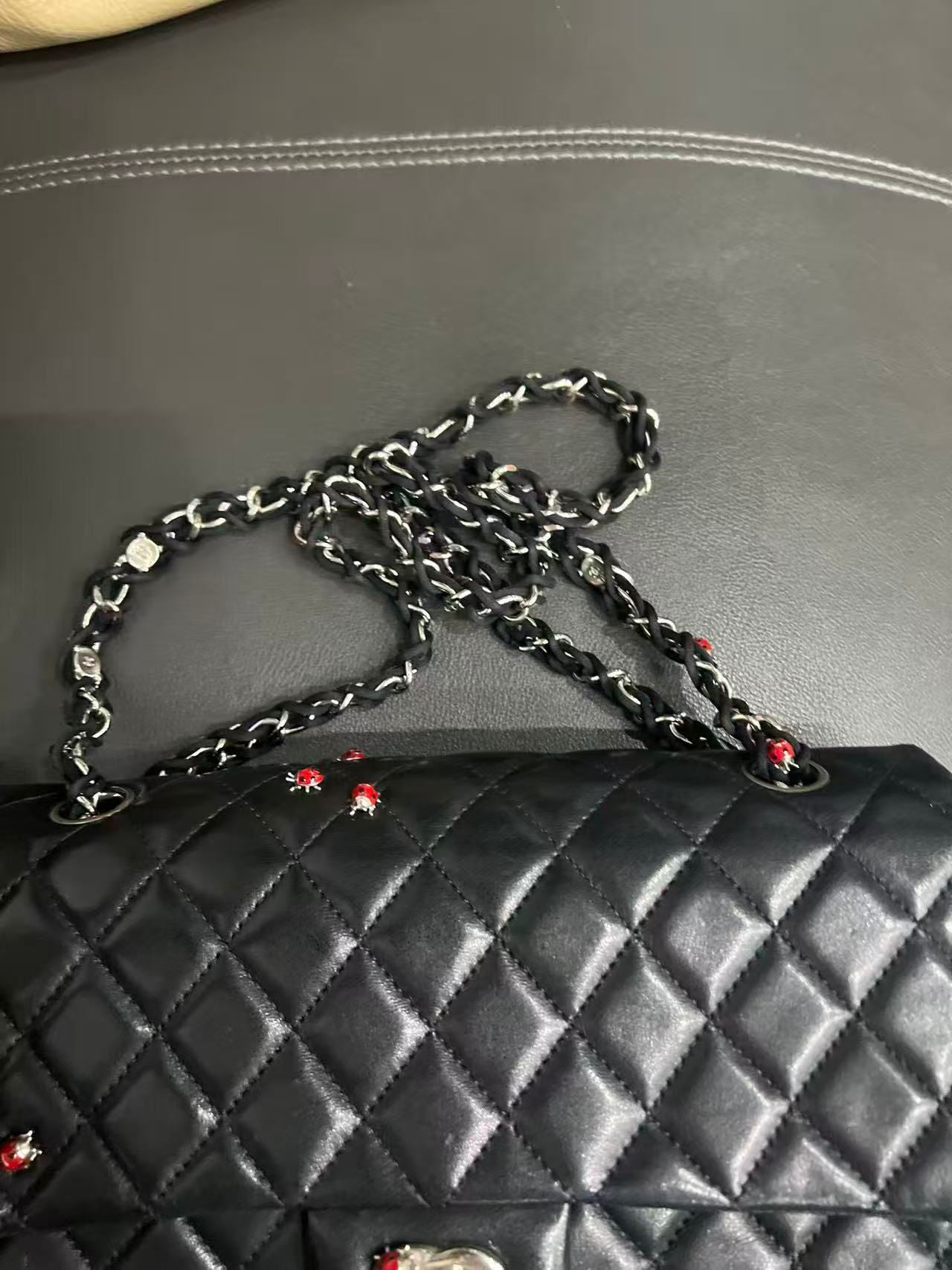 Chanel Quilted Lambskin Ladybug Mini Rectangular Single Flap Bag - SHW / Black