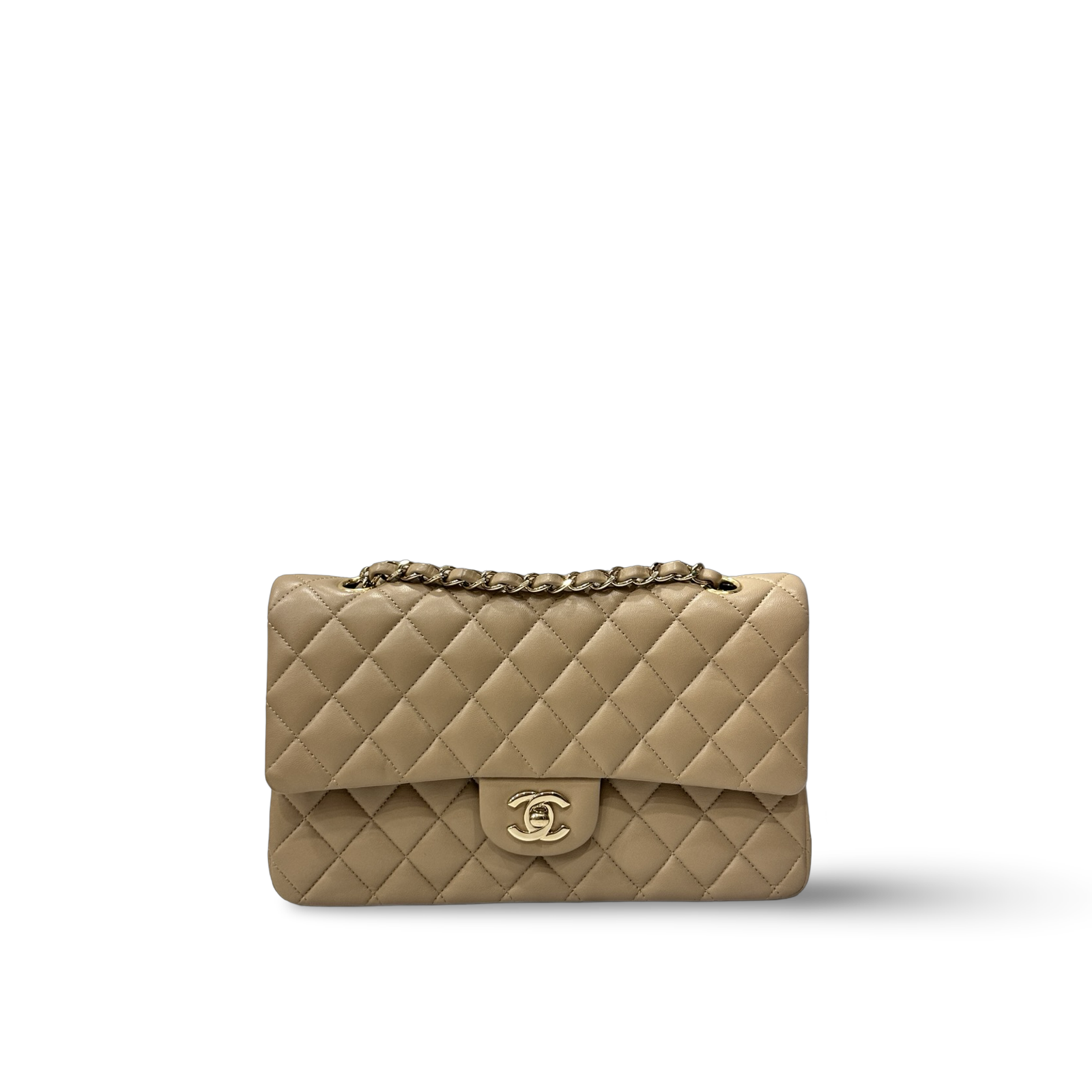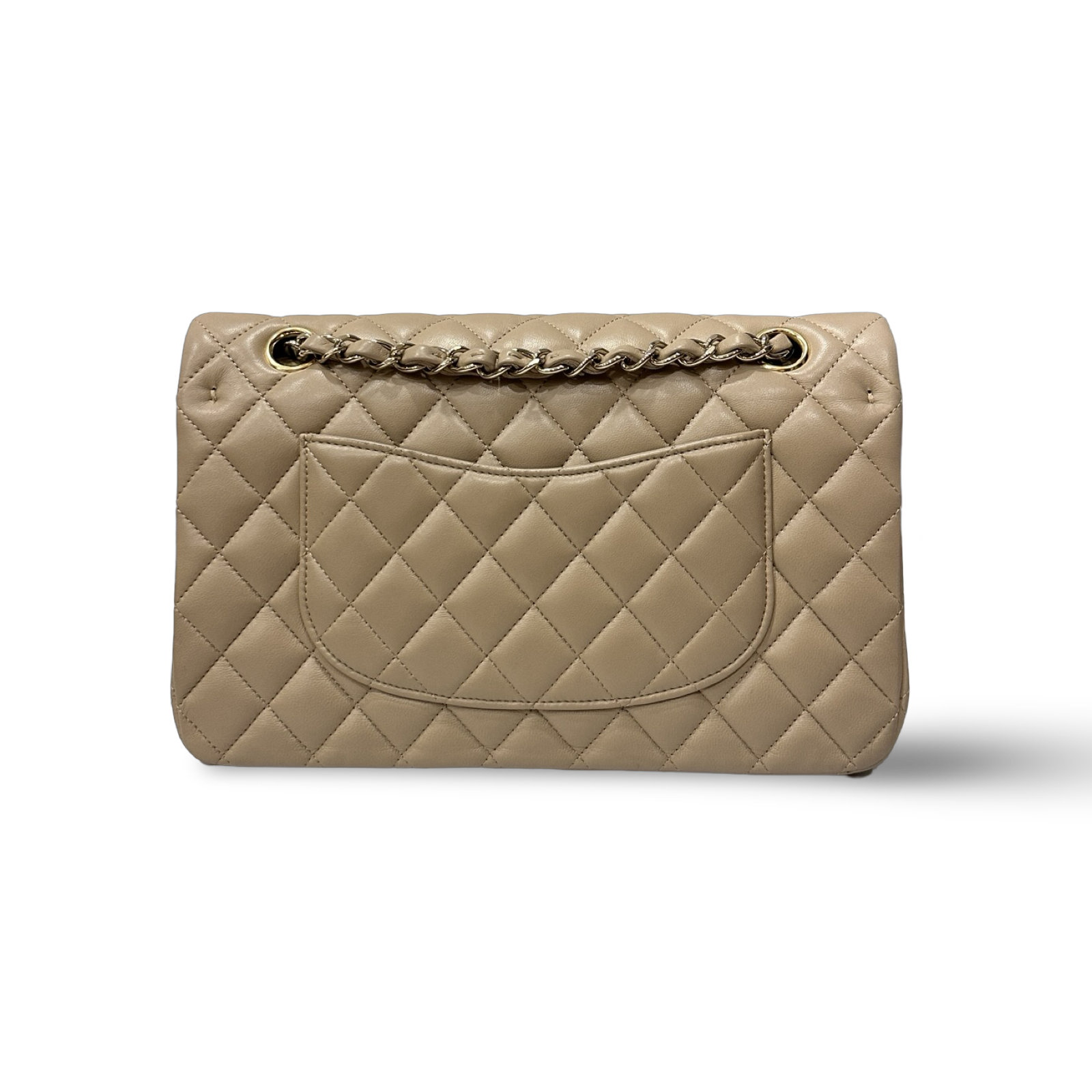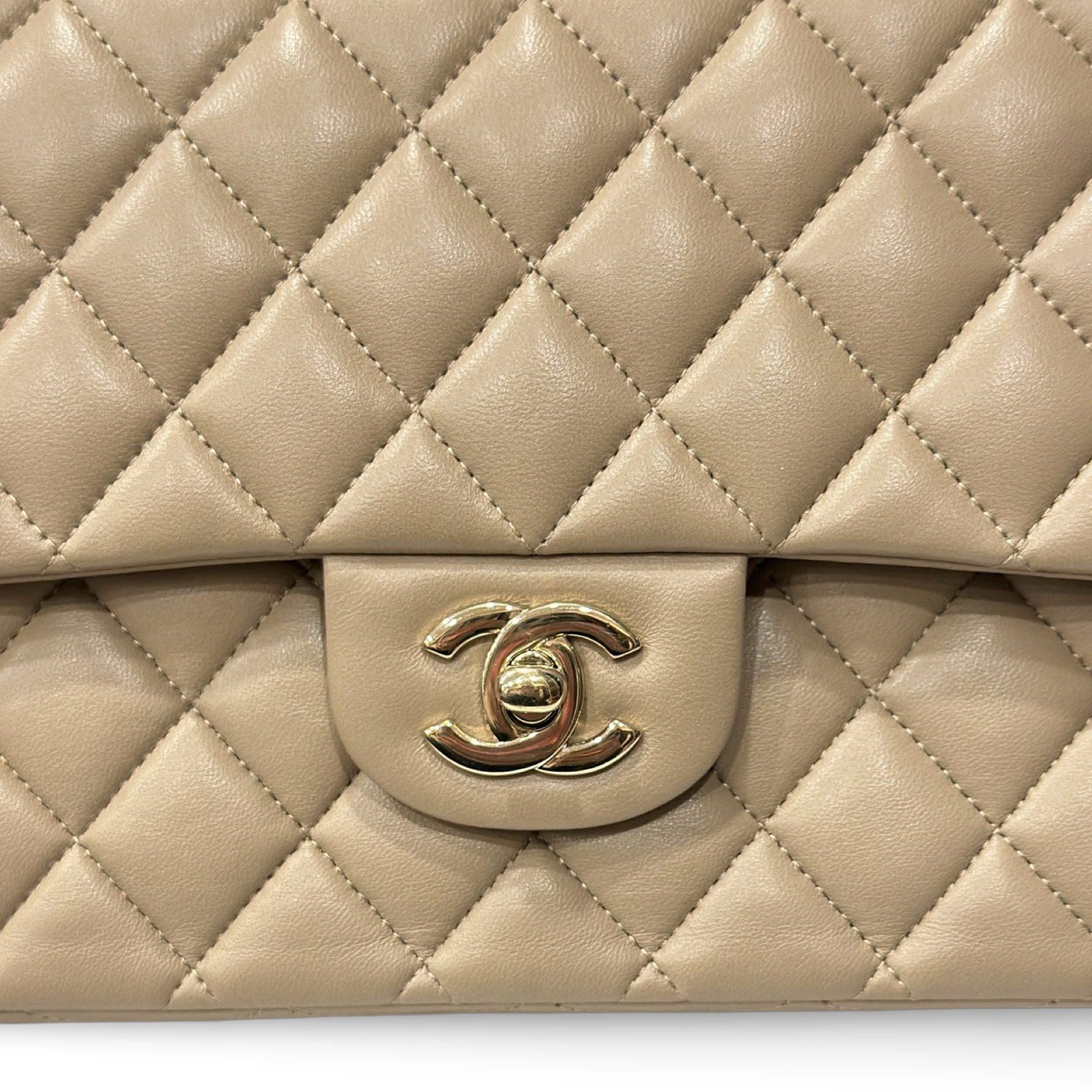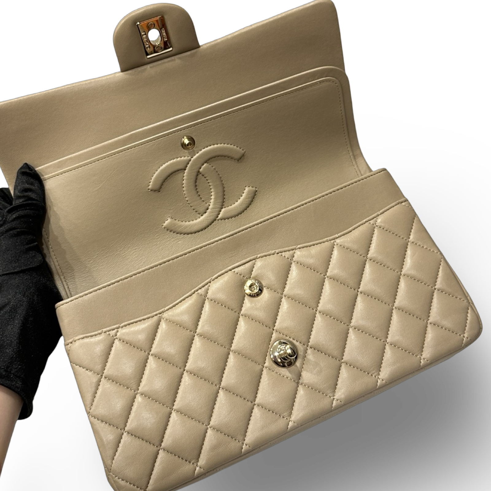 Chanel Quilted Lambskin Medium Double Flap - GHW / Dark Beige