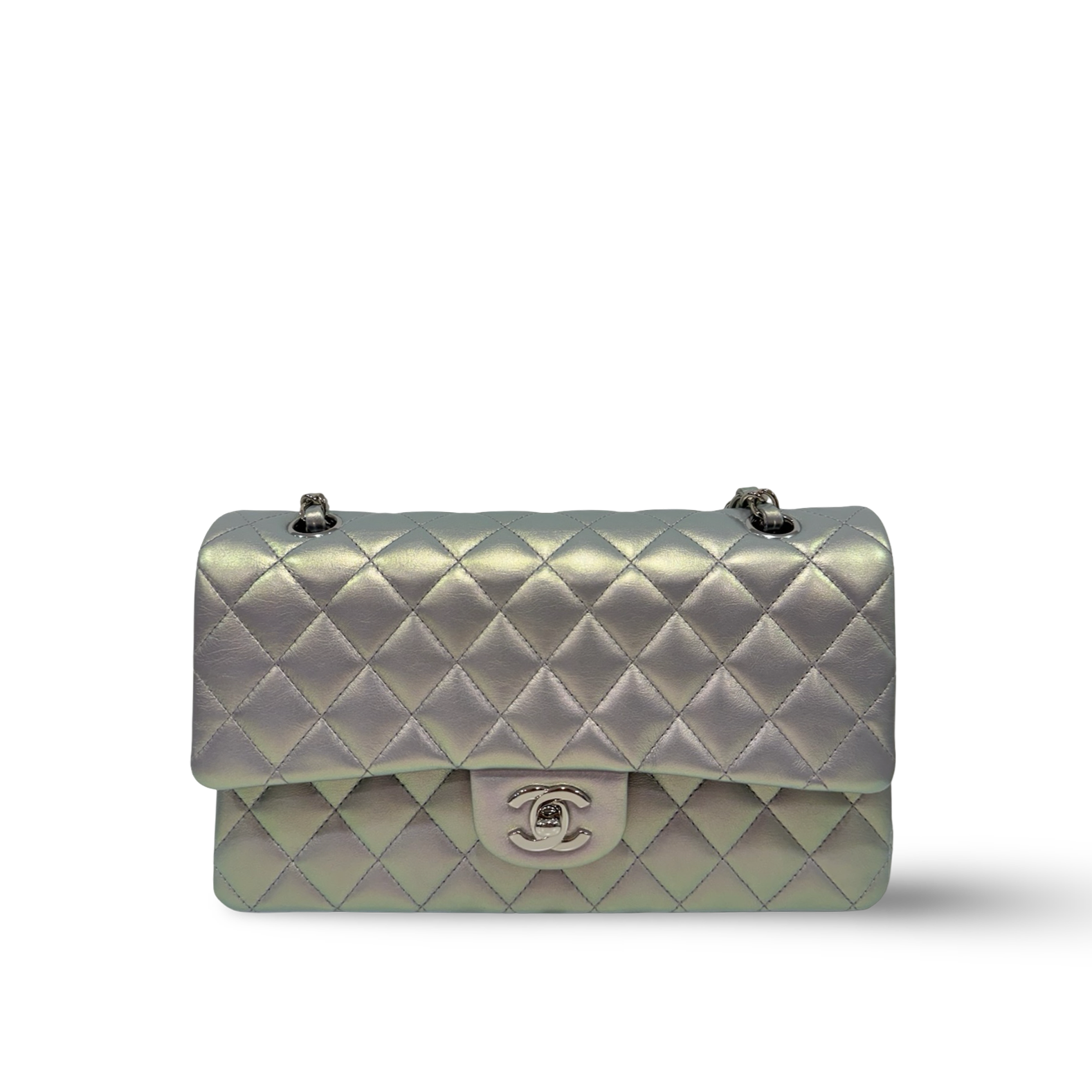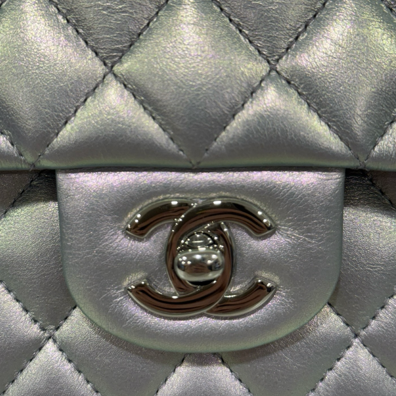 Chanel Quilted Lambskin Medium Iridescent Double Flap - SHW/ Sliver