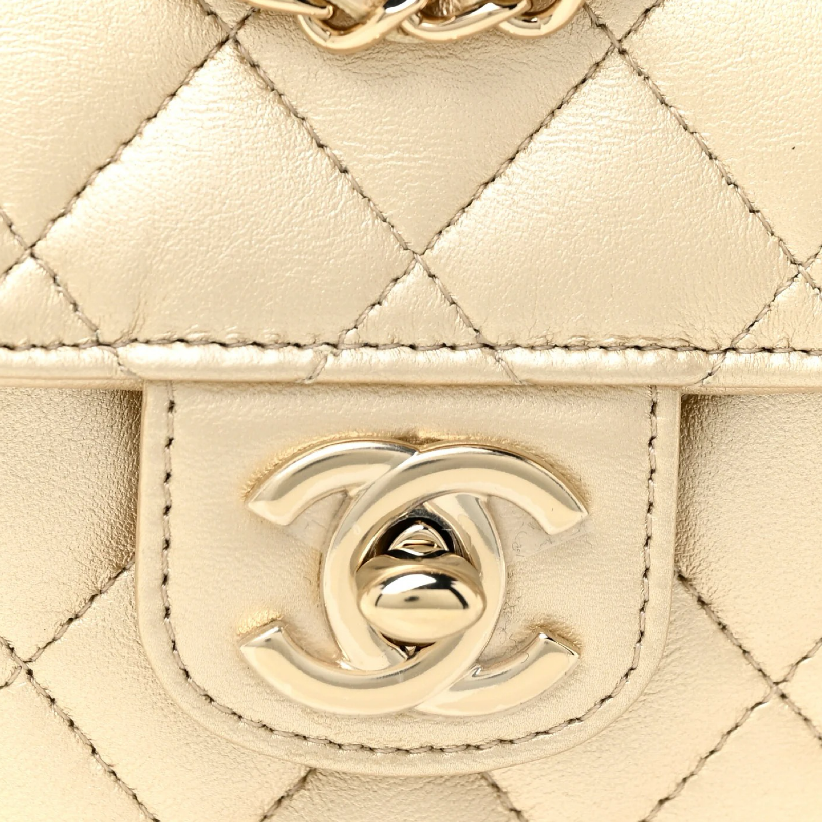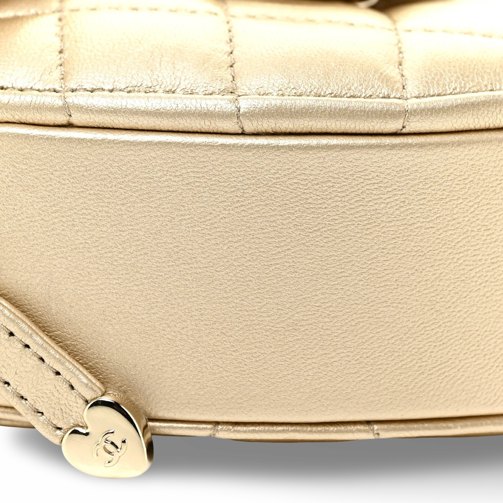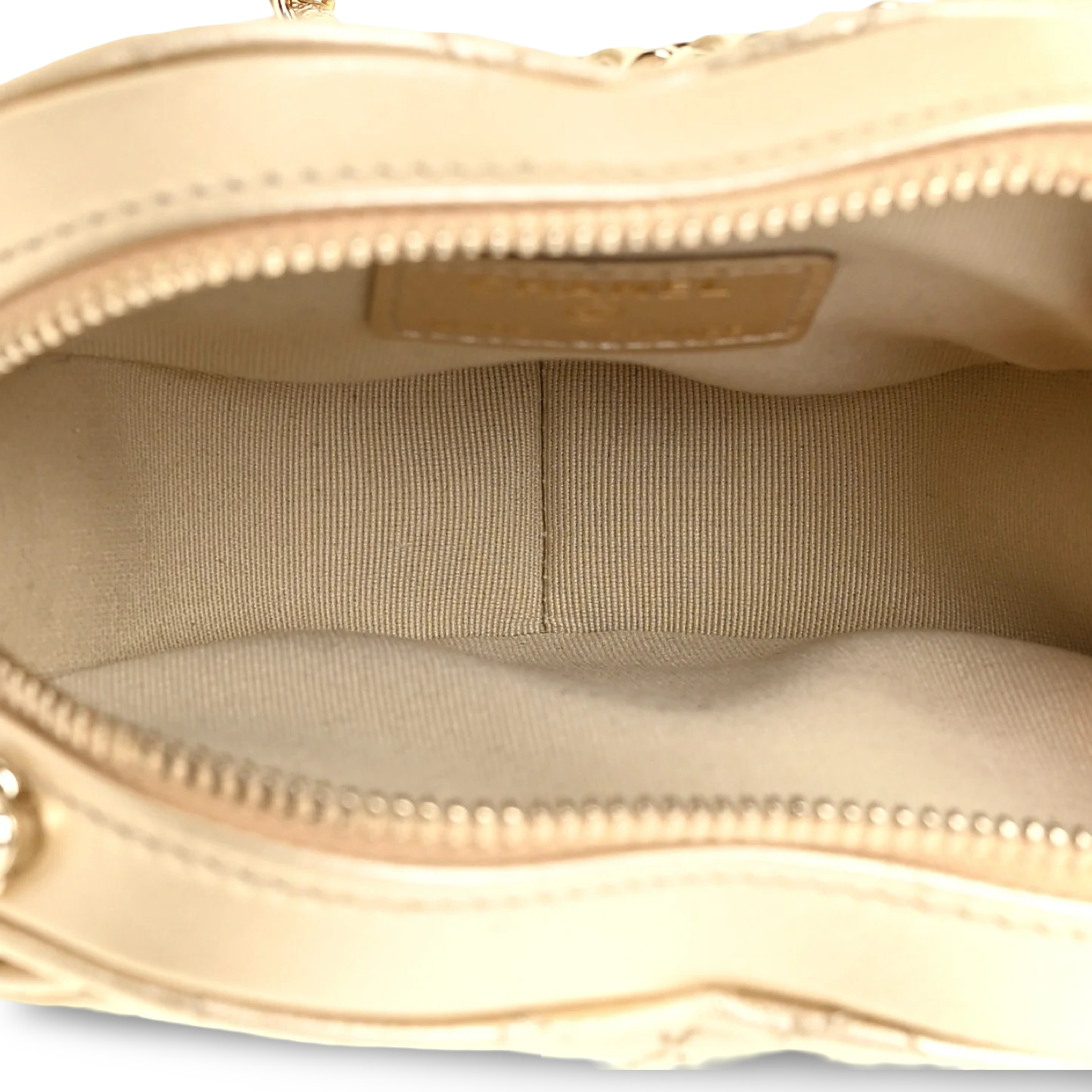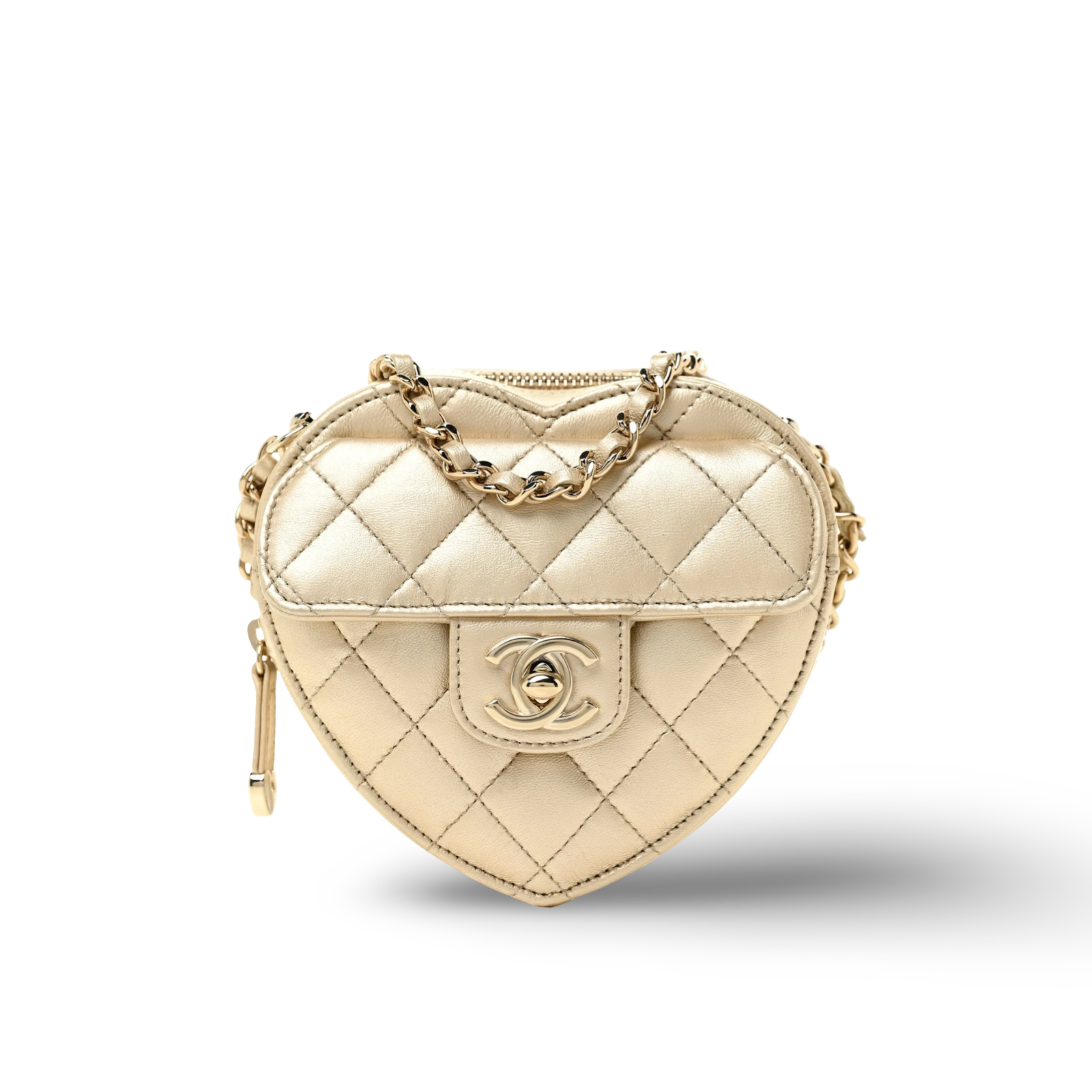 Chanel Quilted Lambskin Metallic CC In Love Heart Clutch With Chain - GHW / Gold