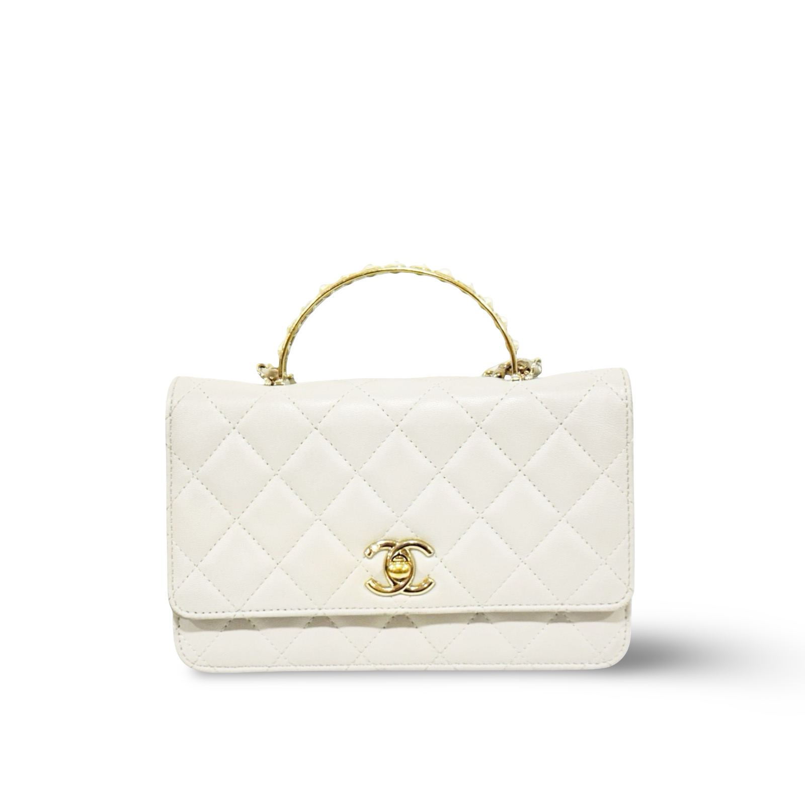Chanel Quilted Lambskin Pearl Top Handle WOC Bag - SHW / White
