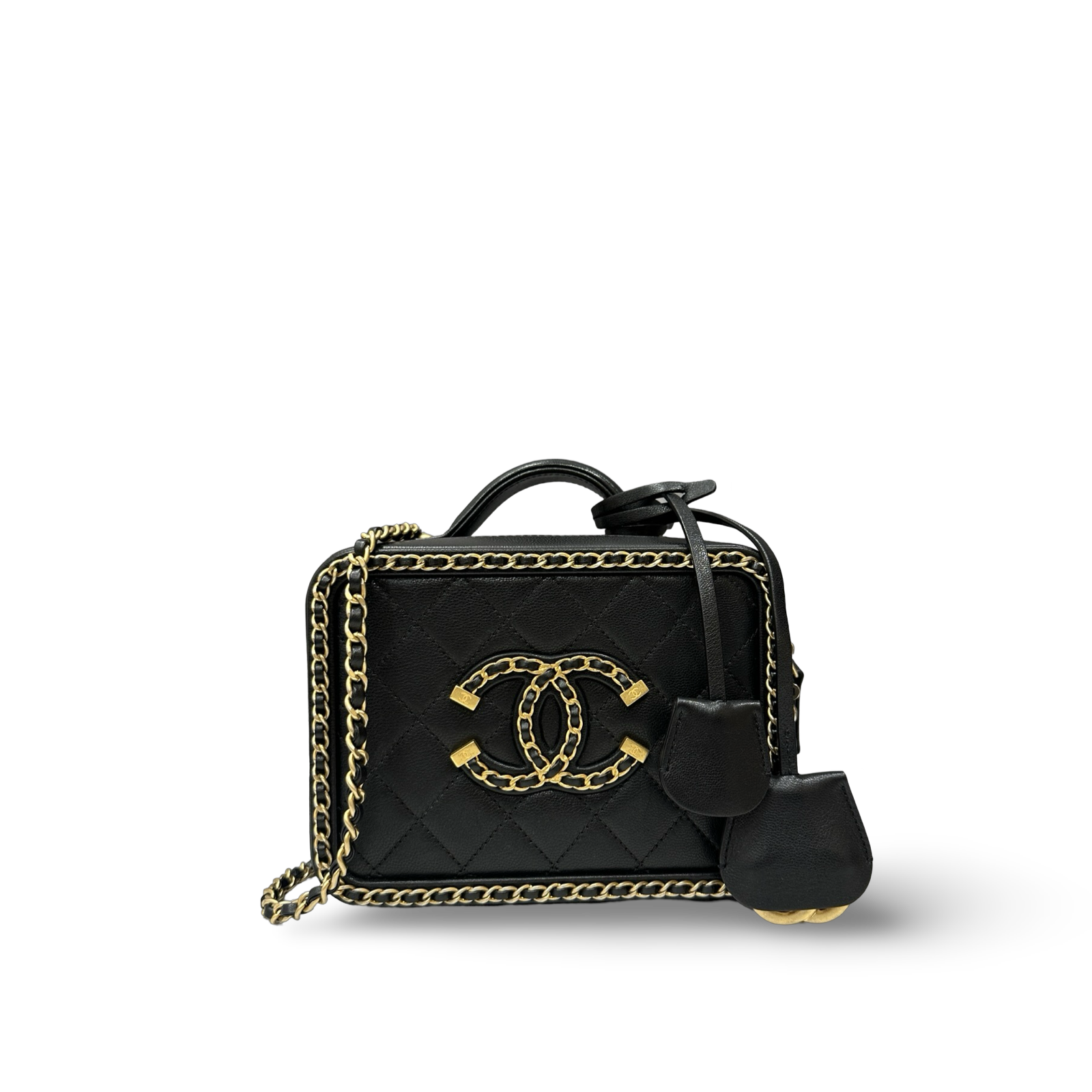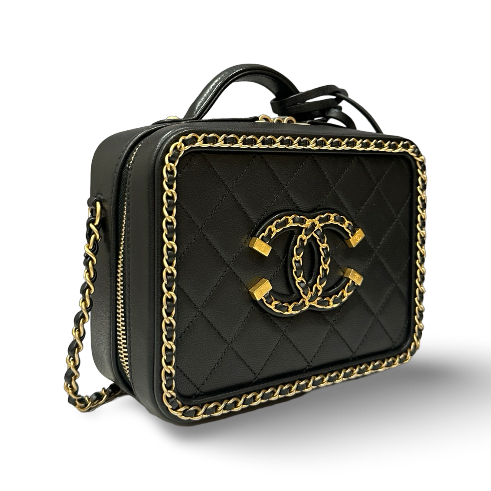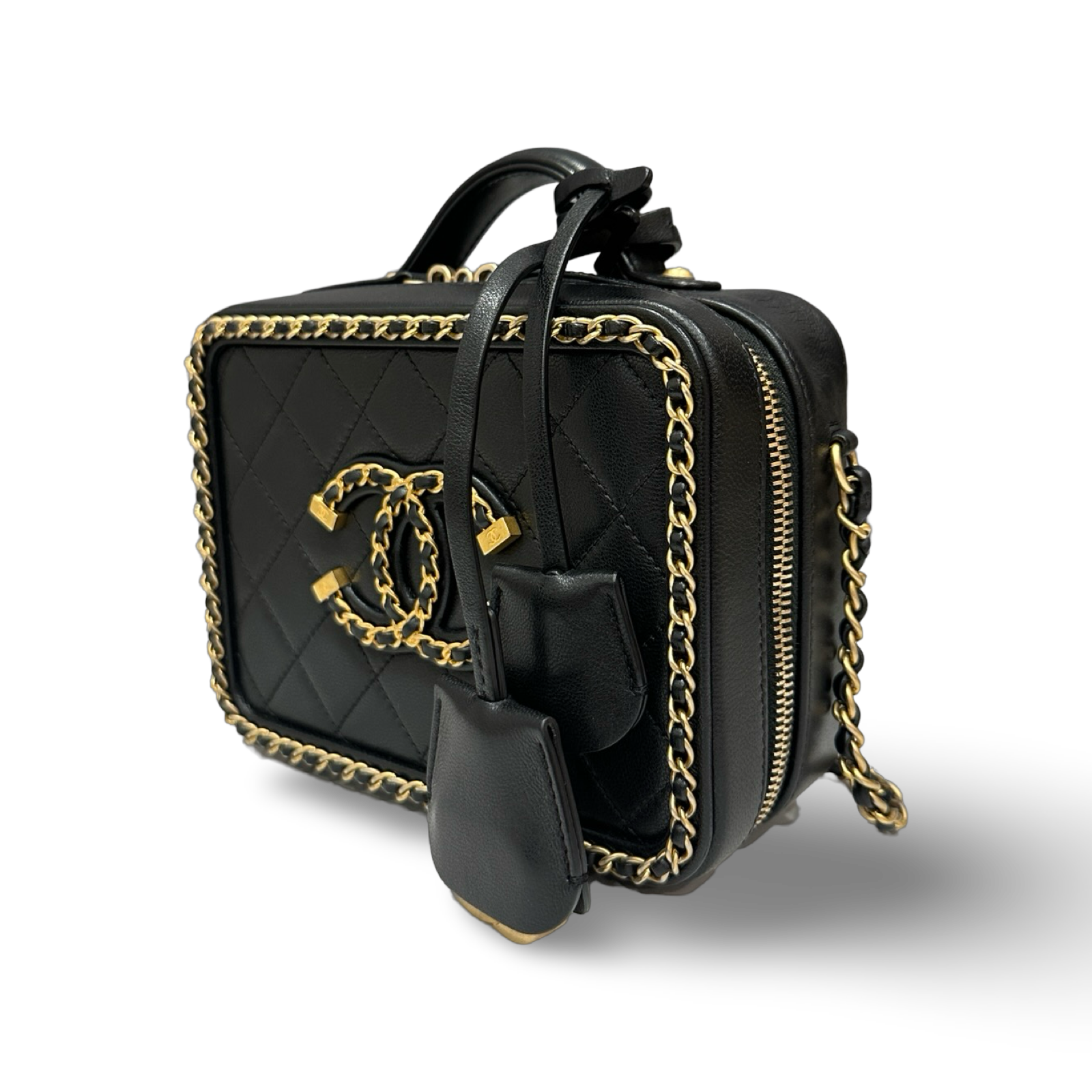 Chanel Quilted Lambskin Medium CC Filigree Chain Around Vanity Case - GHW / Black