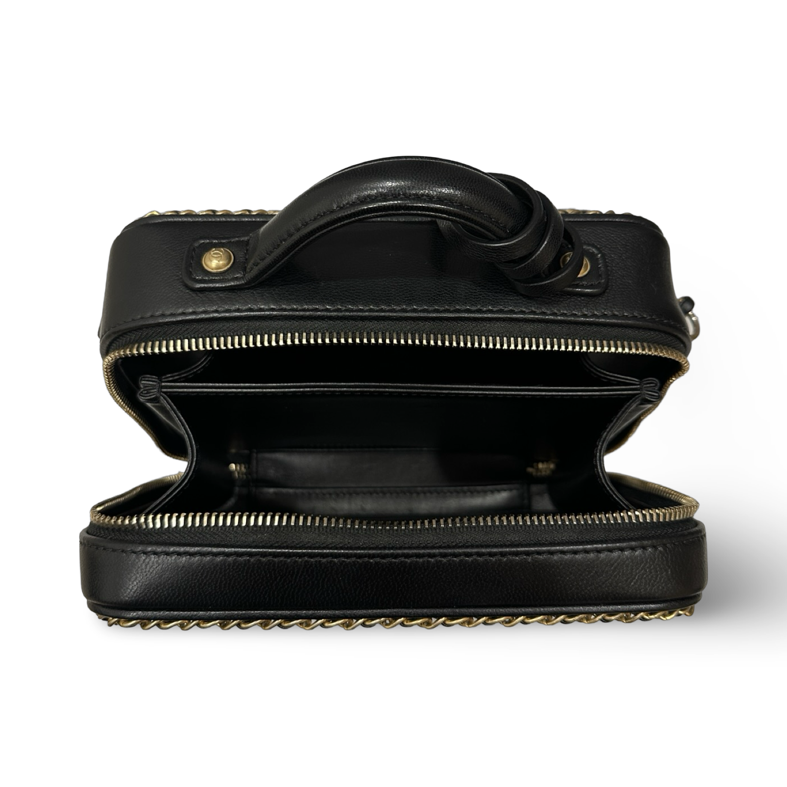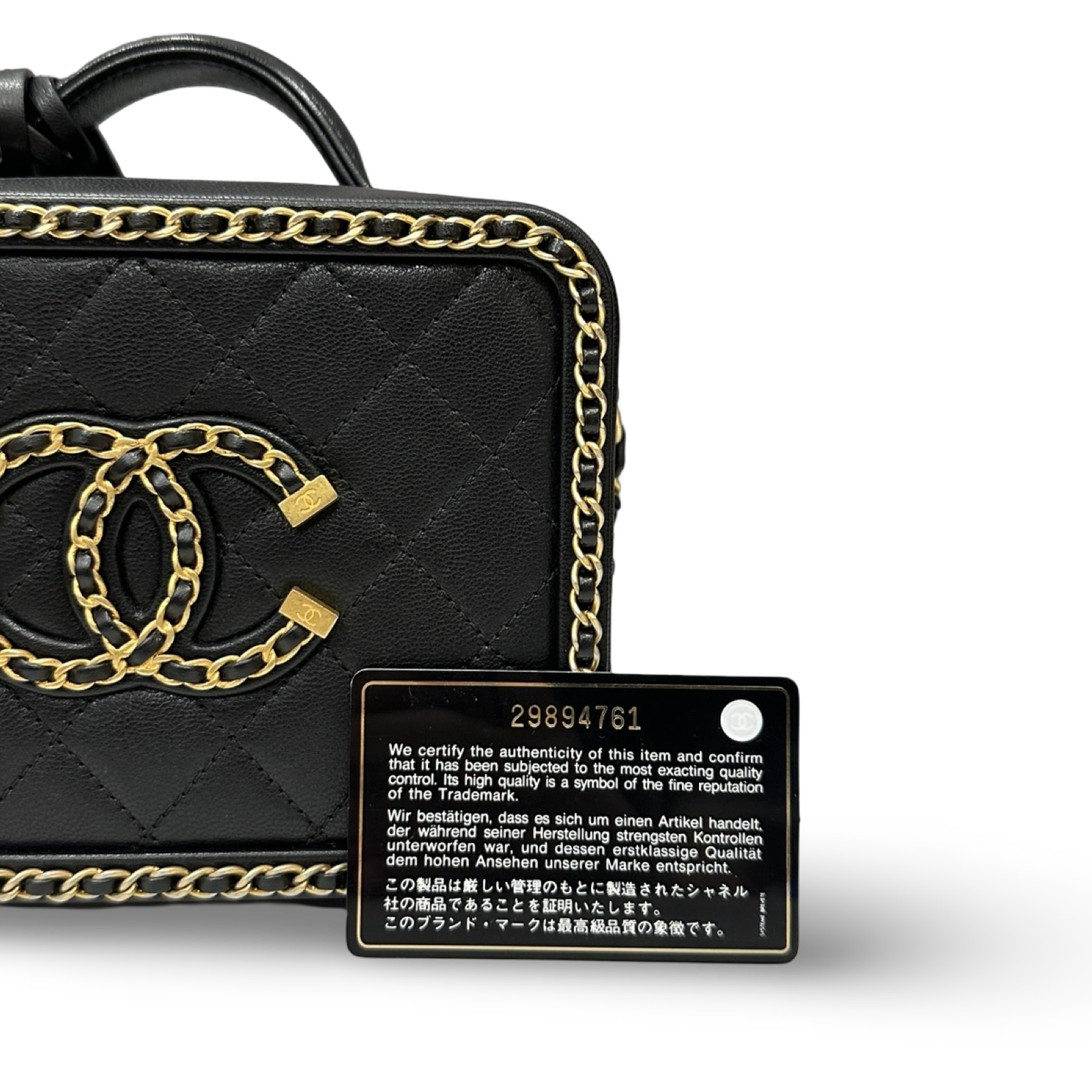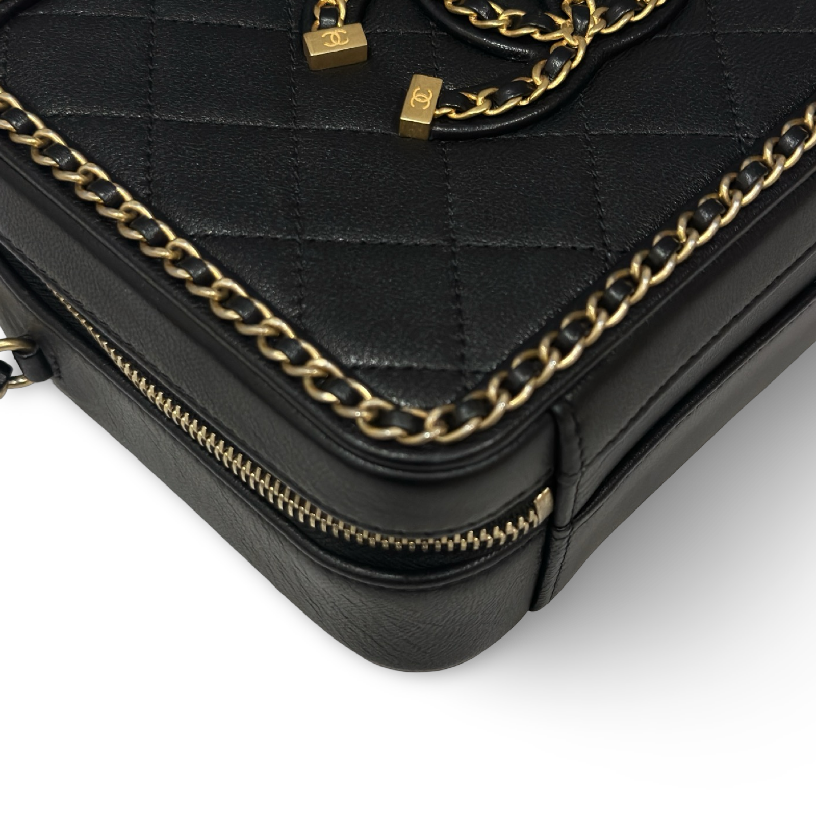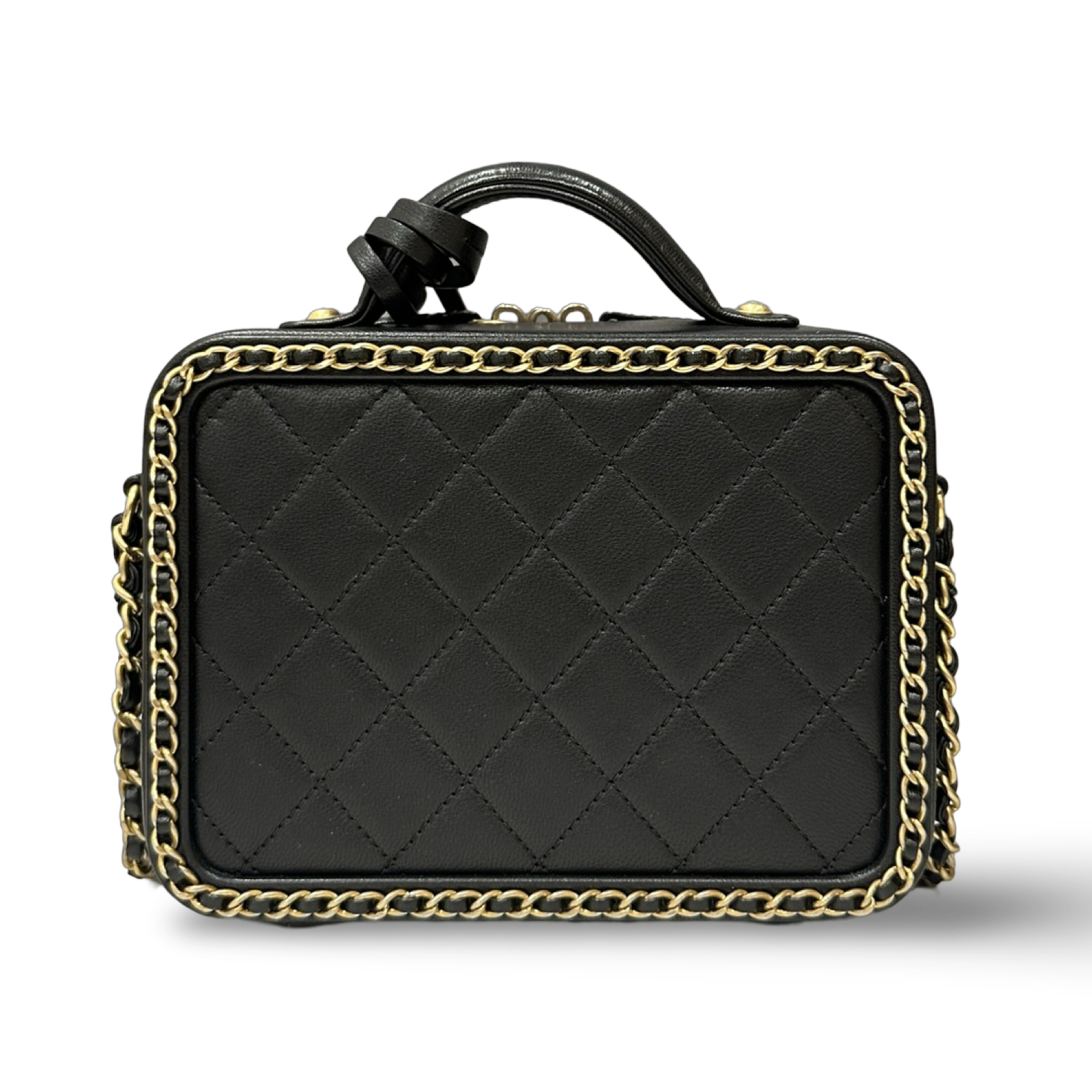Chanel Quilted Lambskin Medium CC Filigree Chain Around Vanity Case - GHW / Black