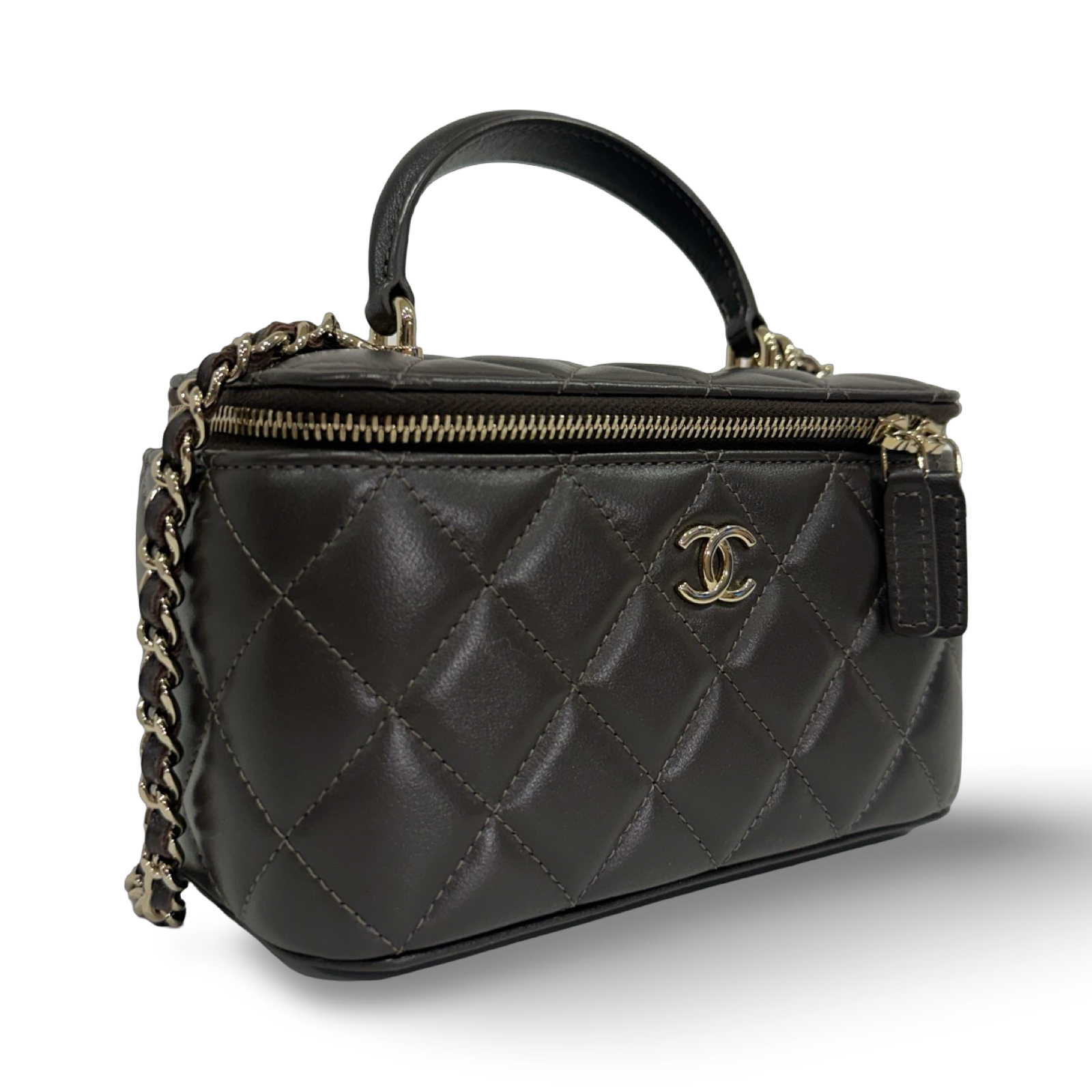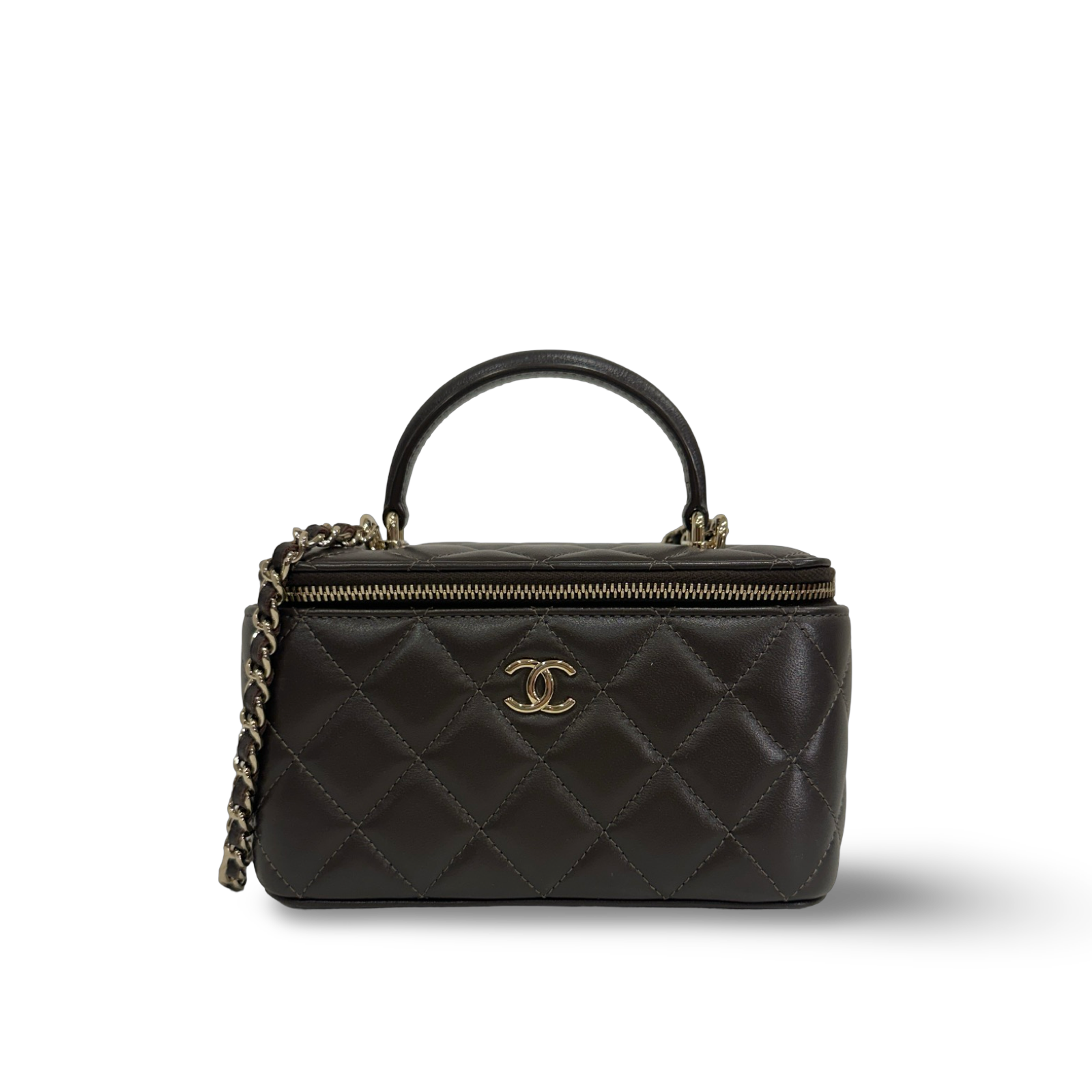 Chanel Quilted Lambskin Small Tophandle Vanity Box - GHW / Brown