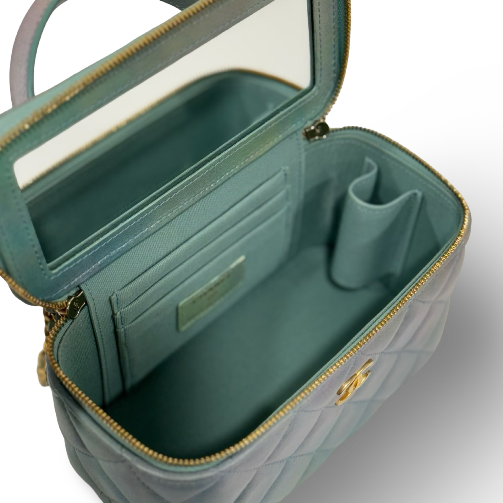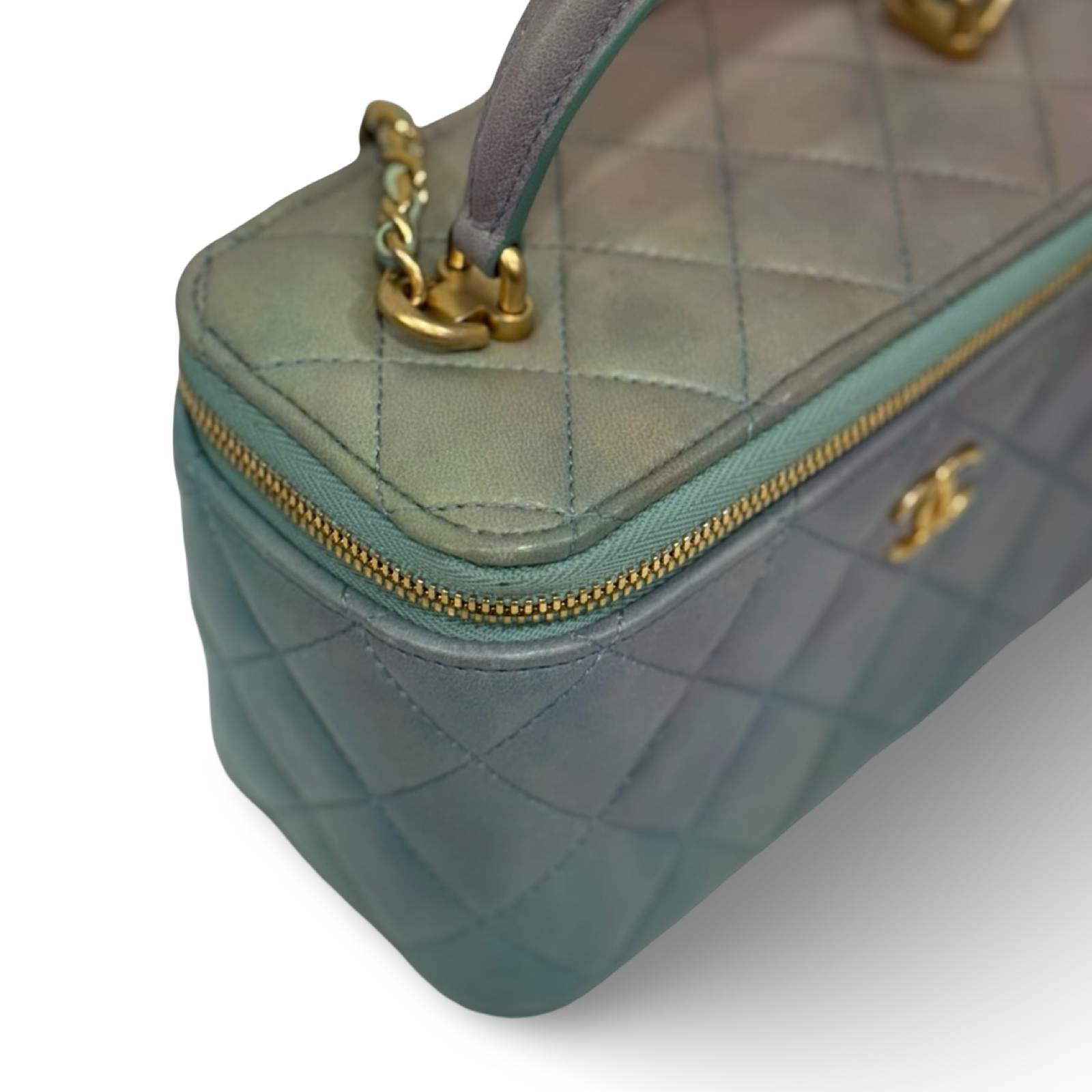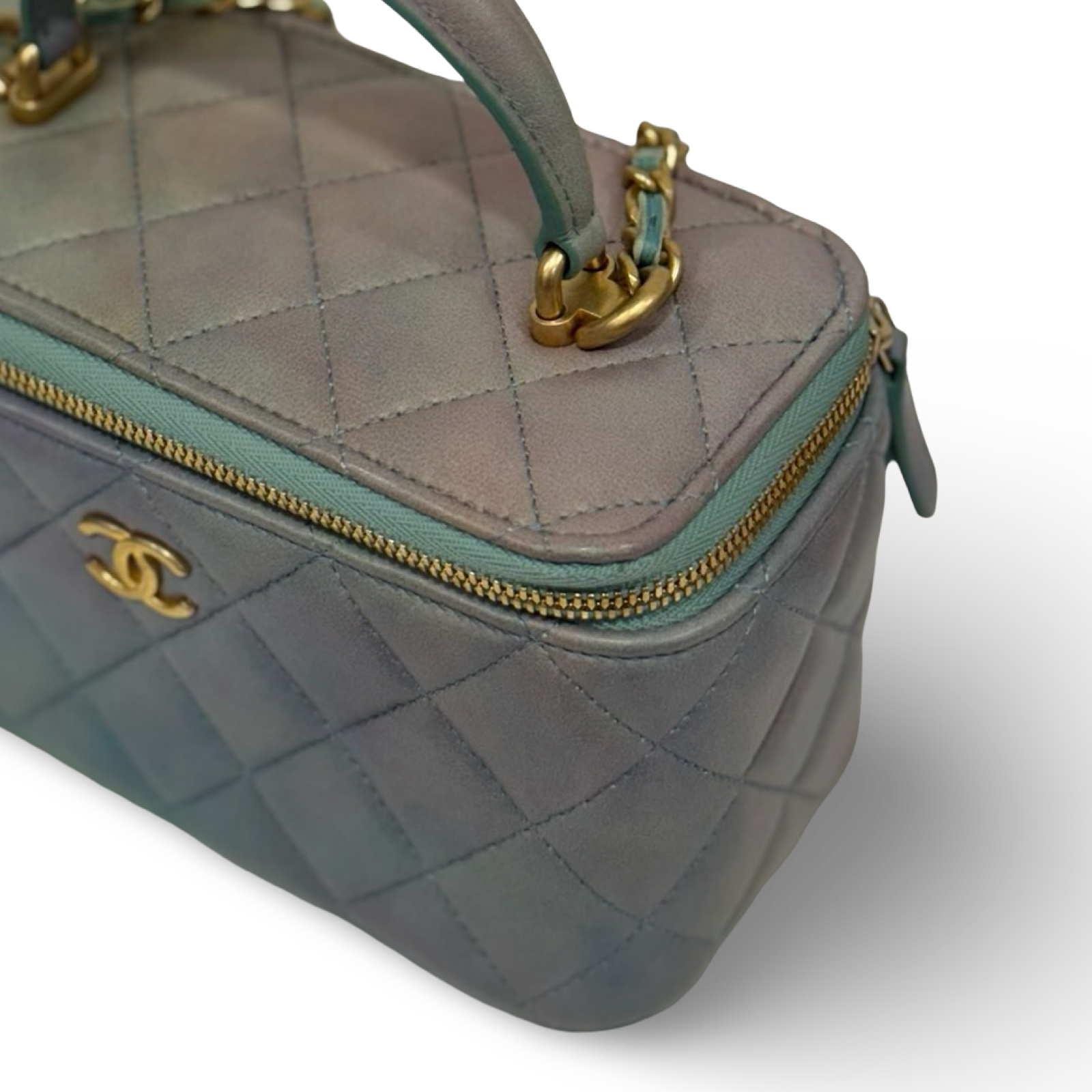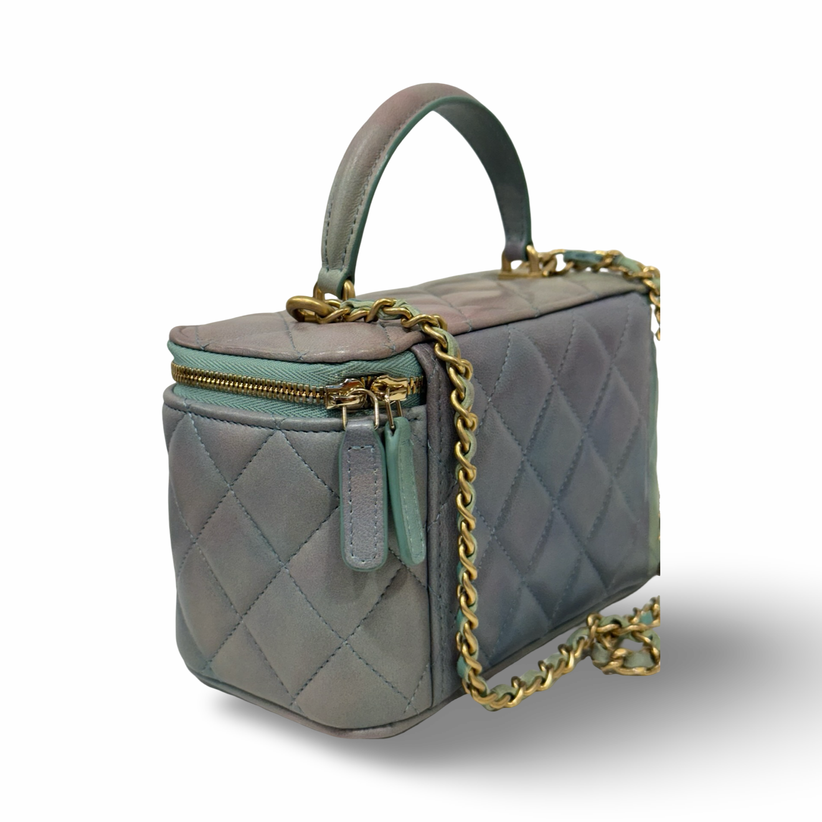 Chanel Quilted Lambskin Tophandle Small Vanity Box - GHW / Blue / Green