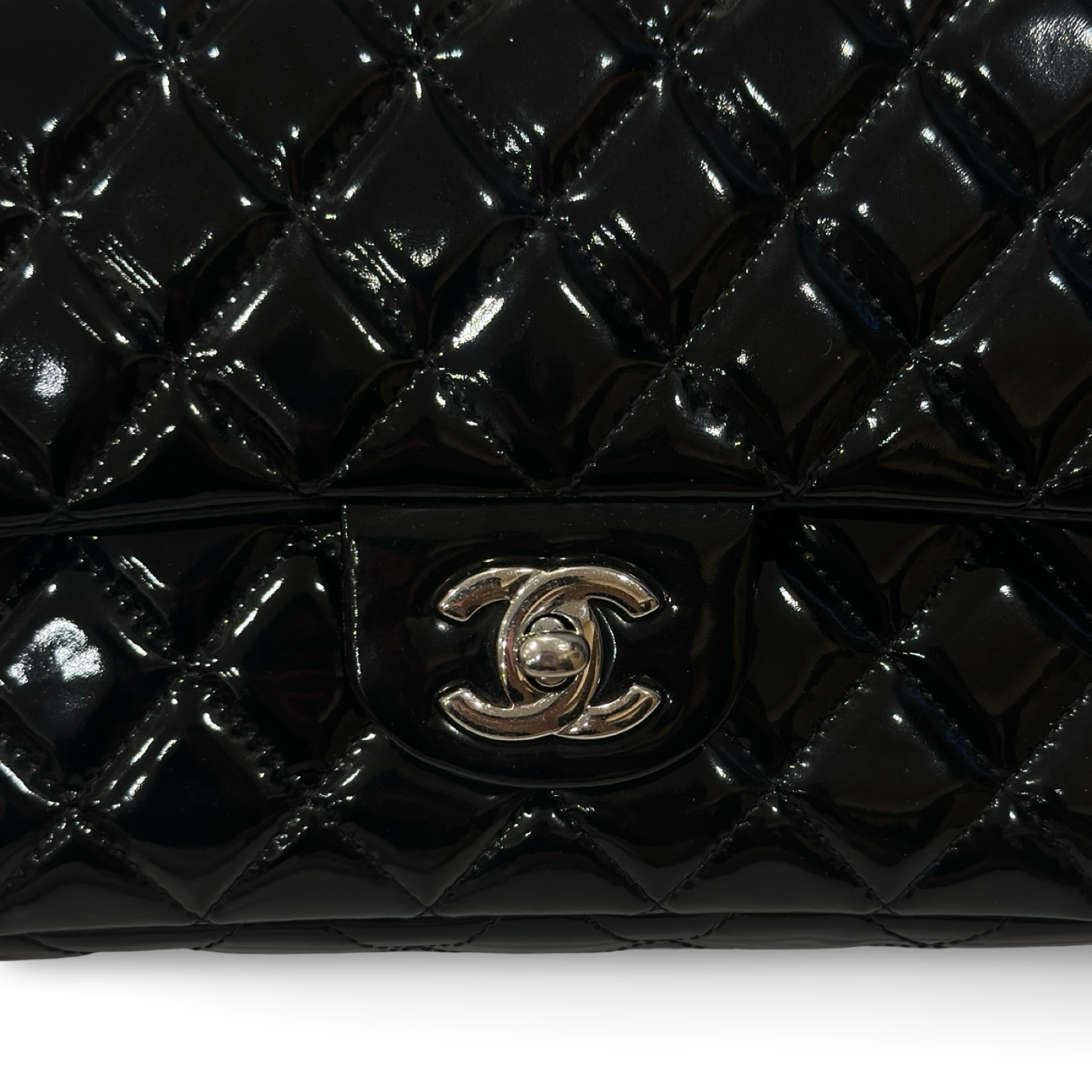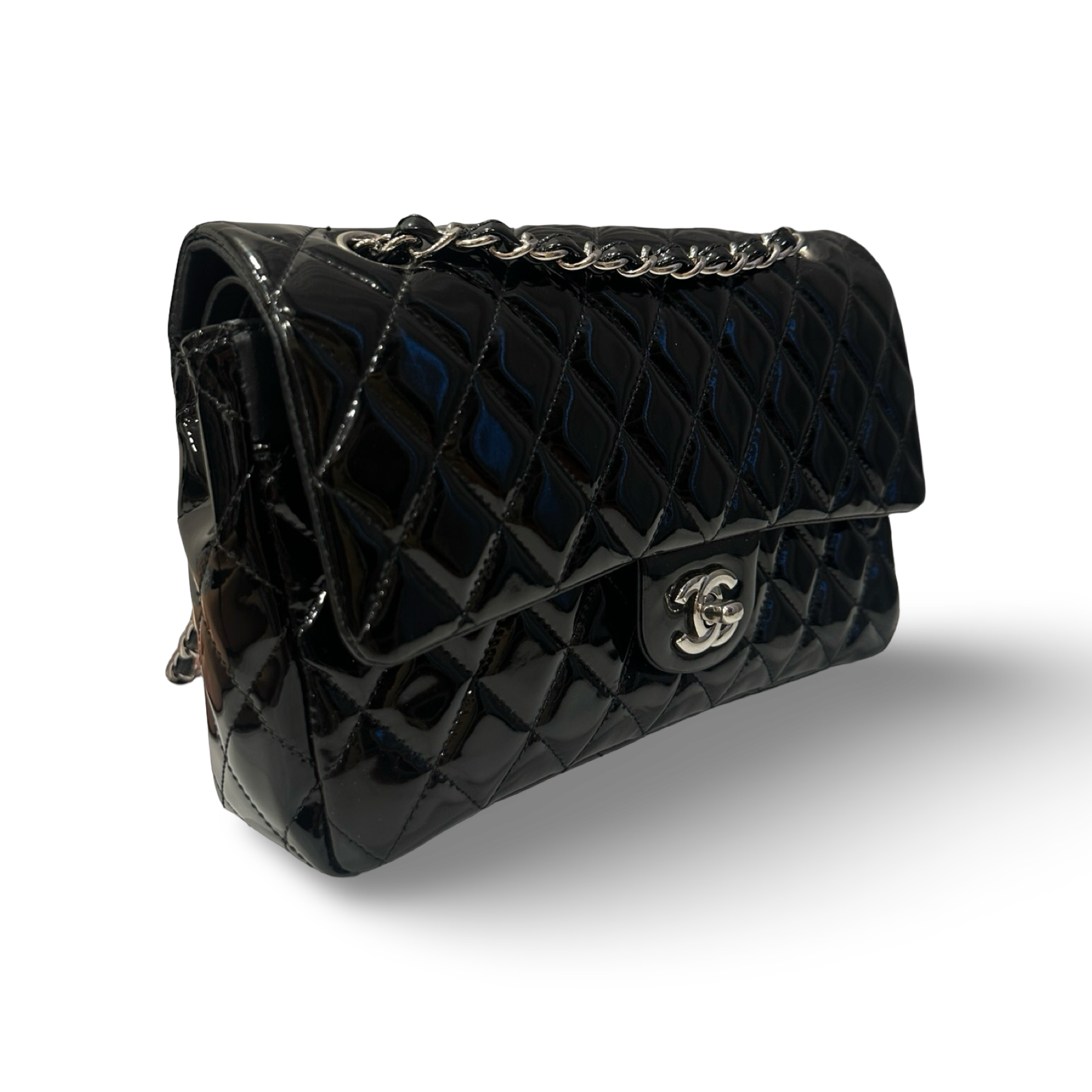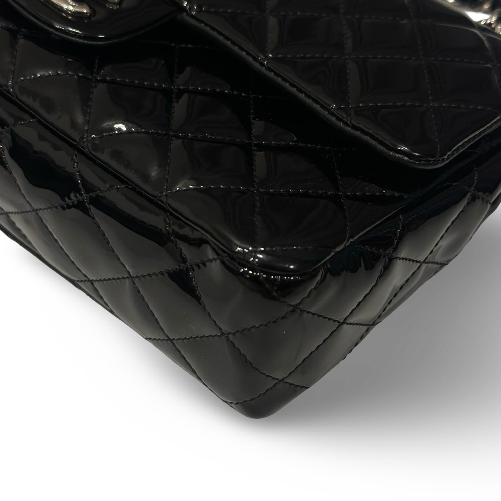 Chanel Quilted Patent Medium Double Flap - SHW / Black