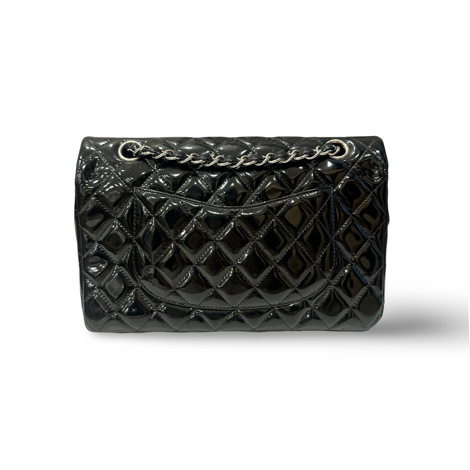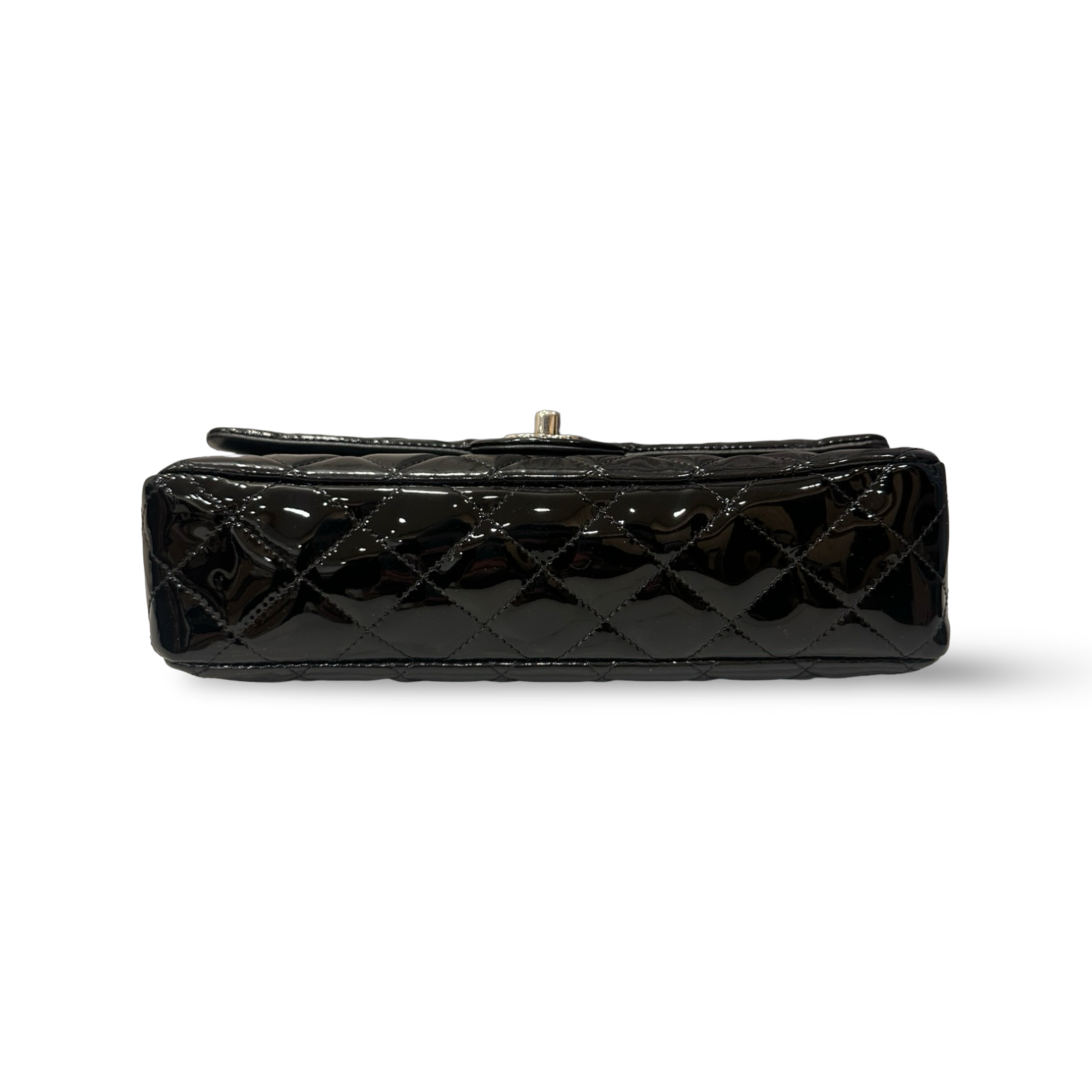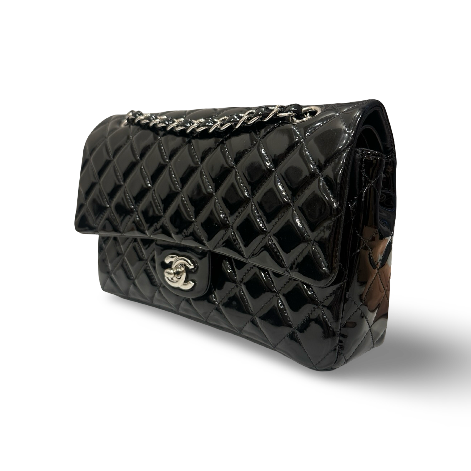 Chanel Quilted Patent Medium Double Flap - SHW / Black