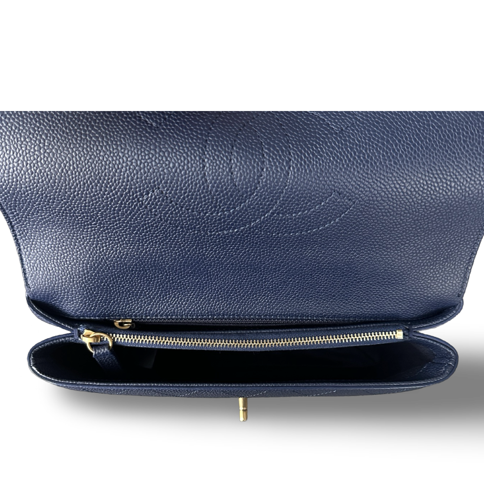 Chanel Stitched Caviar Medium Affinity Top Handle Bag - GHW / Navy