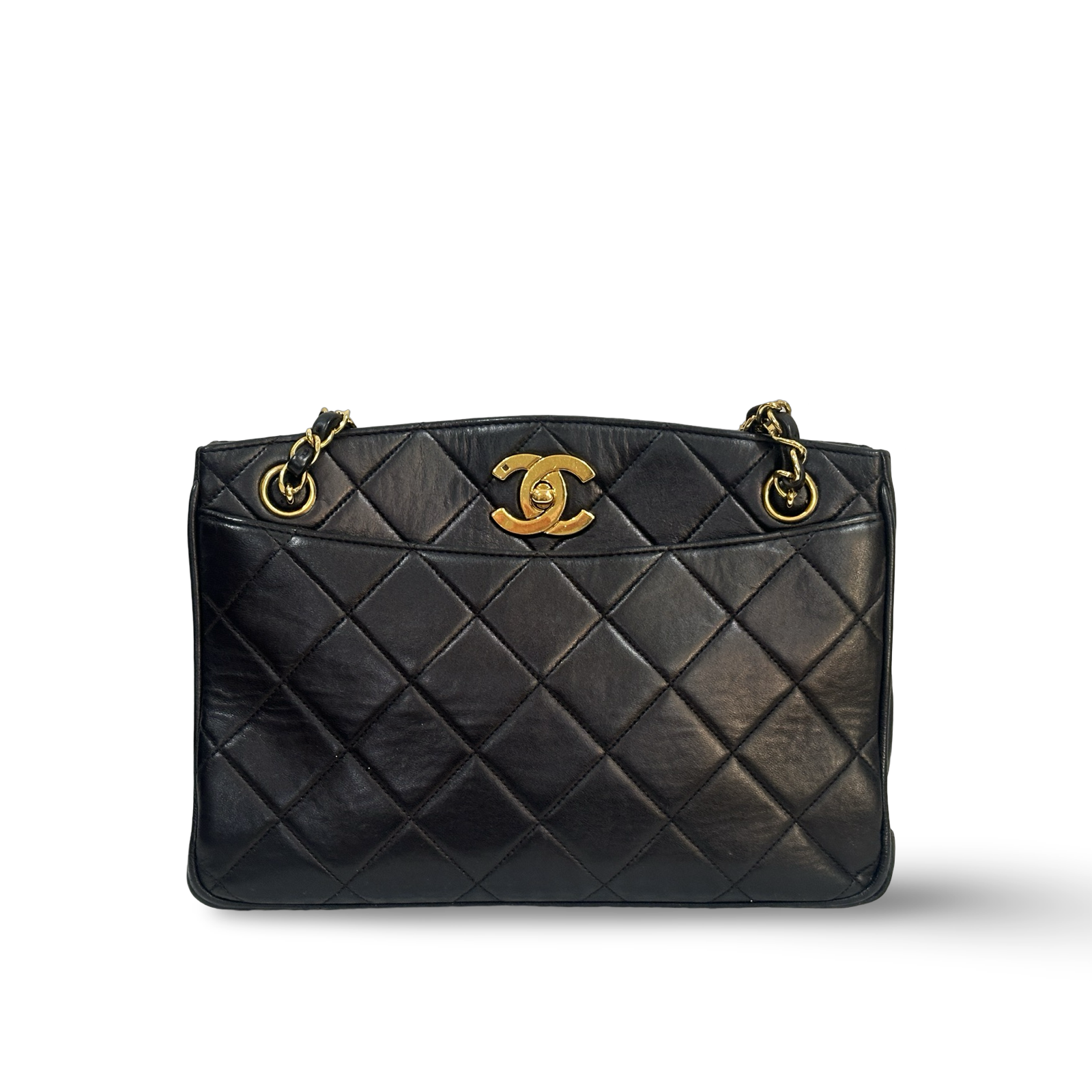 Chanel Vintage Big Logo Medium Tote Gold Black