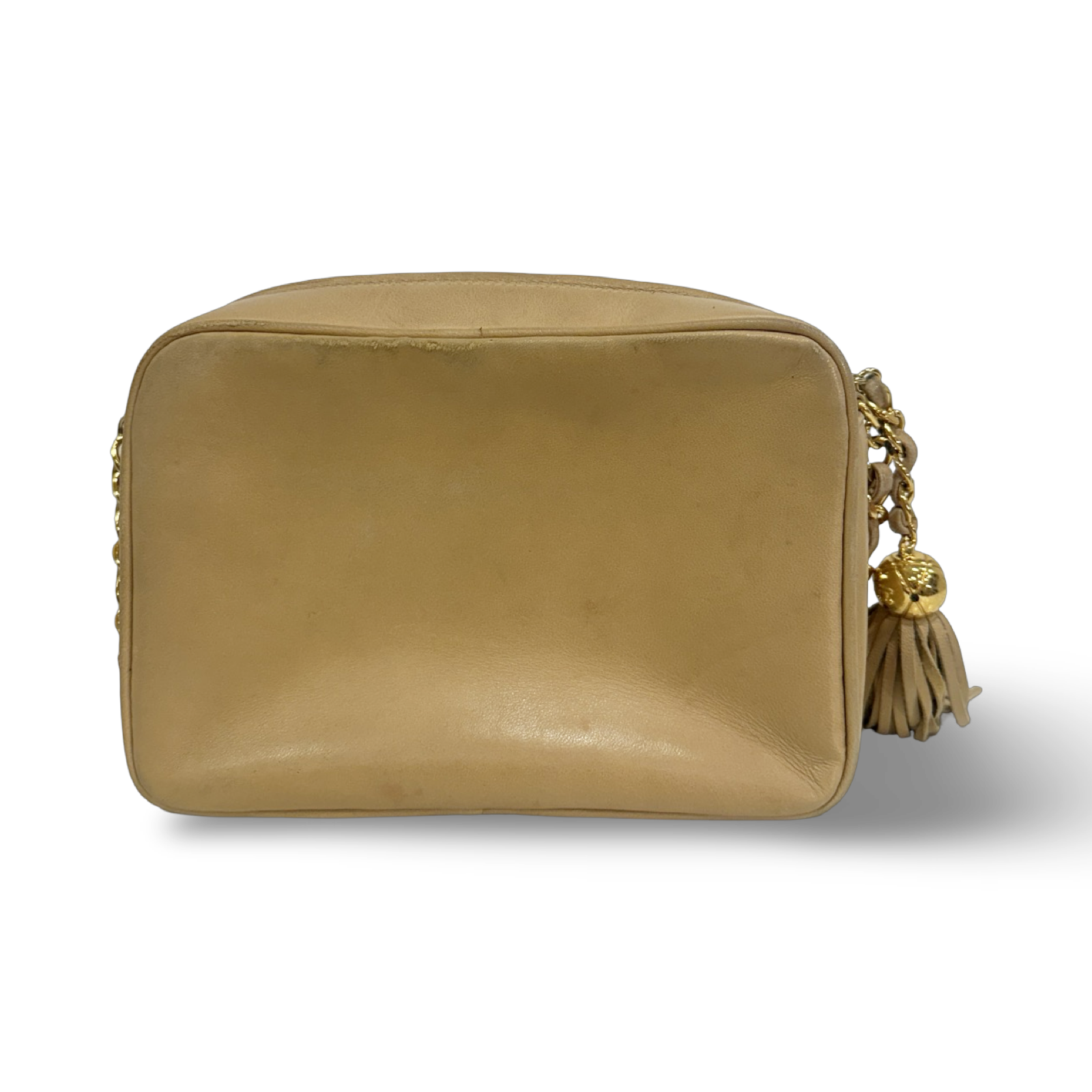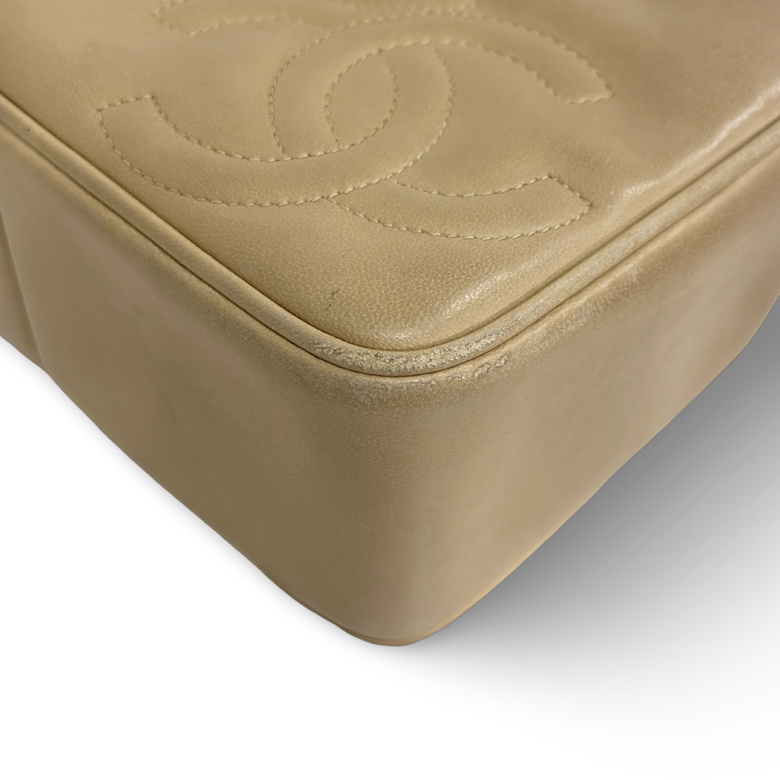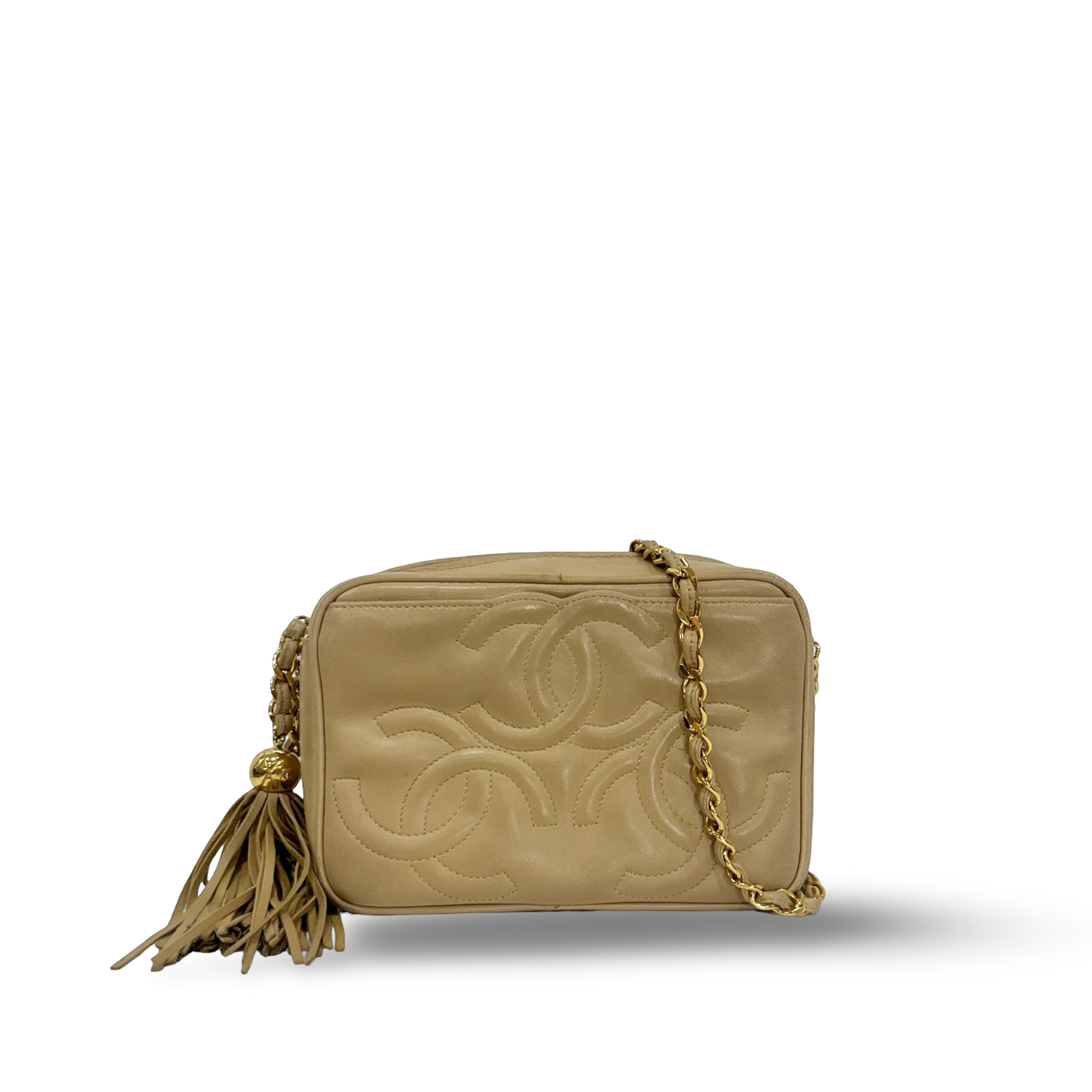 Chanel Vintage Quilted Lambskin Three Logos Camera Bag - GHW / Beige
