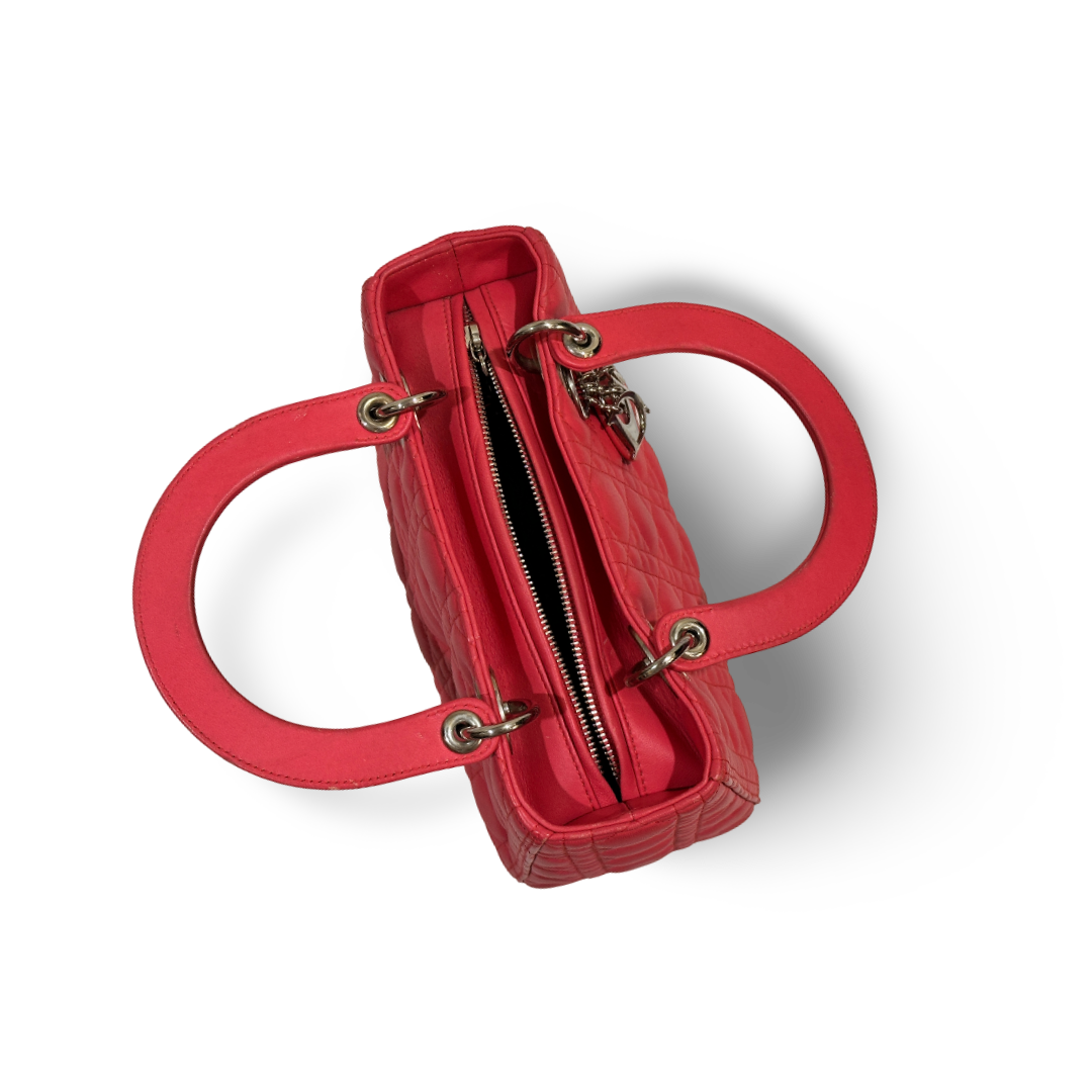 Dior Cannage Lambskin Medium Lady Bag Peach Pink