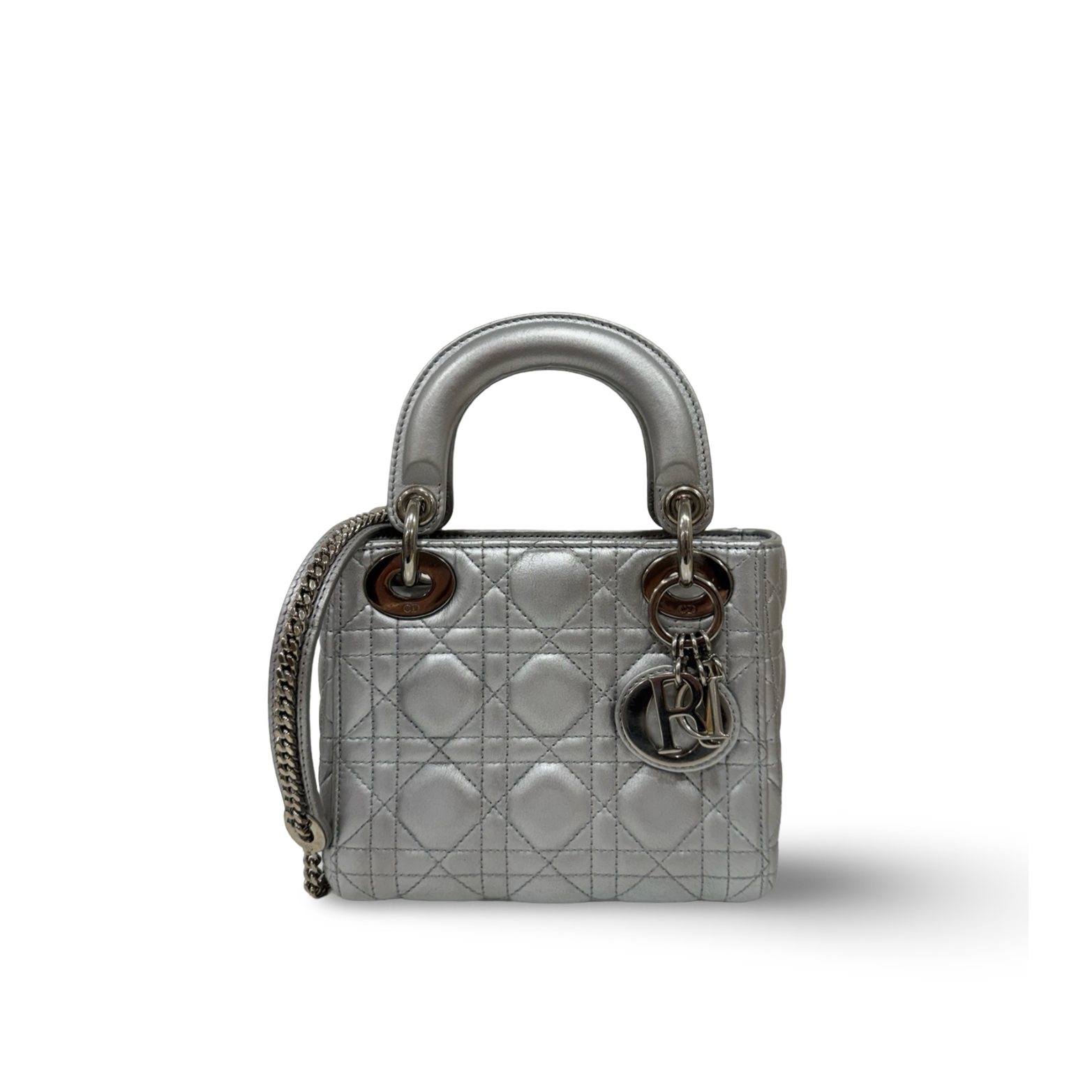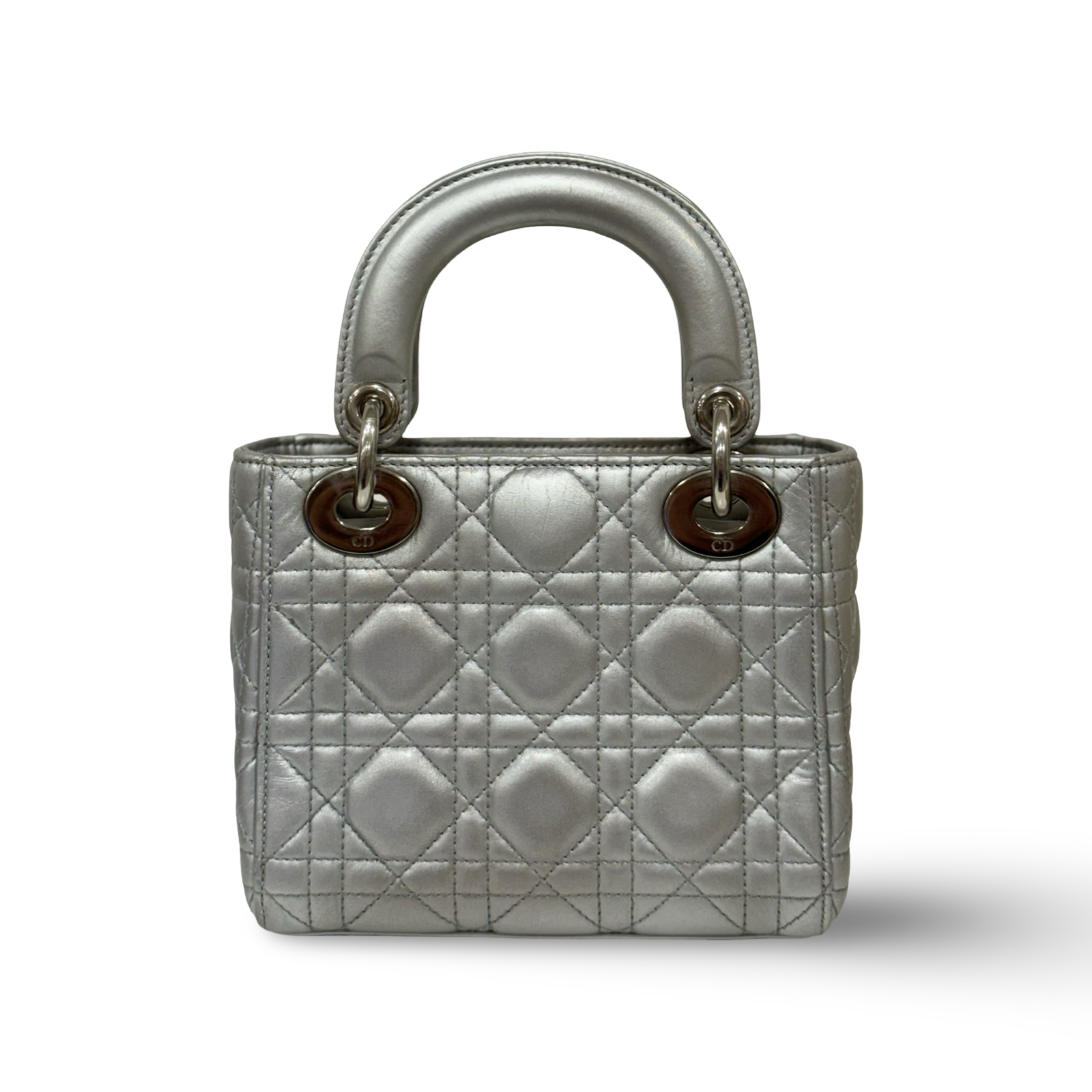 Dior Cannage Lambskin Mini Lady Bag - SHW / Sliver