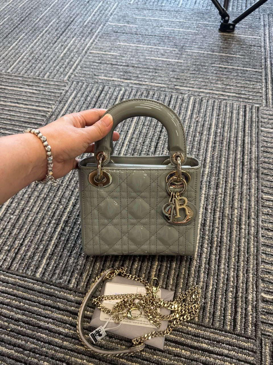 Dior Cannage Patent Mini Lady Bag - GHW / Gray