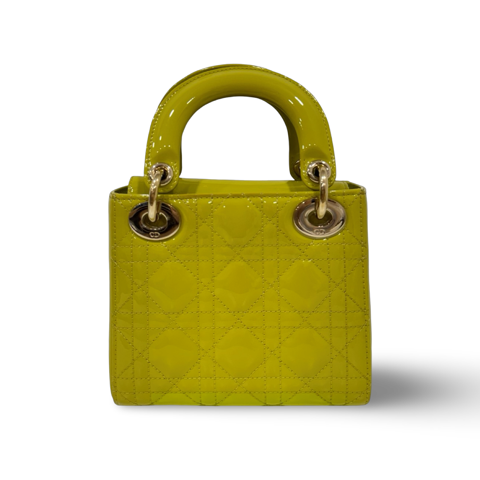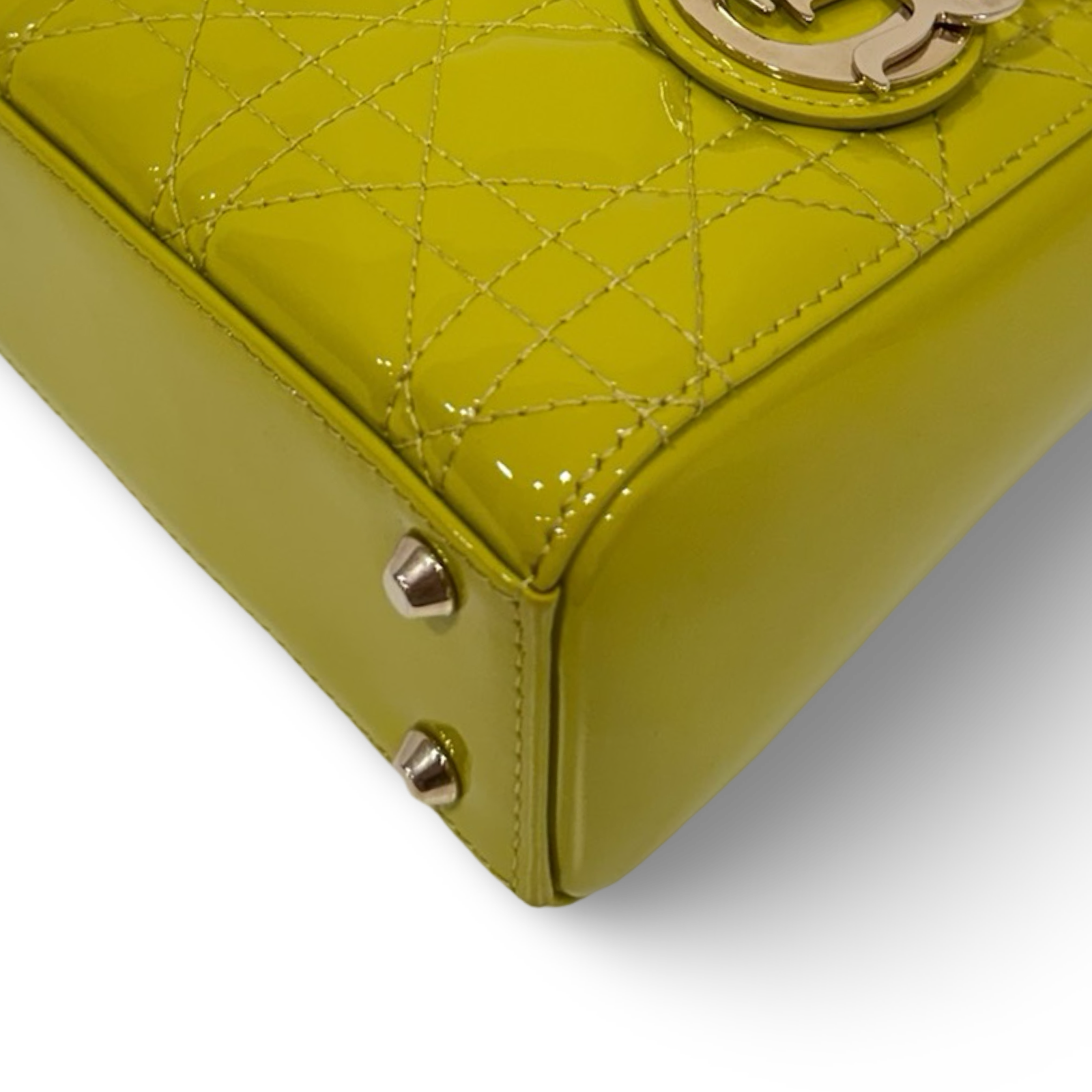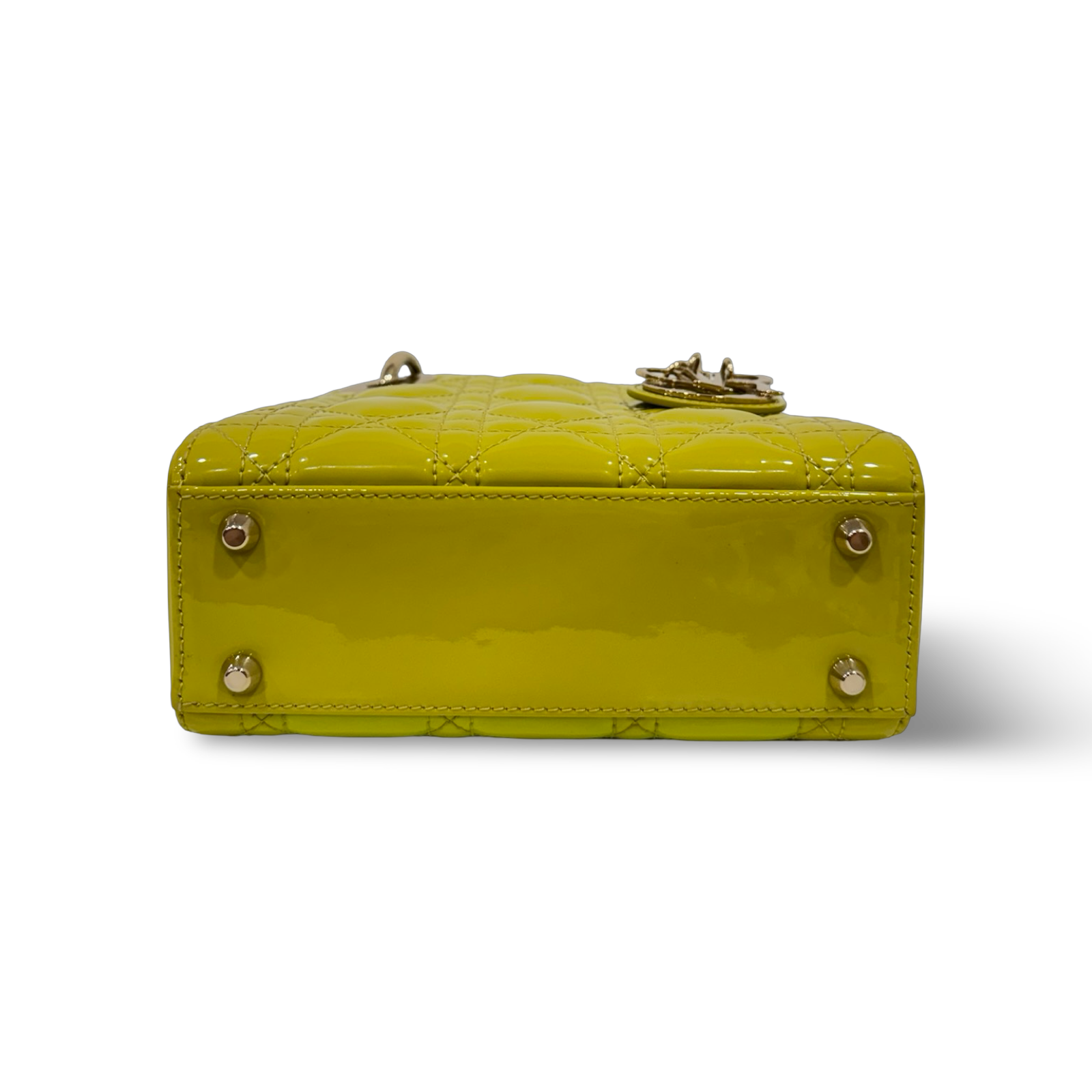 Dior Cannage Patent Mini Lady Bag - GHW / Lime Yellow