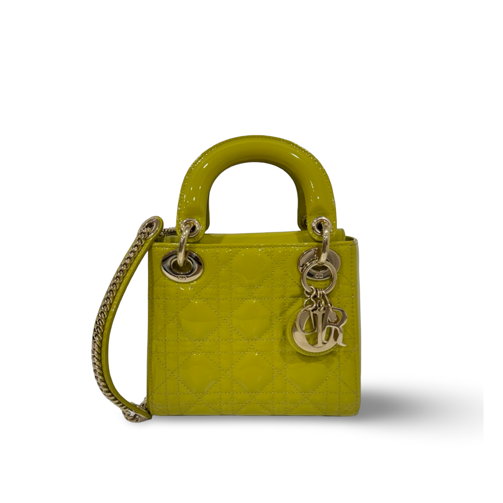 Dior Cannage Patent Mini Lady Bag - GHW / Lime Yellow
